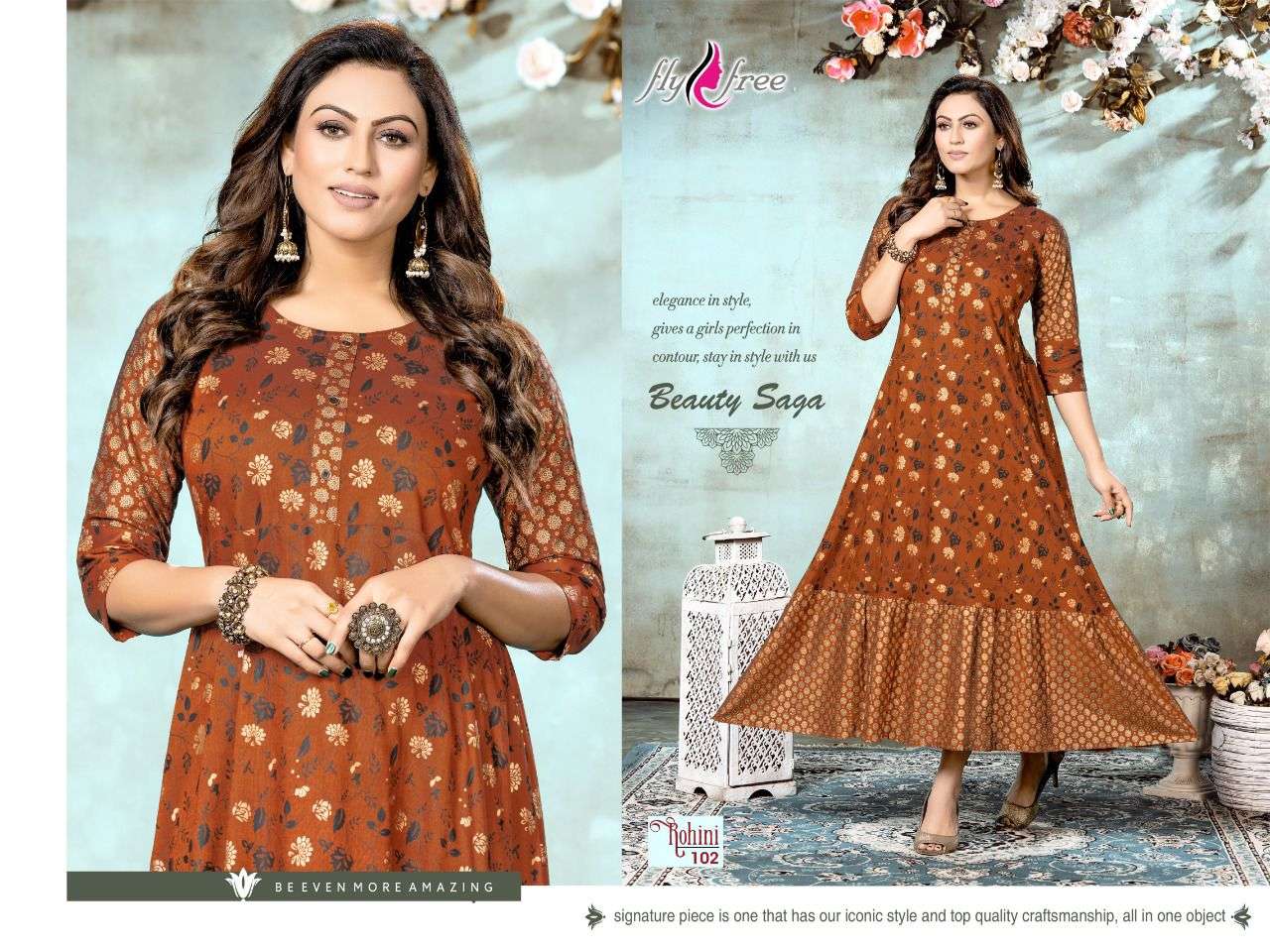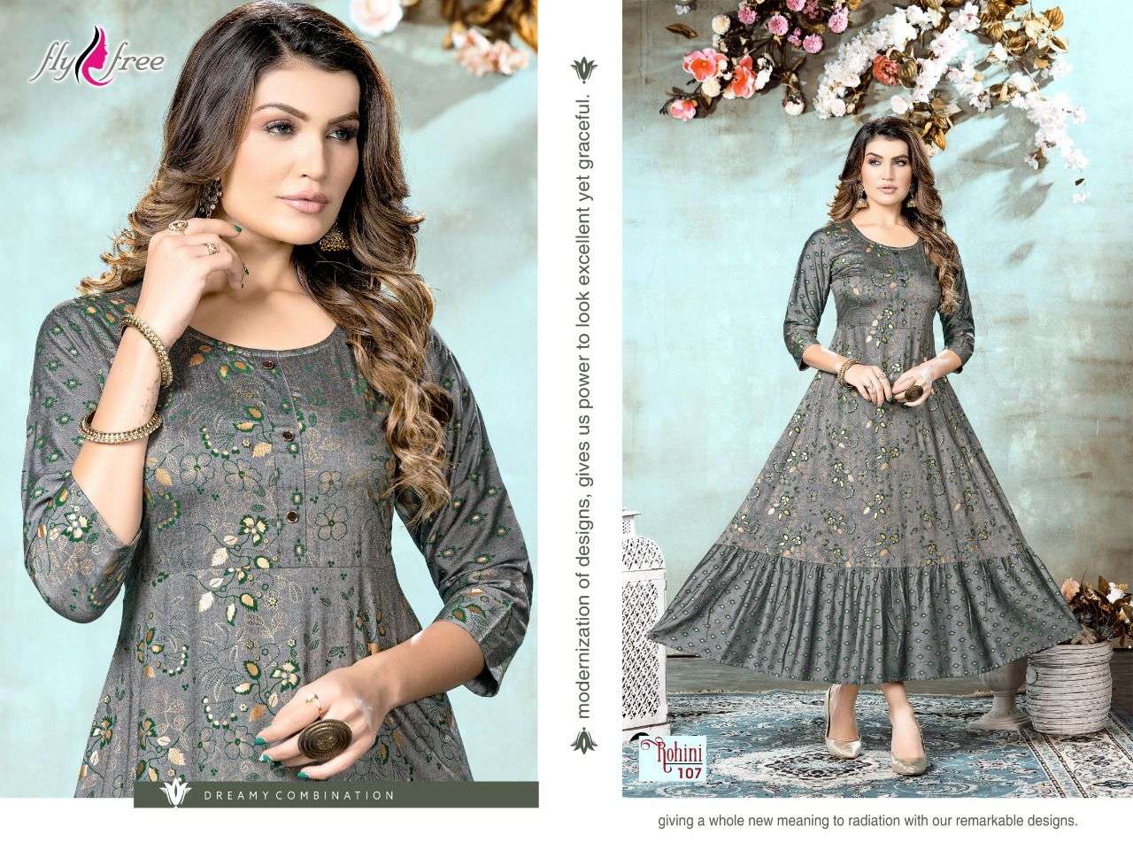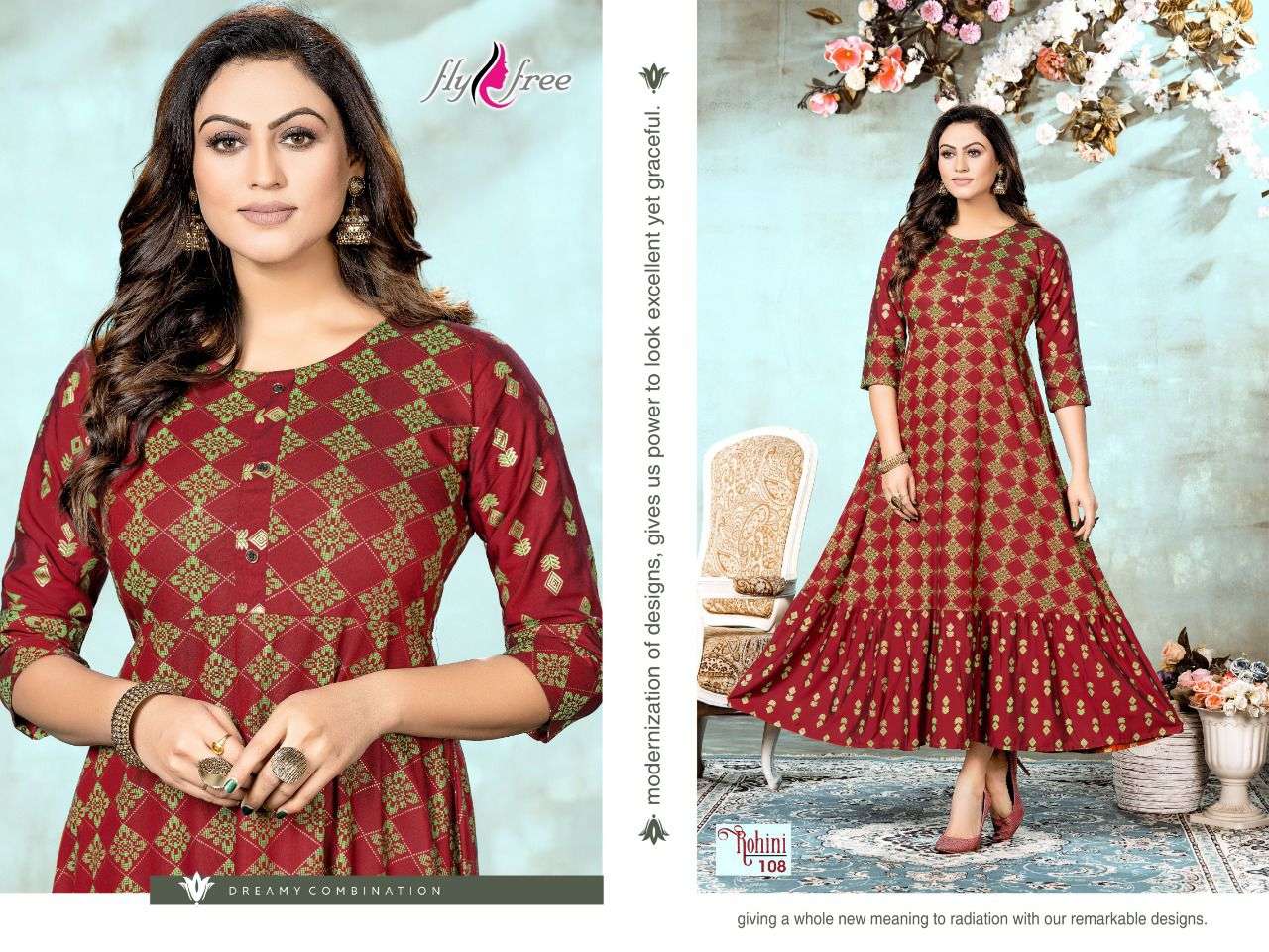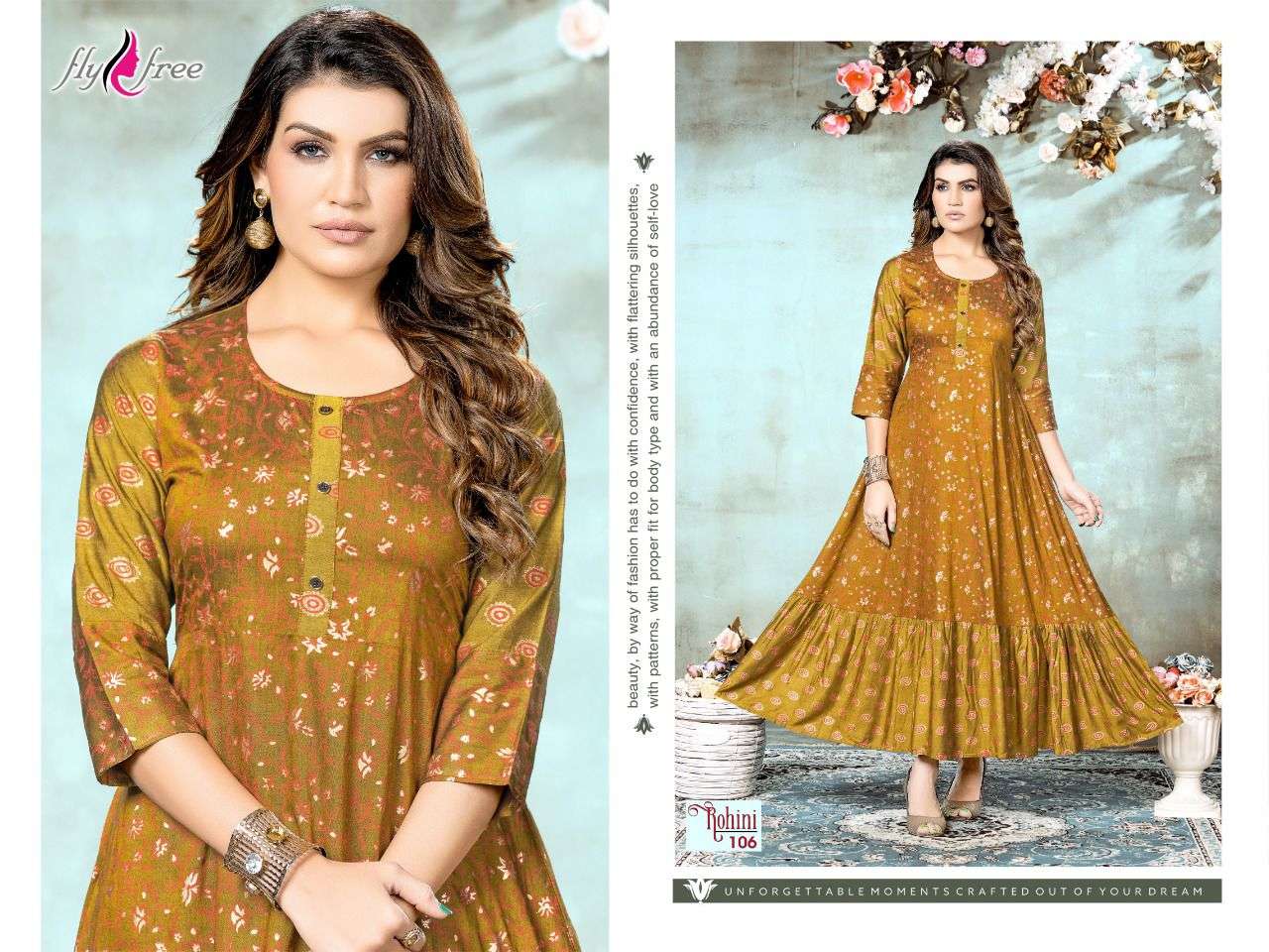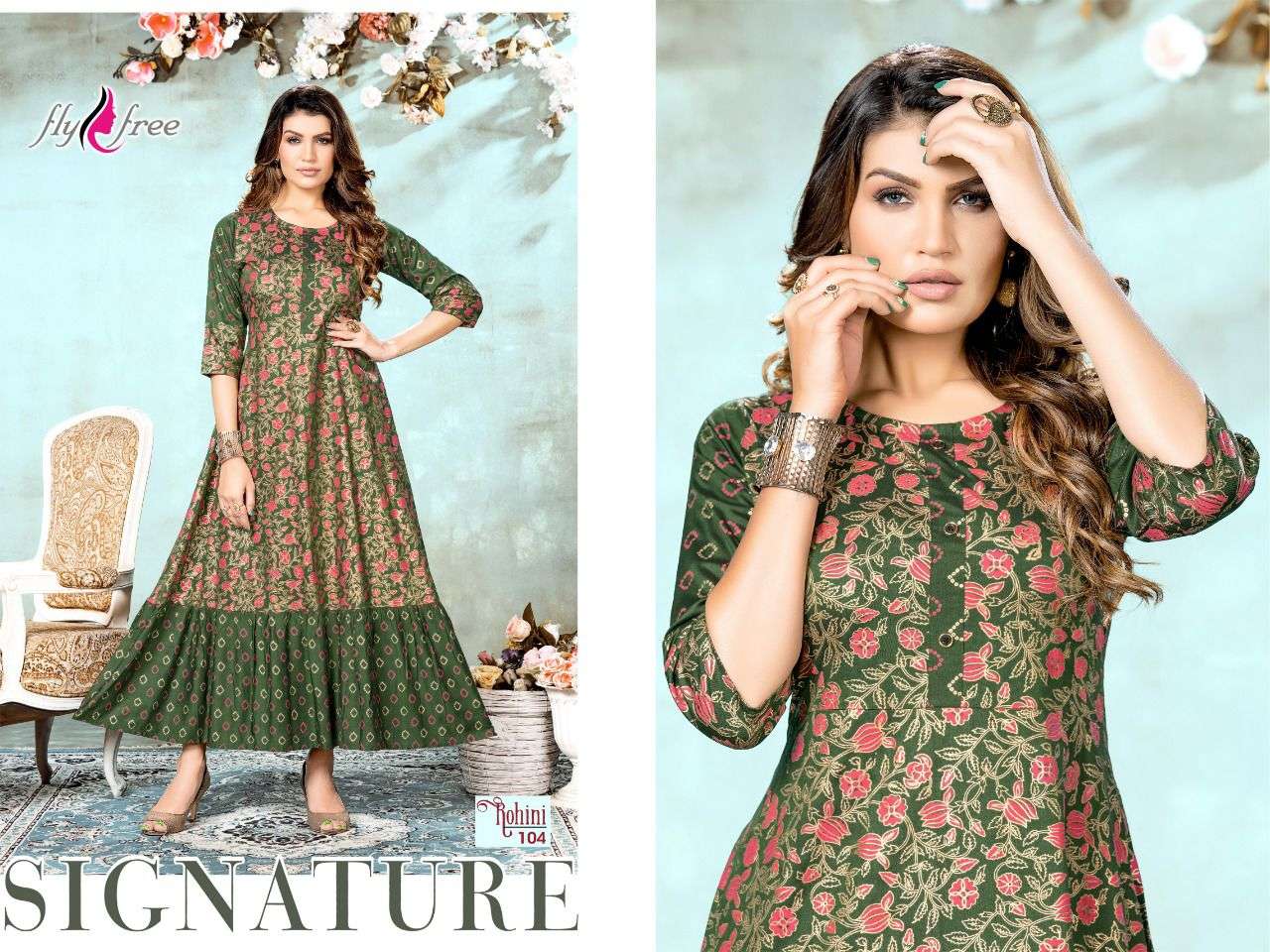 FLY FREE ROHINI VOL.1 HEAVY BLACK RAYON FRILLED TOP KURTI CATALOG WHOLESALE BEST RATE