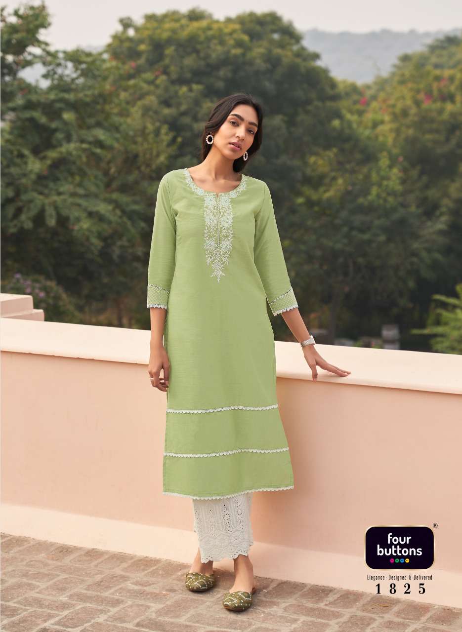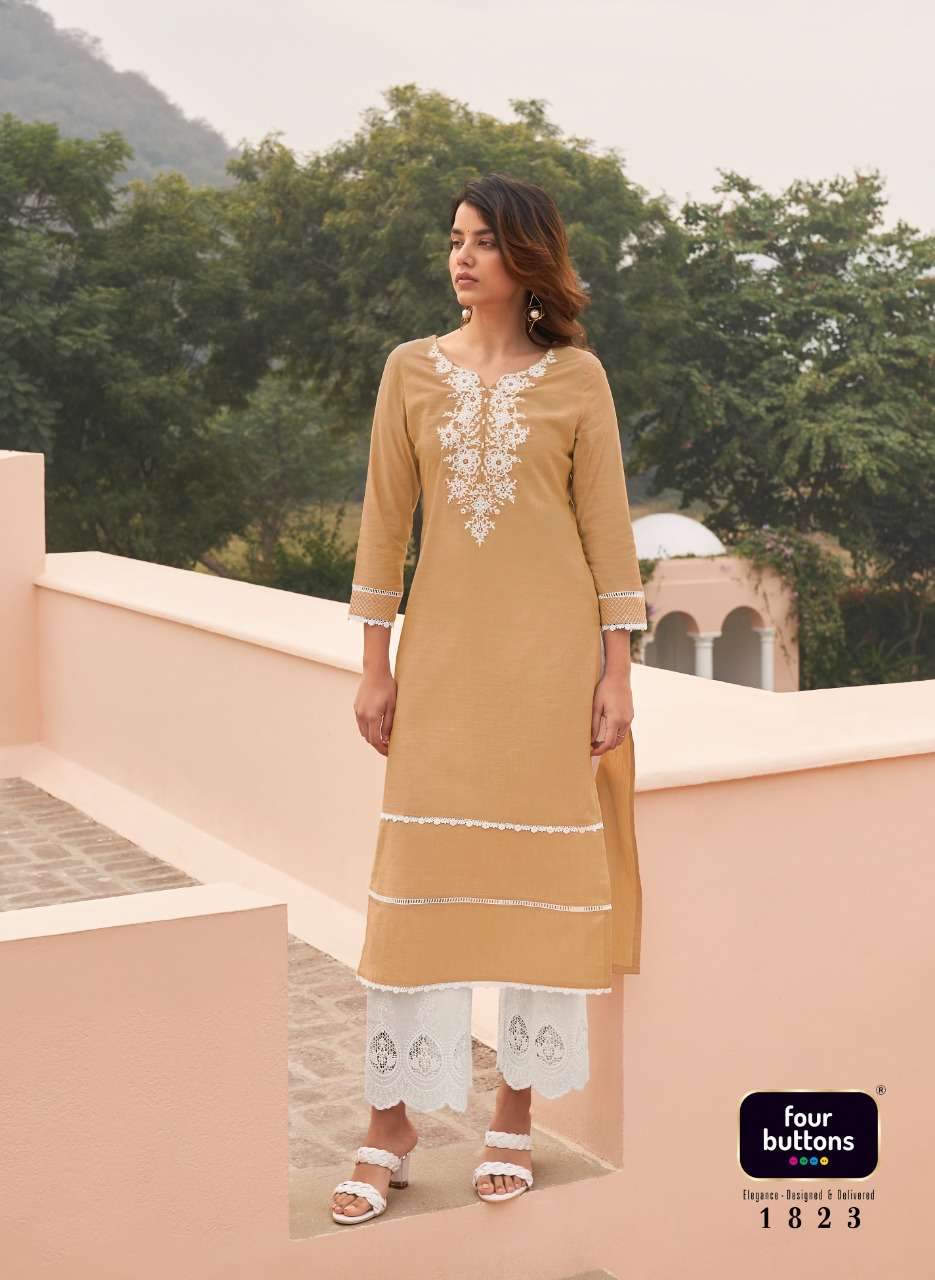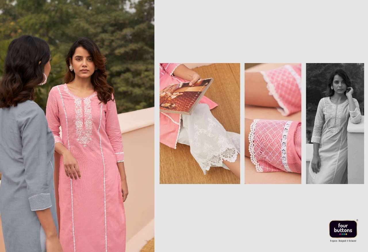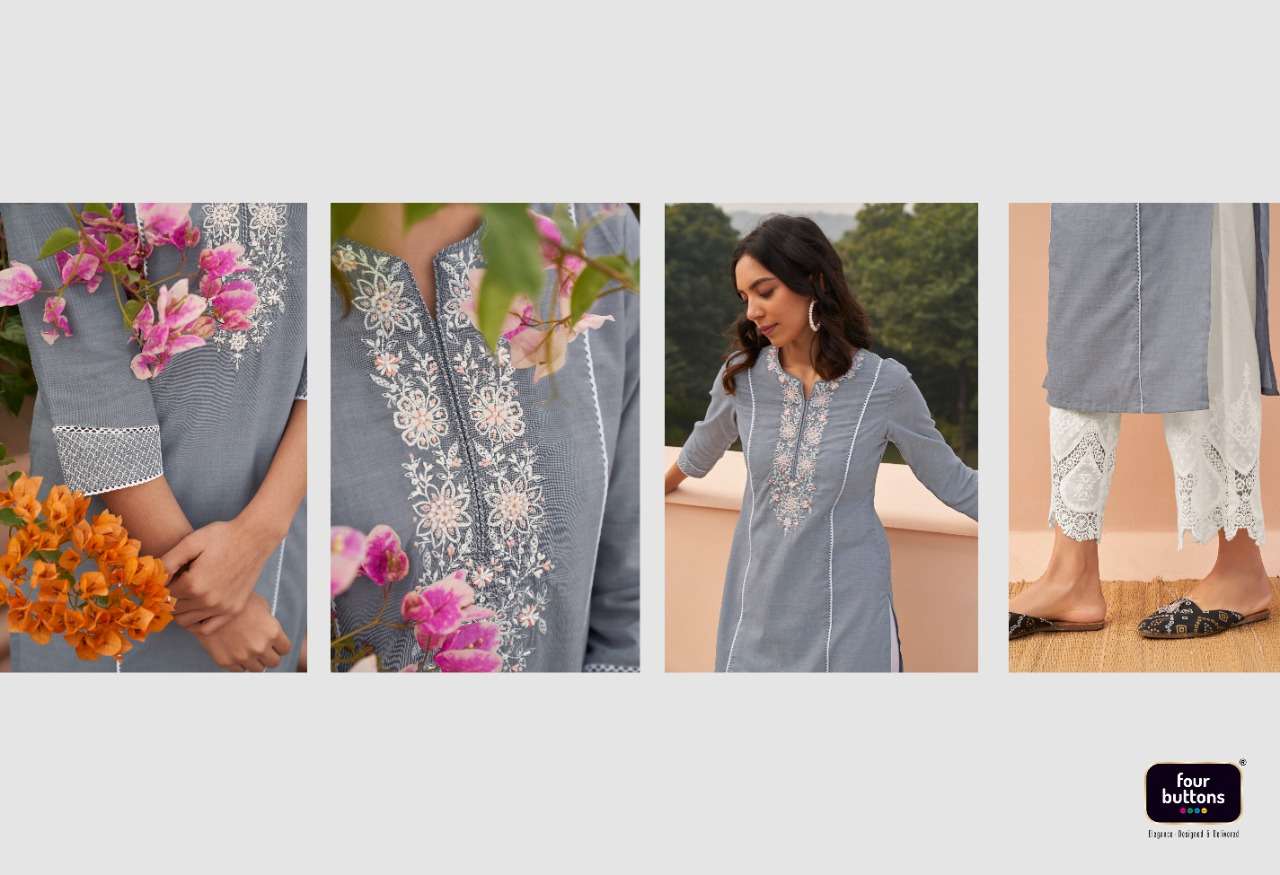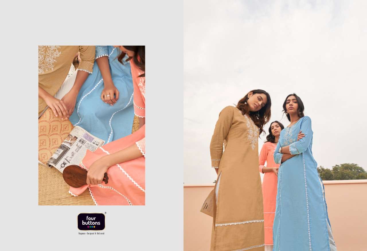 FOUR BUTTONS BANYAN TREE 2 PURE COTTON FANCY KURTI WITH BOTTOM