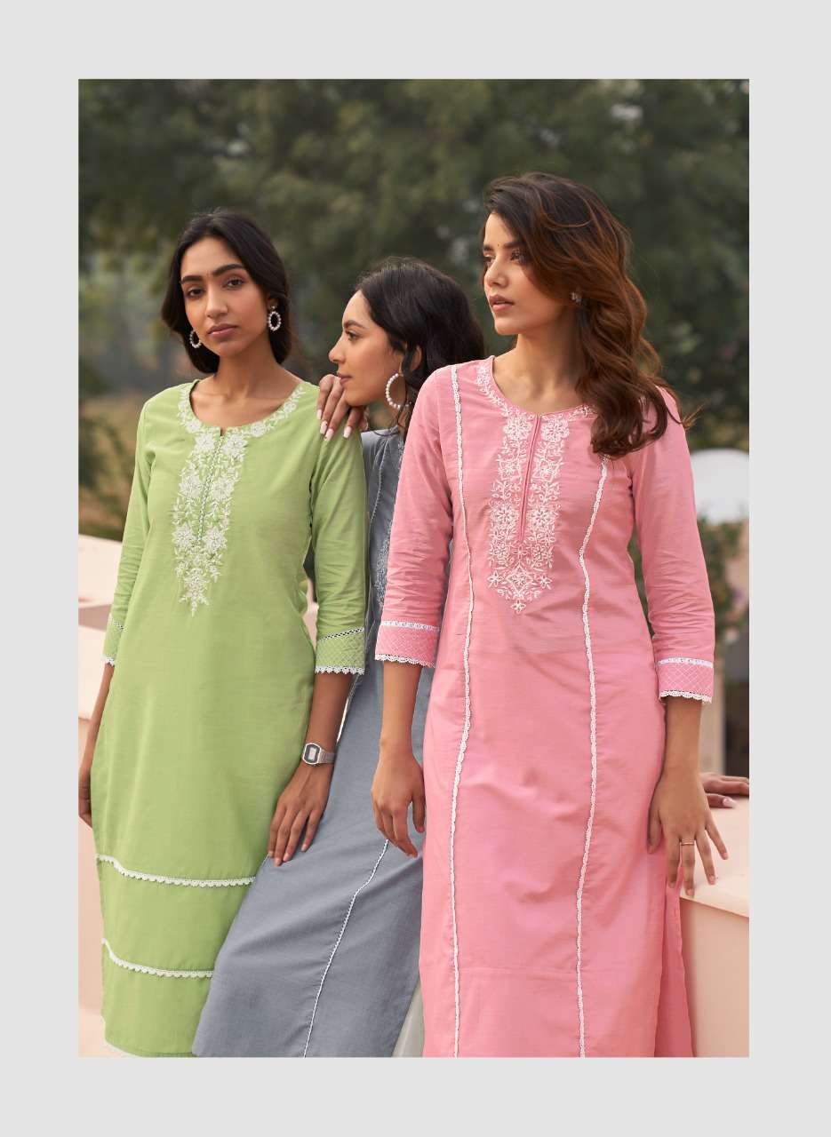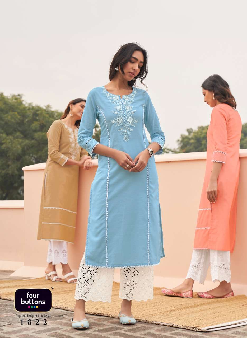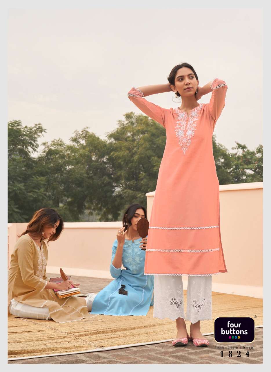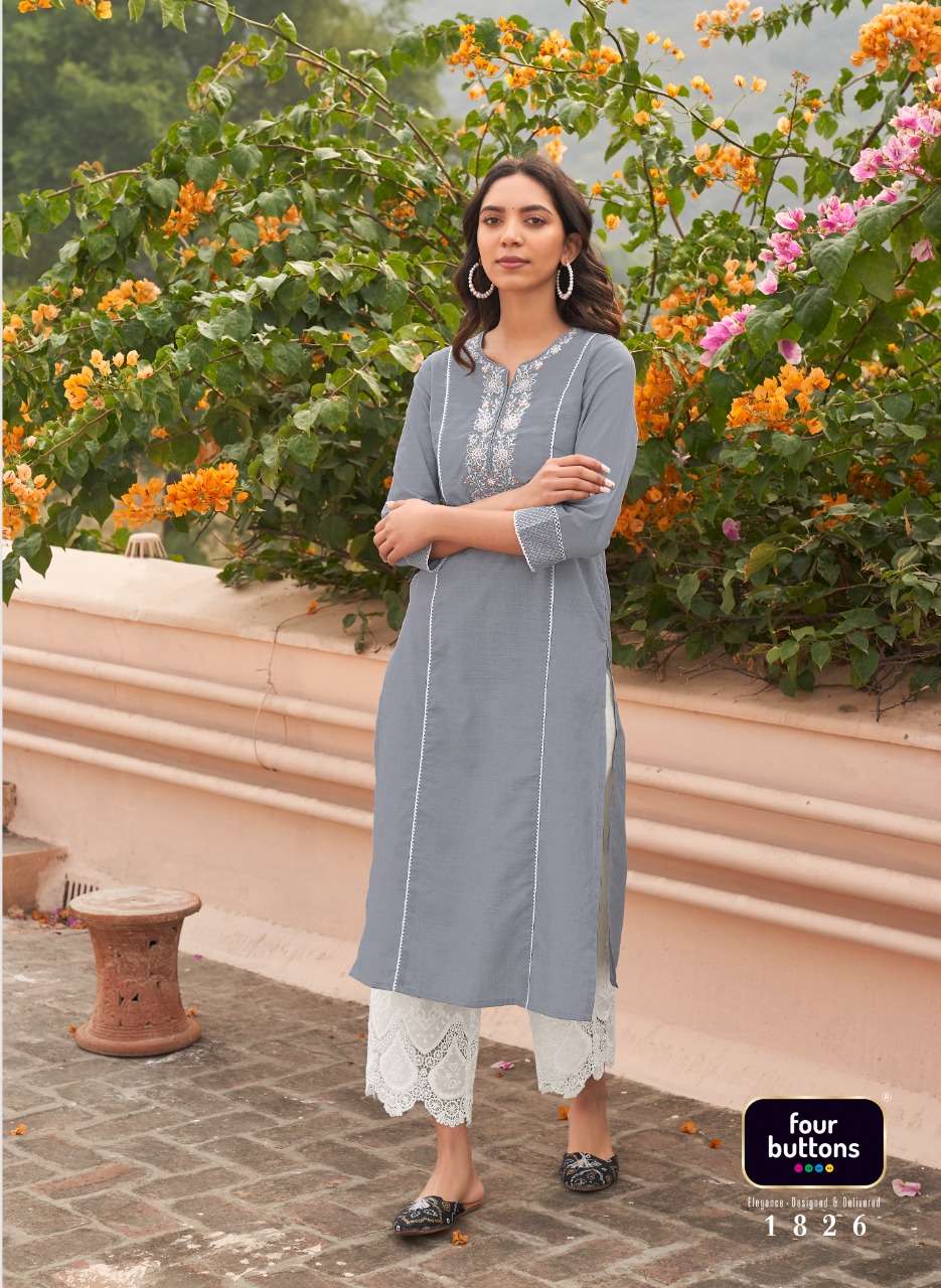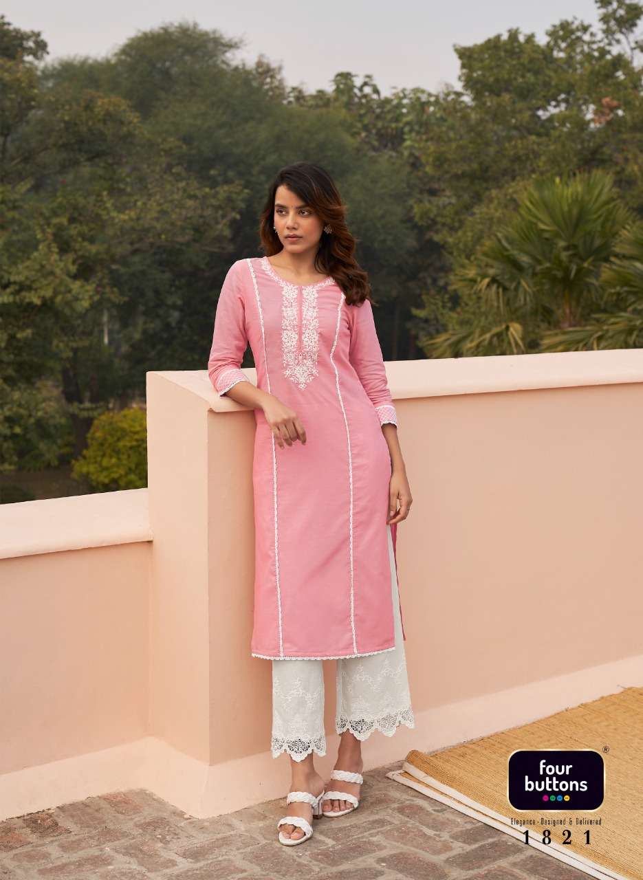 FOUR BUTTONS BANYAN TREE 2 PURE COTTON FANCY KURTI WITH BOTTOM