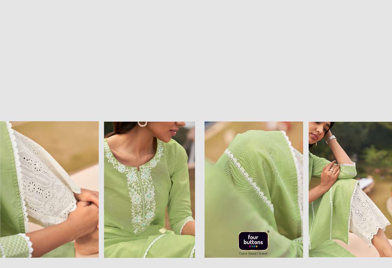 FOUR BUTTONS * proudly launches its NEW collection 2022 "BANYAN TREE 2" FABRIC BOTTOM - Pure cotton cambric attached with heavy chemical and borer lace. RATE - Rs 1099/- per pcs SIZES - S, M, L, XL, 3XL Total PCS- 6 LENGTH |