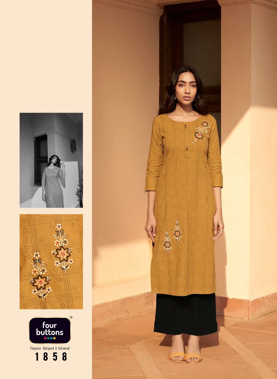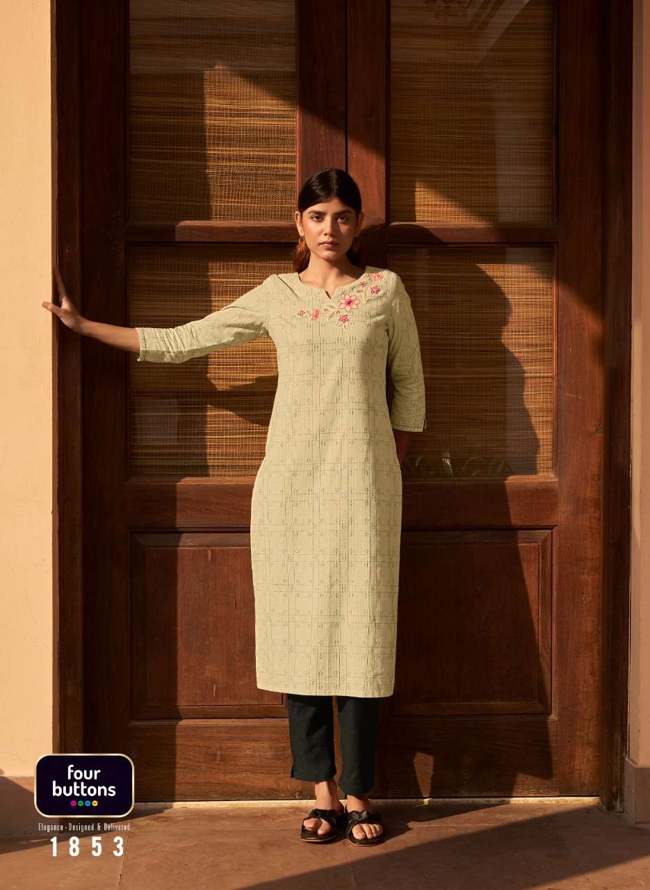 *FOUR BUTTONS * proudly launches its NEW collection 2022 "BASIL 4" FABRIC - PURE COTTON STITCH DOBBY WITH HEAVY PLACEMENT EMBROIDERIES RATE - Rs 599/- SIZES - M, L, XL, XXL LENGTH - 46" |