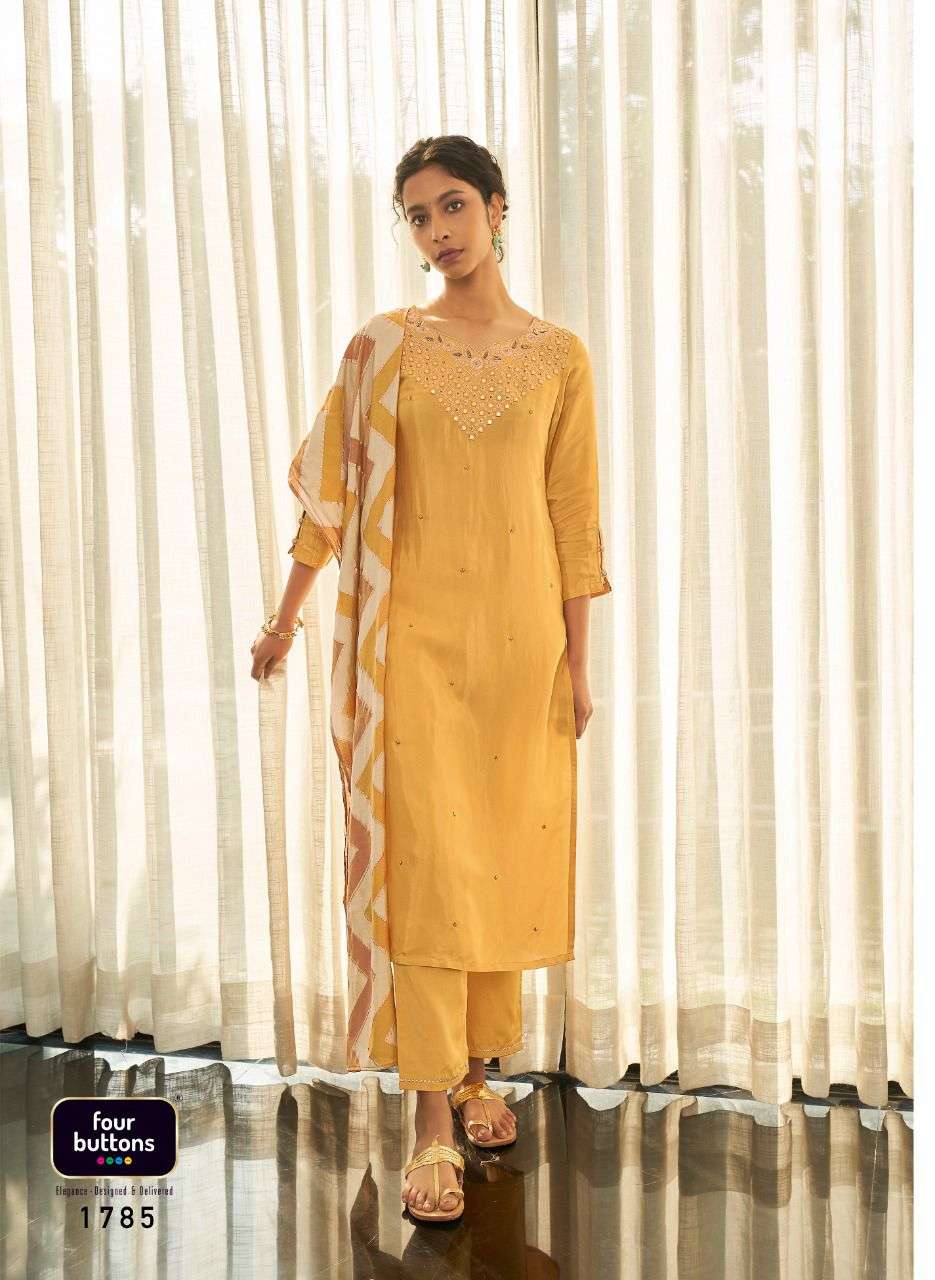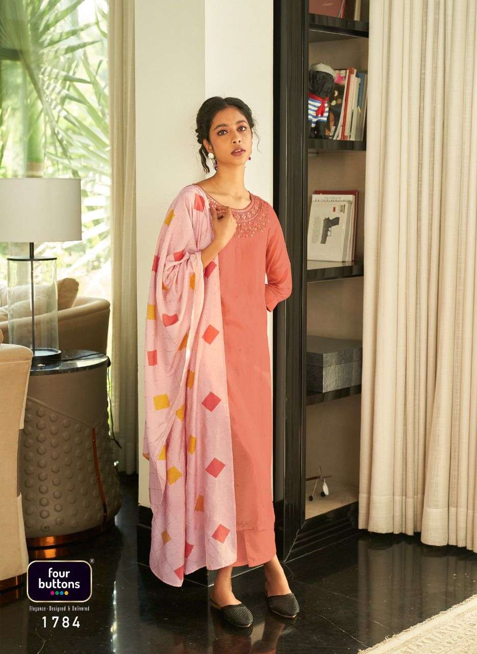 FOUR BUTTONS proudly launches its NEW collection 2022 "IBADAT" FABRIC KURTI - HEAVY EMBROIDERY AND HANDWORK ON PURE VISCOSE SILK BOTTOM - PURE VISCOSE SILK DUPATTA- SPRAY HAND PRINT ON PURE VISCOSE MUSLIN RATE - Rs 1399/- per pcs SIZES - S, M, L, XL, XXL, 3XL |
