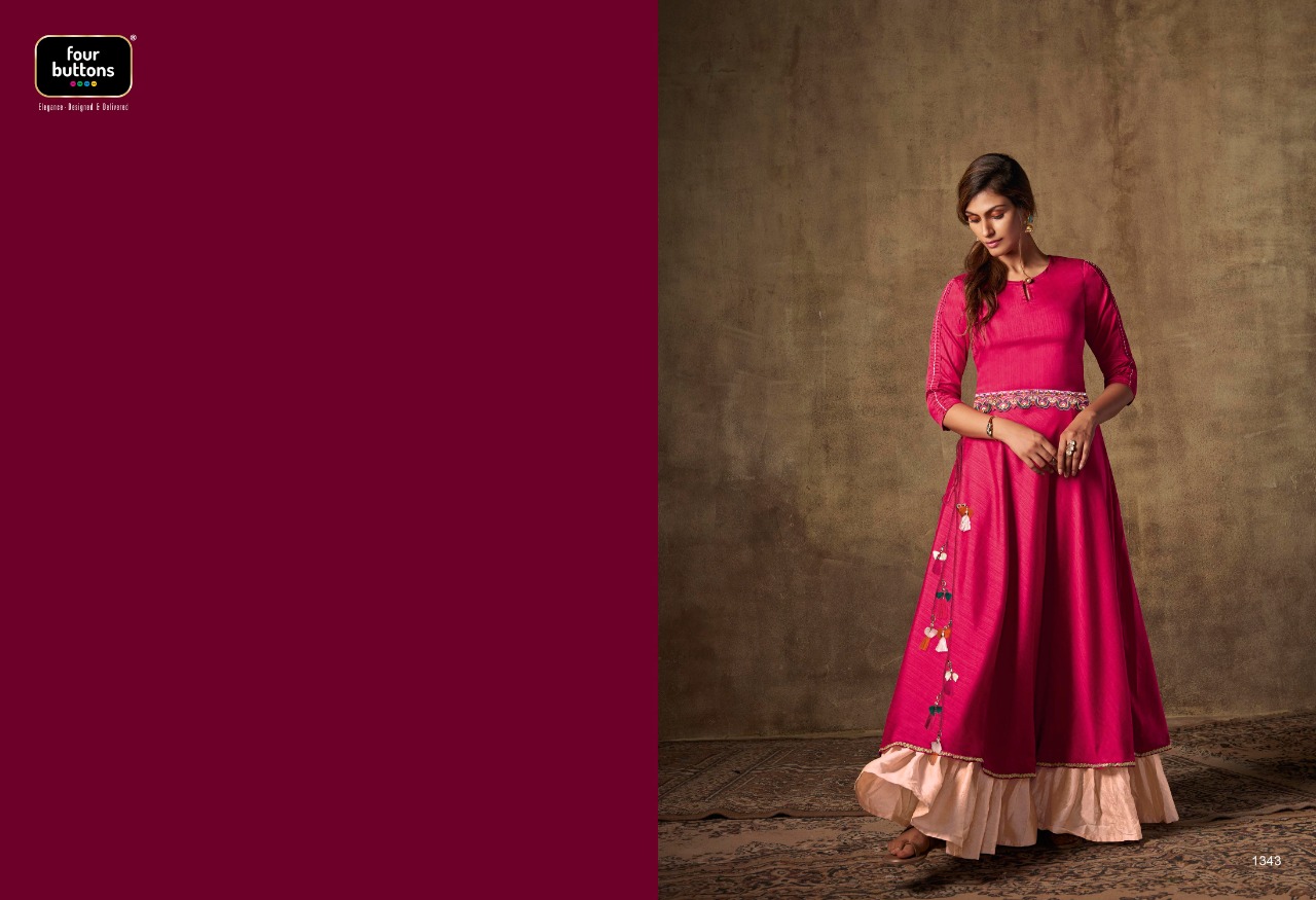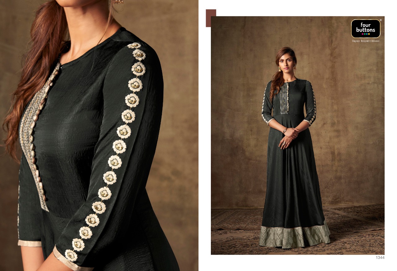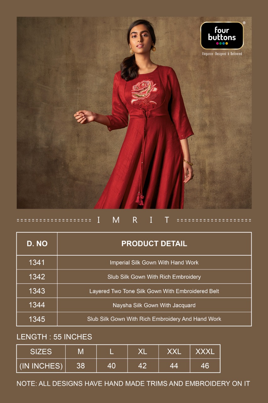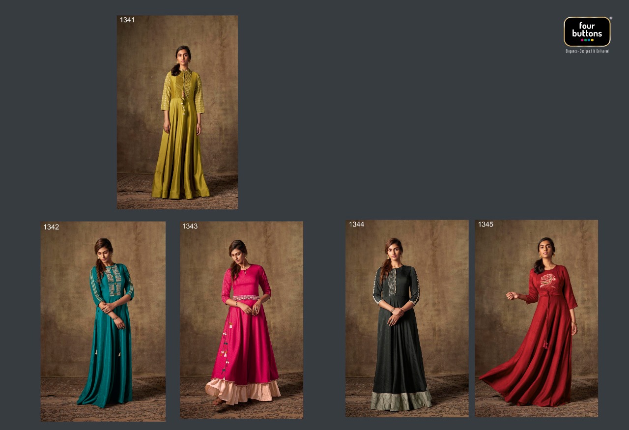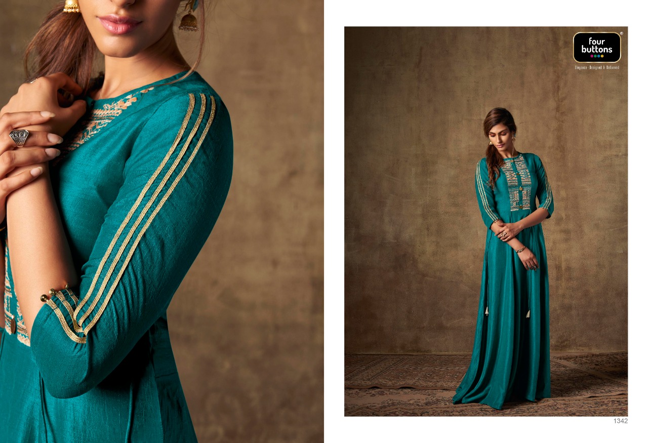 Four Buttons Launch Imrit Silk Long Gown Festival Collection Kurti Wholesaler