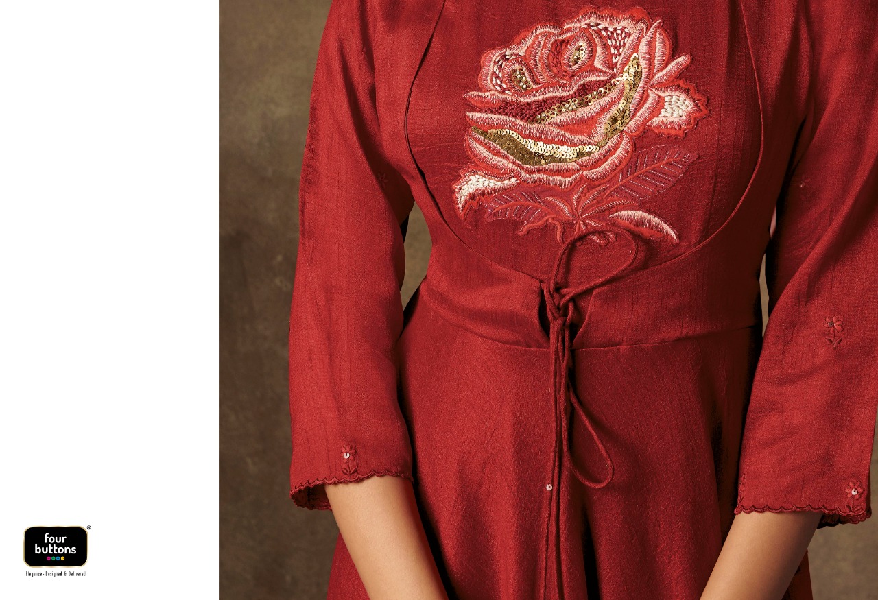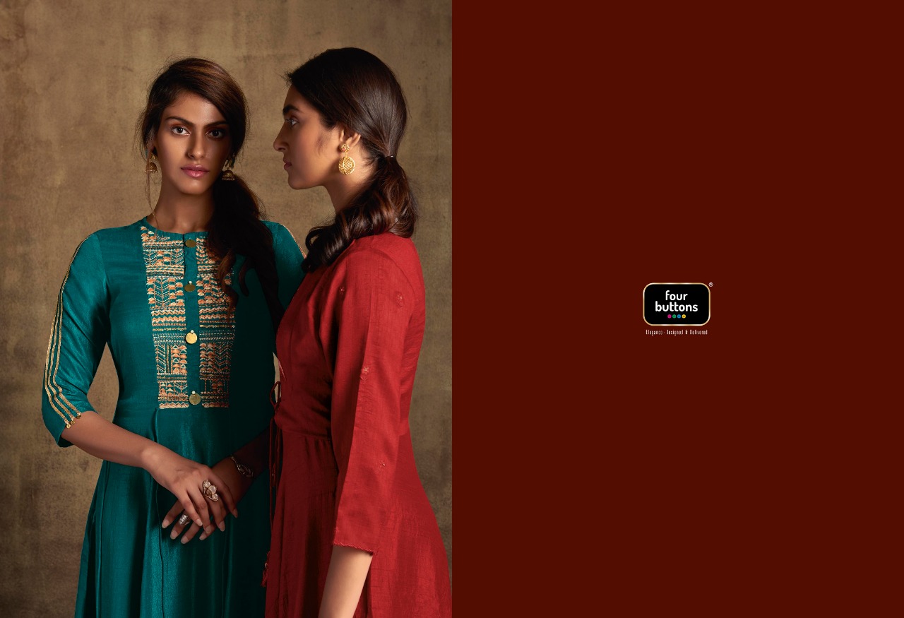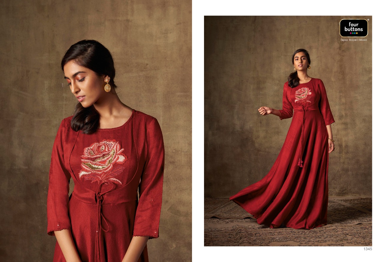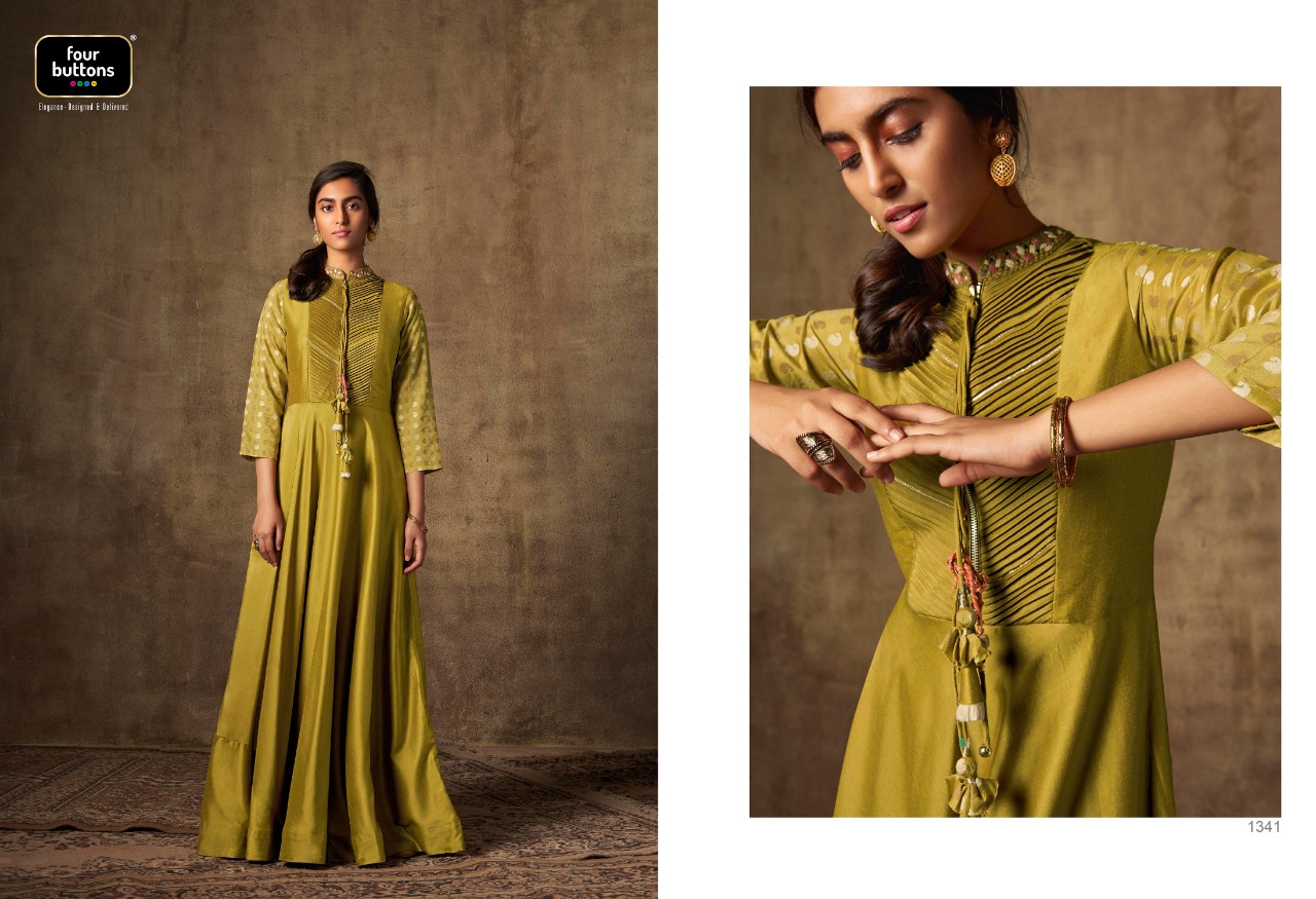 Four Buttons Launch Imrit Silk Long Gown Festival Collection Kurti Wholesaler