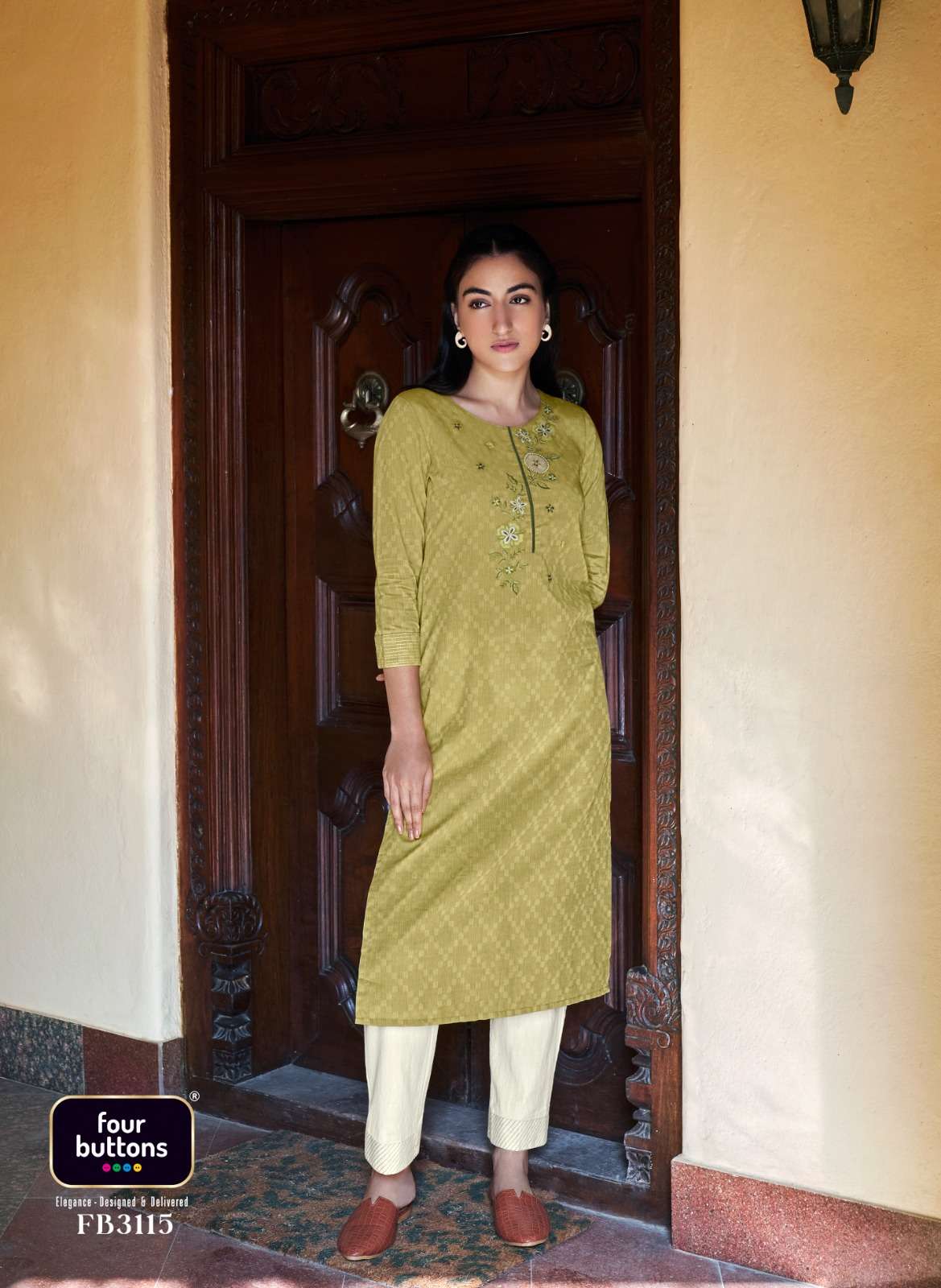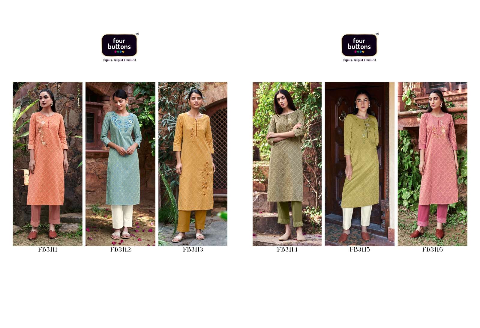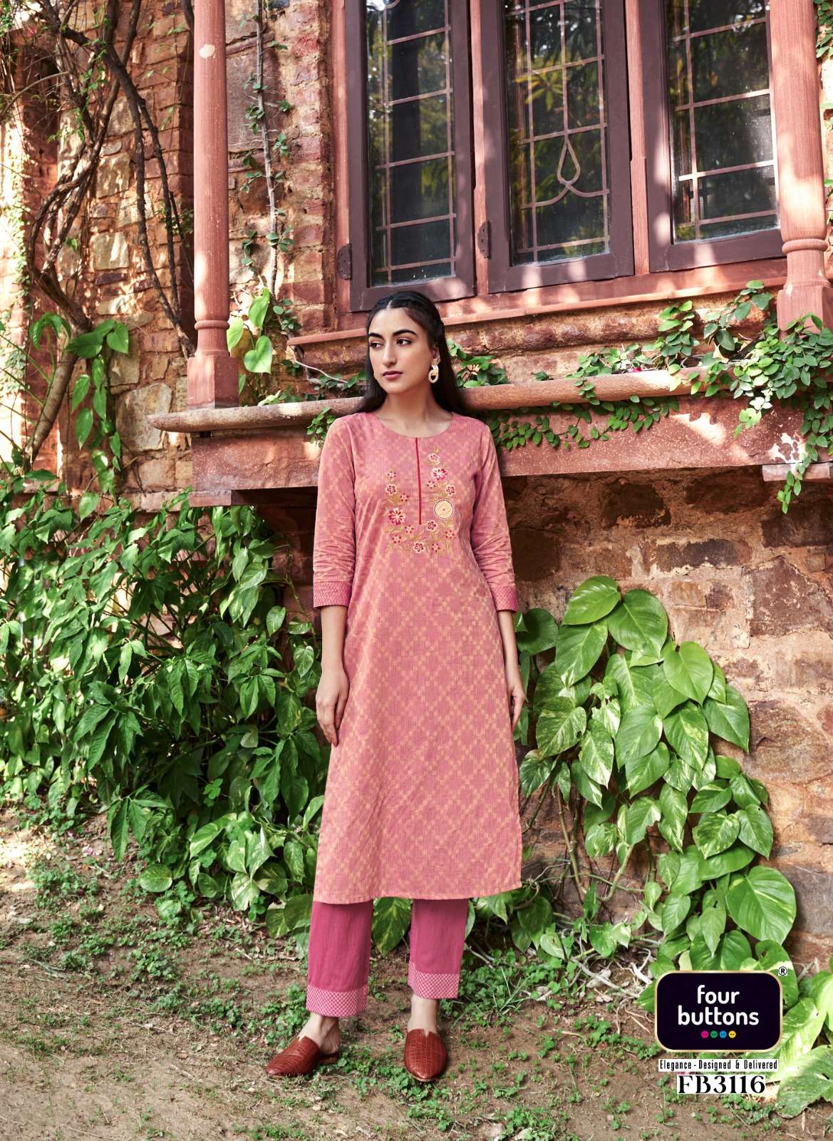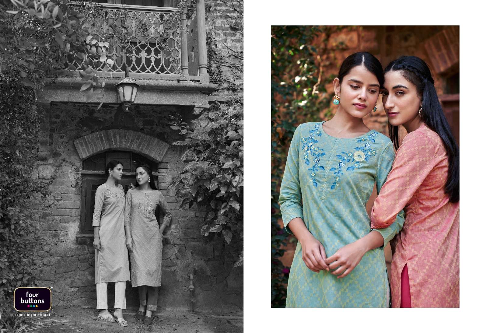 four buttons launching raabta 111-116 readymade pure cotton kurti with pant