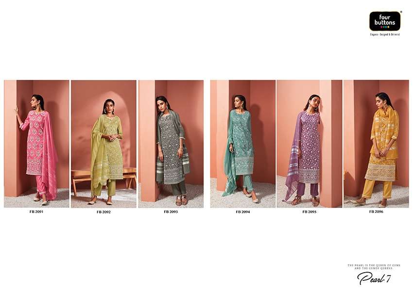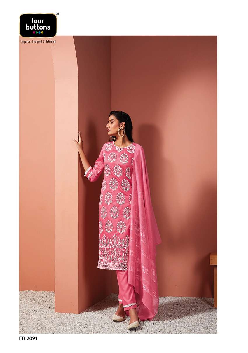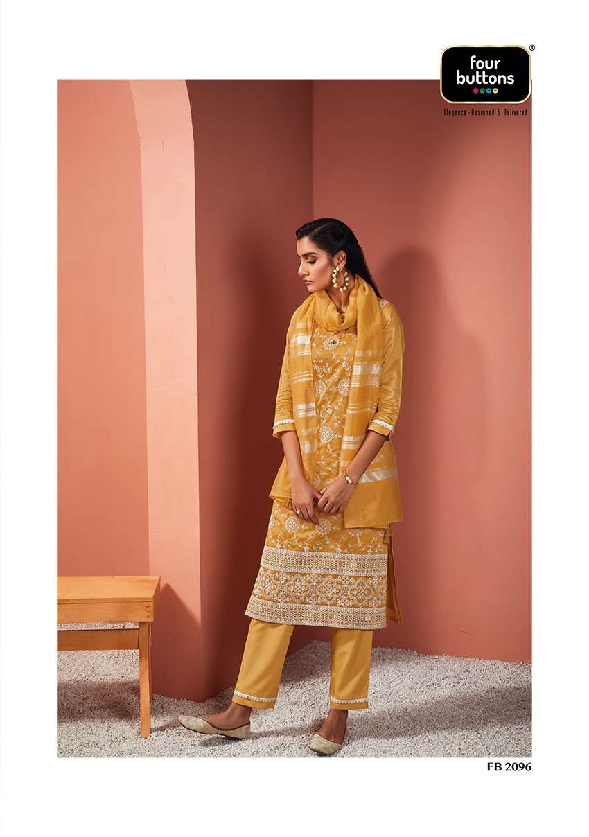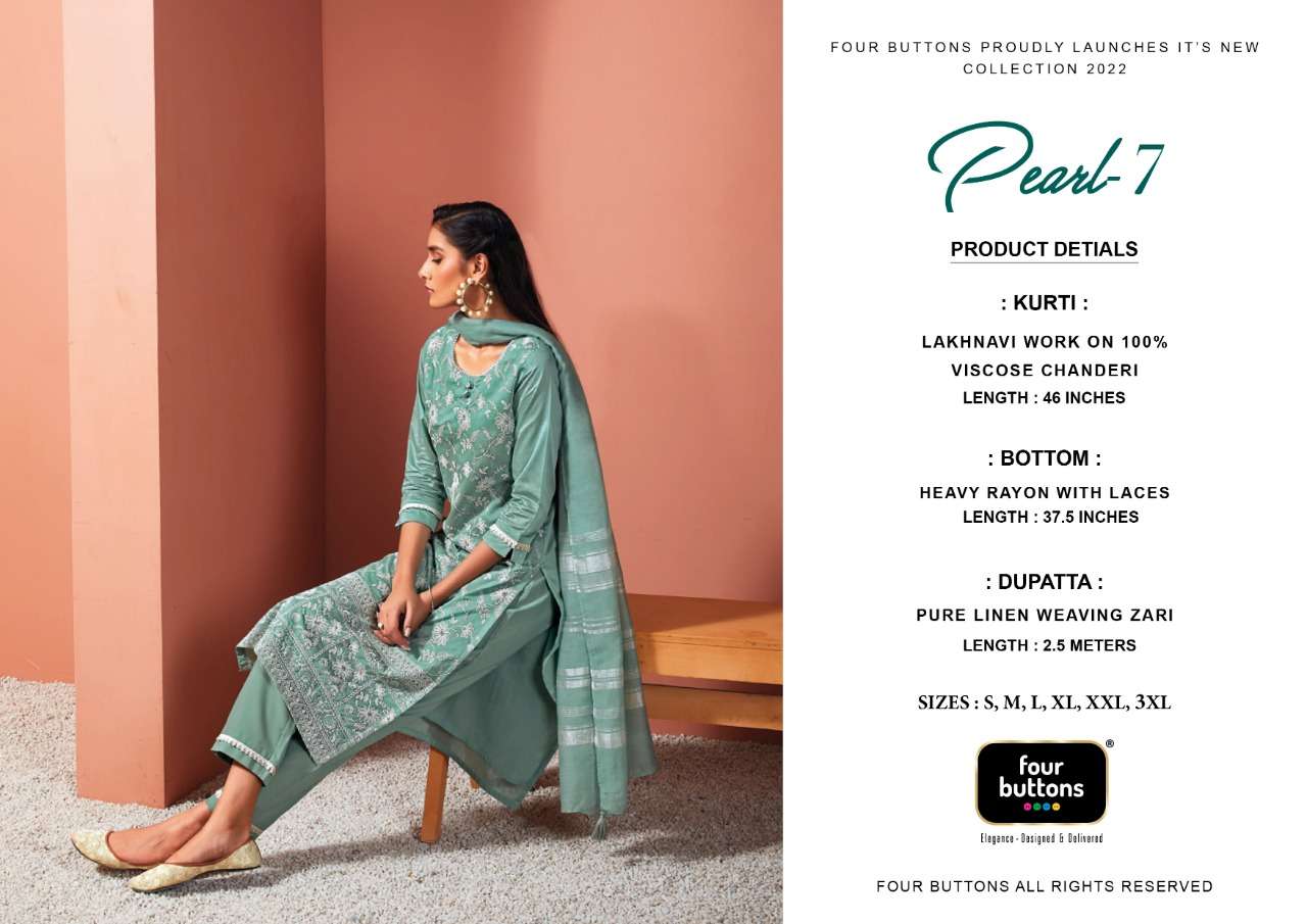 FOUR BUTTONS proudly launches its NEW collection 2022 "PEARL 7" FABRIC KURTI - LAKHNAVI WORK ON 100% VISCOSE CHANDERI BOTTOM - HEAVY RAYON WITH LACES DUPATTA- PURE LINEN WEAVING ZARI RATE - Rs 1251/- SIZES - M, L, XL, XXL, 3XL |