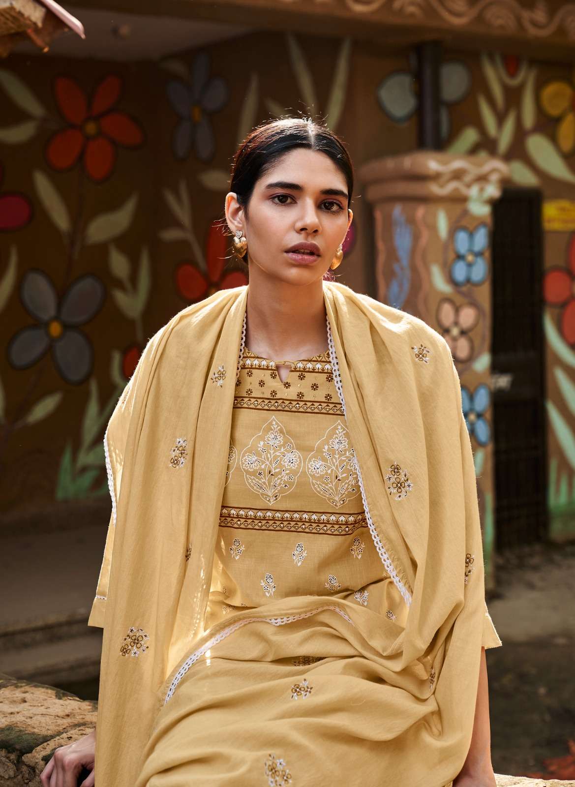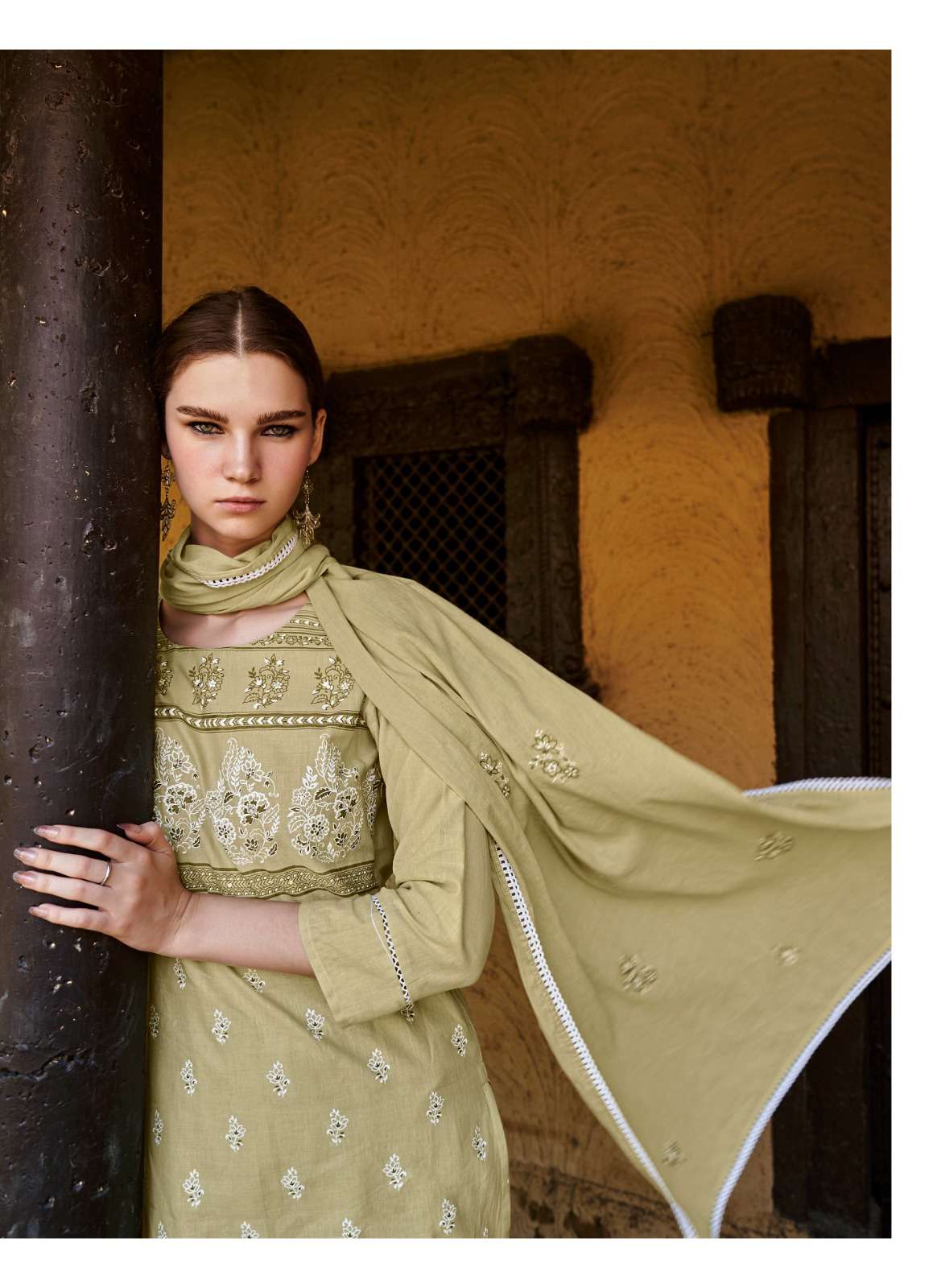 Four button New "VEDA" KURTI- INTRICATE PRINT DESIGNS ON PURE COTTON LINEN BOTTOM- PURE COTTON LINEN WITK CROCHET LACES DUPATTA- COTTON MUL WITH ALL OVER EMBROIDERY AND CROCHET LACES RATE - Rs 1099/- SIZES - M, L, XL, XXL, 3XL LENGTH - 46" |