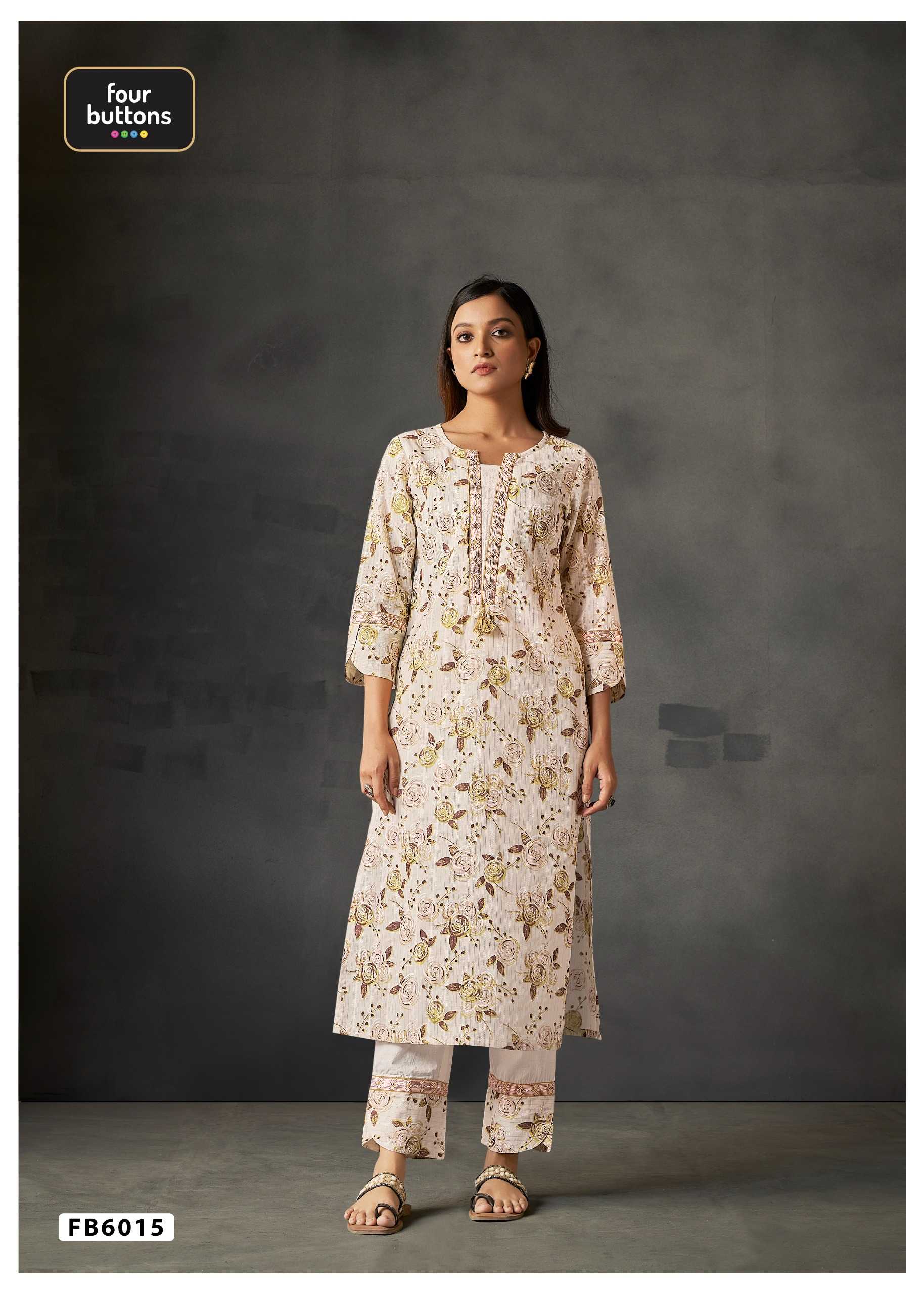 four buttons skd set fb 6015 readymade digital print kurti pant combo set