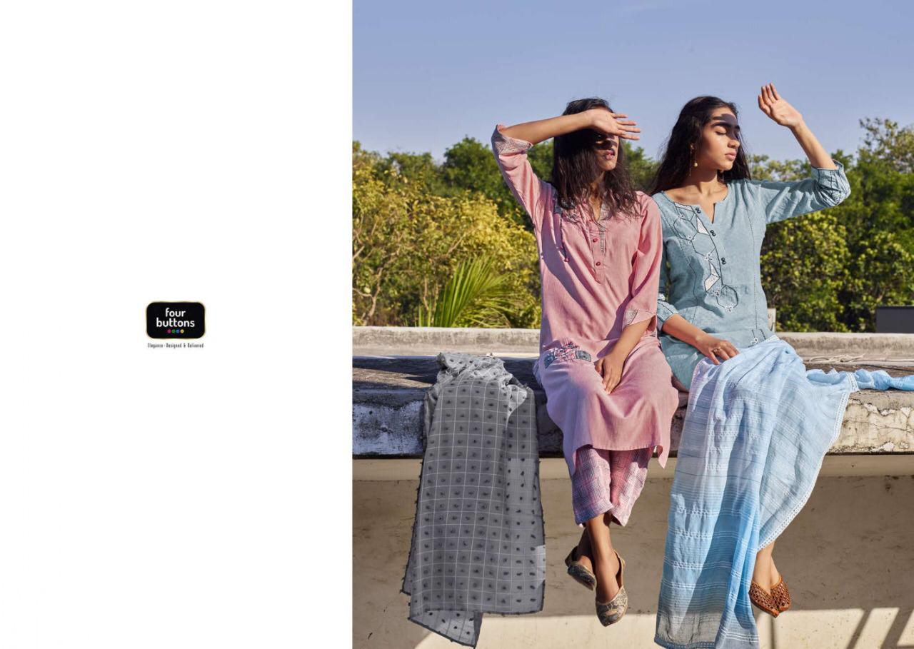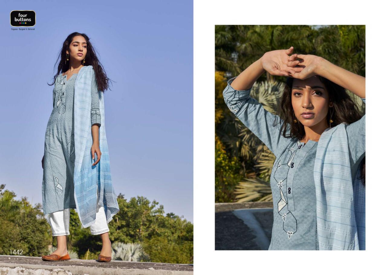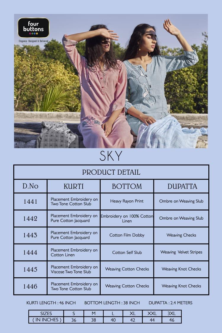 Four Buttons Sky Cotton Readymade Top Bottom With Dupatta Concept