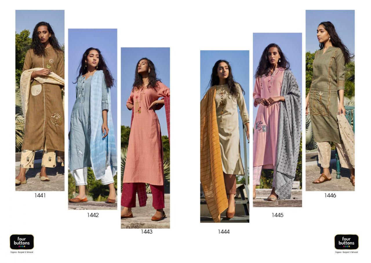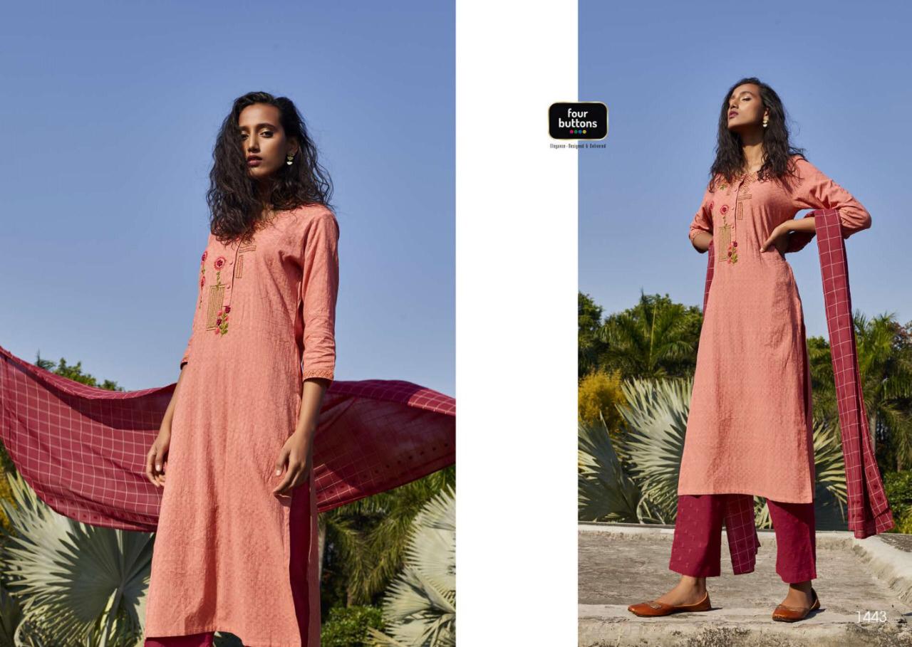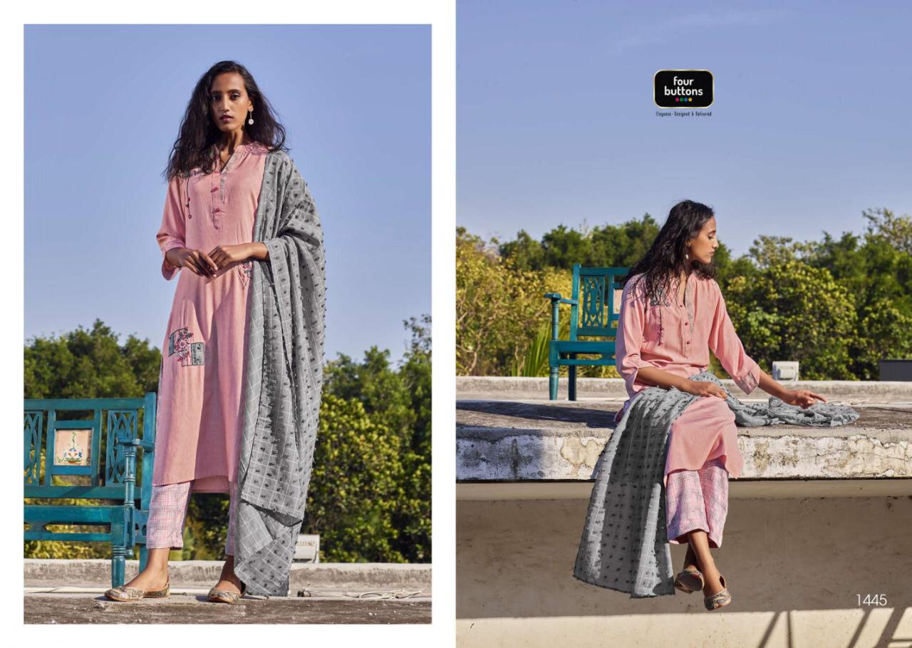 Four Buttons Sky Cotton Readymade Top Bottom With Dupatta Concept