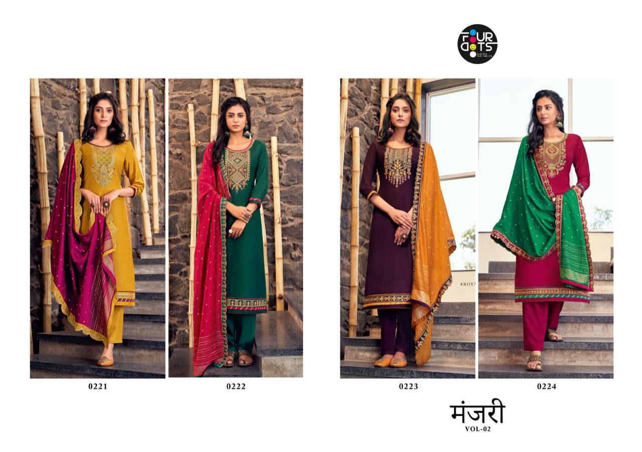 fourdots manjari vol 2 silk embroidery elegant salwar suits wholesaler