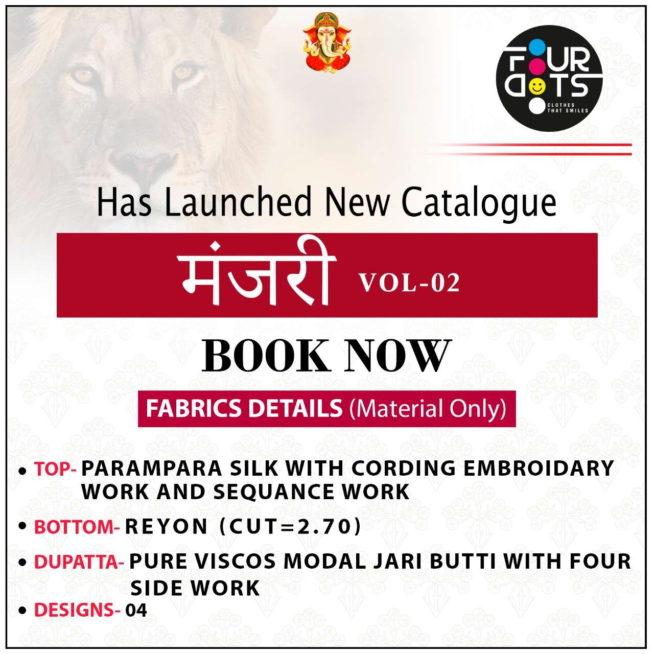 Fourdots Presents Latest Collection Launched on 08-03-2021. Presenting Beautiful collection of 4 PCS with Unstitched .