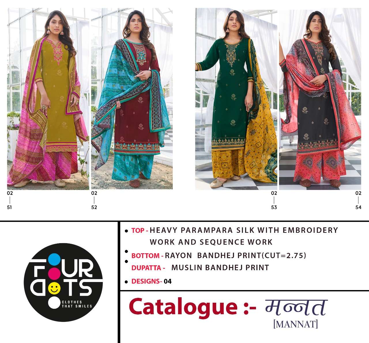 Fourdots Presents Latest Collection Launched on 19-11-2021. Presenting Beautiful collection of 4 PCS with Unstitched .