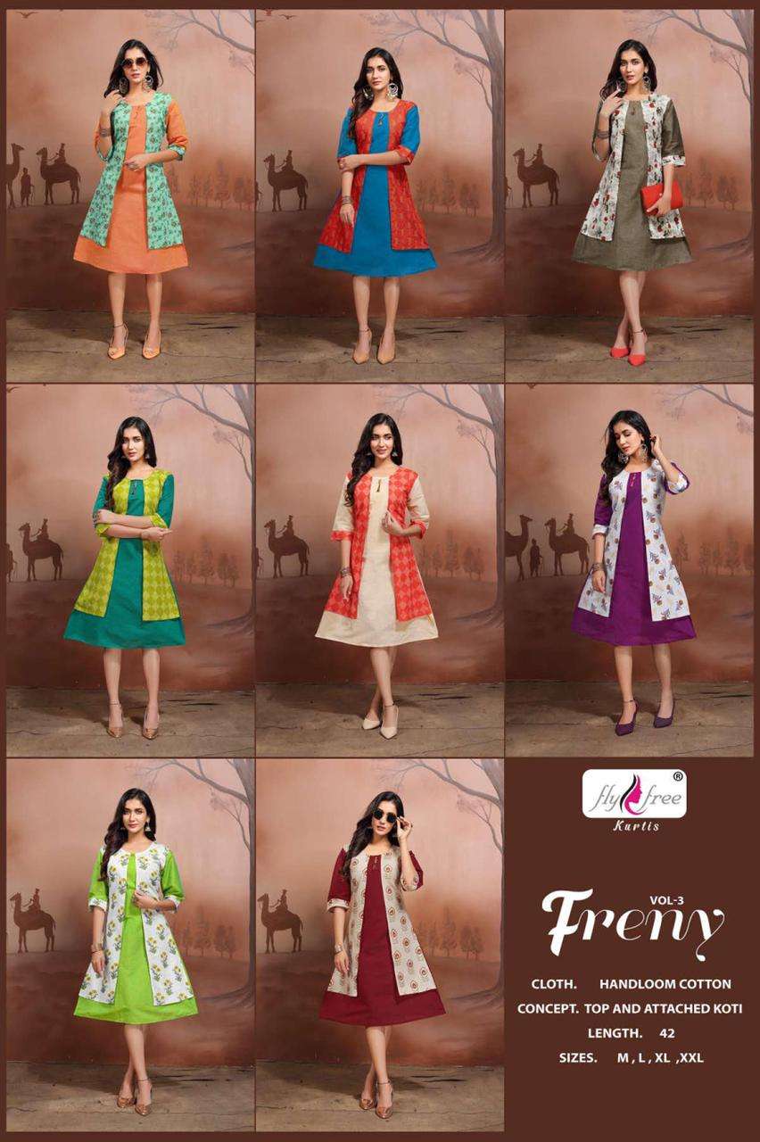 FRENY VOL-3 BY FLY FREE HEAVY HANDLOOM COTTON KURTI CATALOG WHOLESALER BEST RATE
