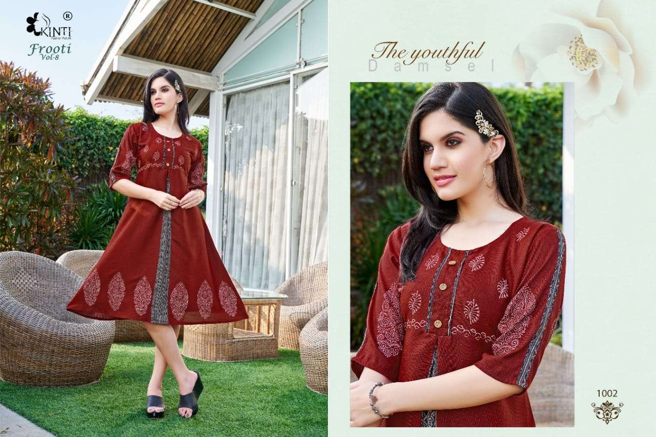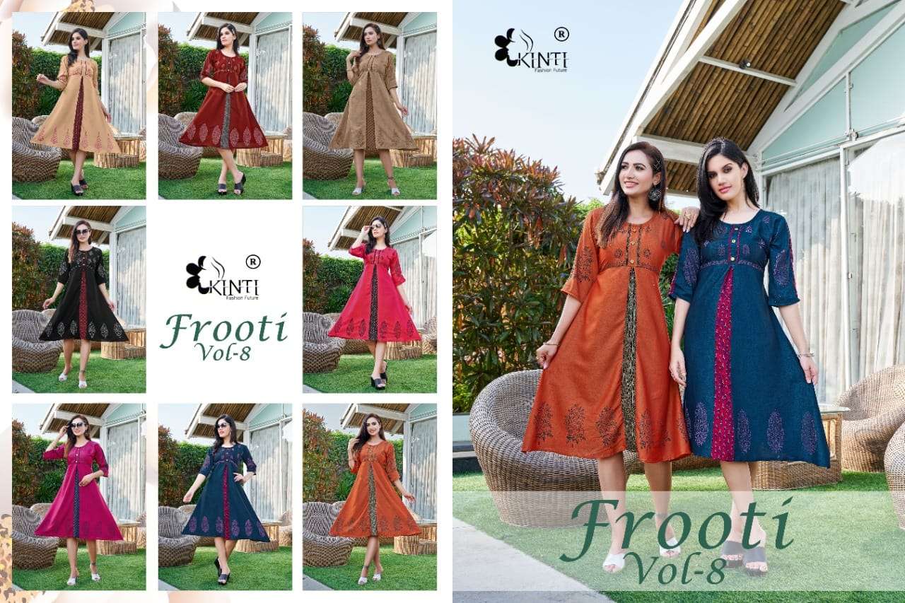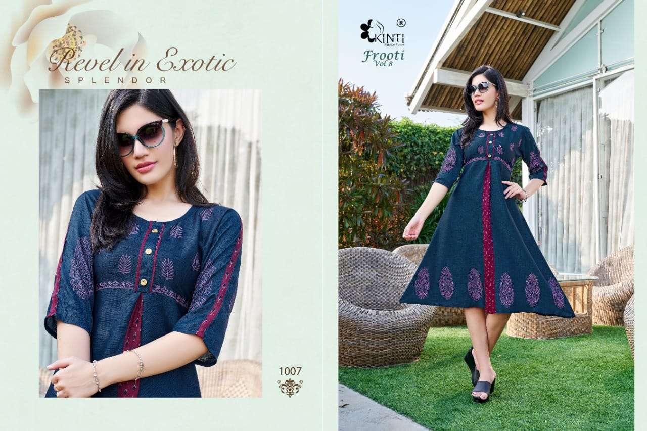 Frooti by KINTI ® Fabric. : Two tone Slub Style : Mix and match Sizes : S M L XL xxl 3xl Designs : 8 Price. : 280/-+Gst |