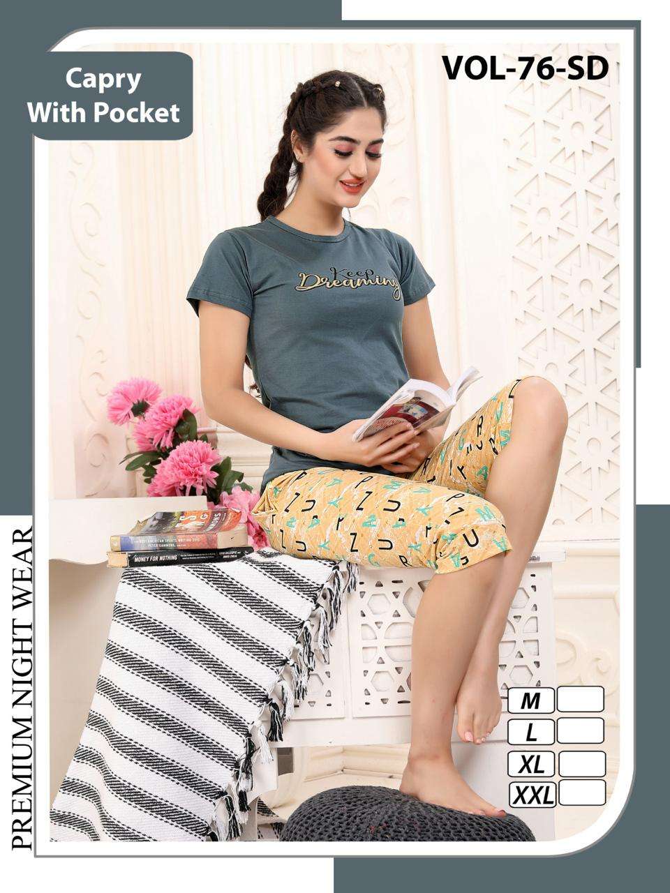 FT CAPRI VOL.76 SD Heavy Shinker Hosiery Cotton Night Suits With Pocket Capri CATALOG WHOLESALER BEST RATE
