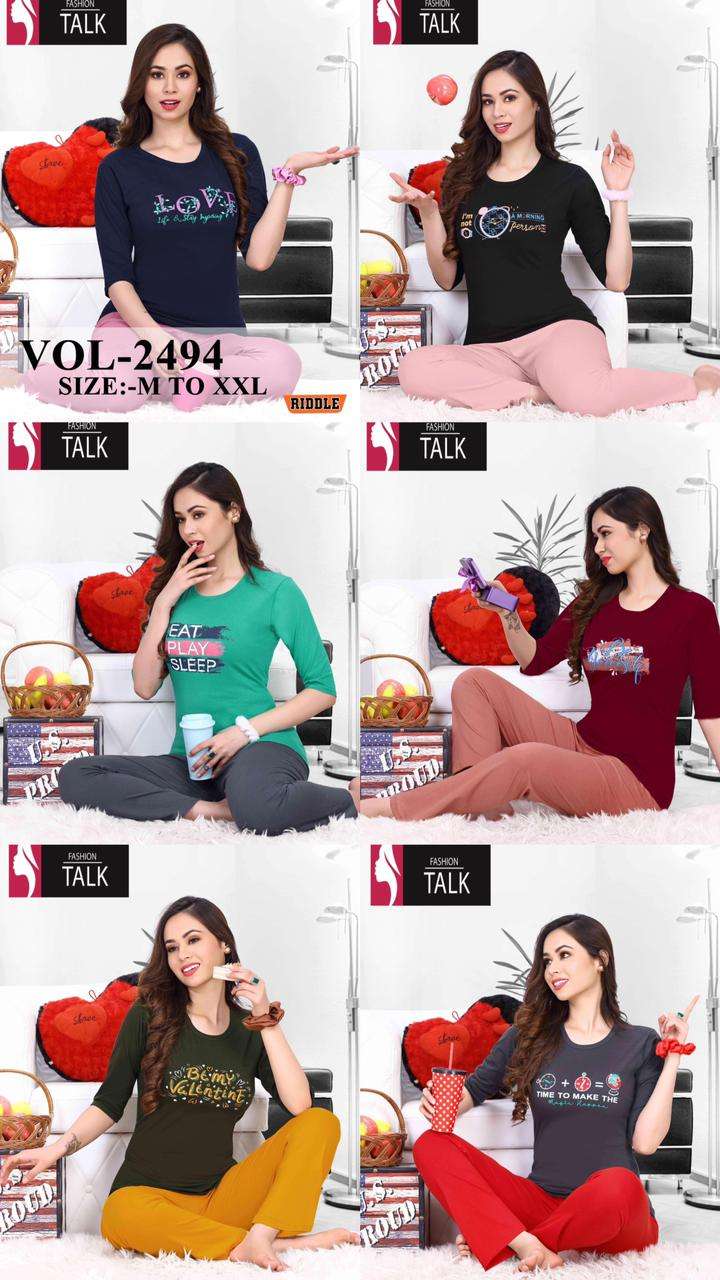 FT RIDDLE SHINKER NS LONG SLEEVE VOL.2494 HEAVY Shinker Hosiery Cotton NIGHT SUIT CATALOG WHOLESALER BEST RATE