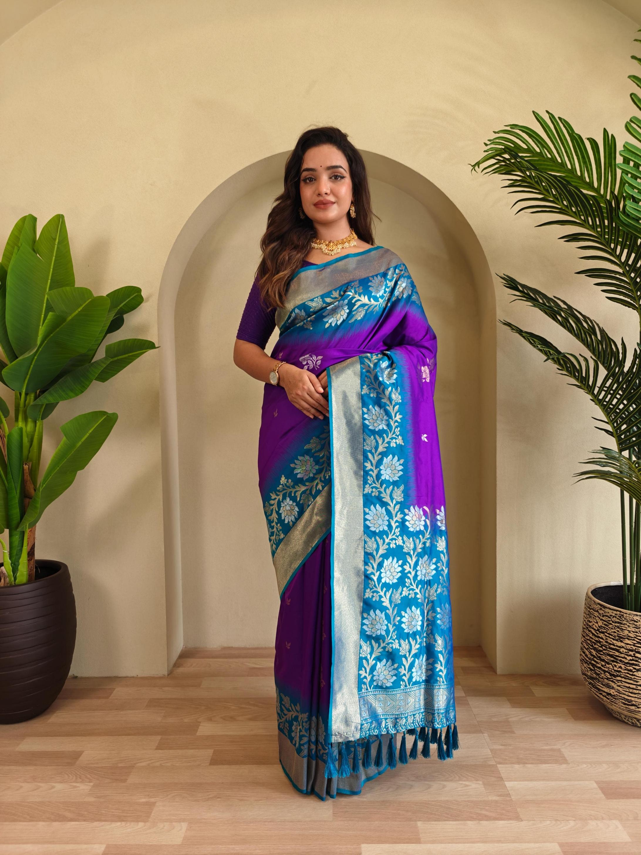 New Catalogue 😍 🥻 Catalogue - Fulpati 🥻👉🏻Description - Dual tone silk sarees with all over zari weaves, Contrast pallu and designer chaap border. 👉🏻 Blouse - as shown in videos. 😍. 👉🏻 1399/- 🤩 Ready stock 🚢🚢 |