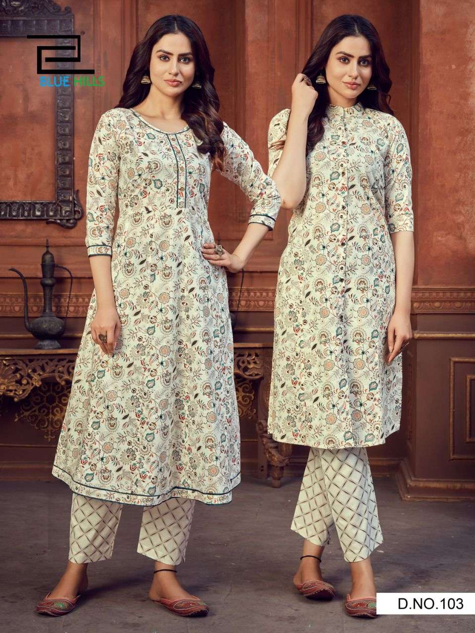 Fusion Vol 1 By Blue Hills 2 Cotton Kurti Tops With 1 Pant Collection