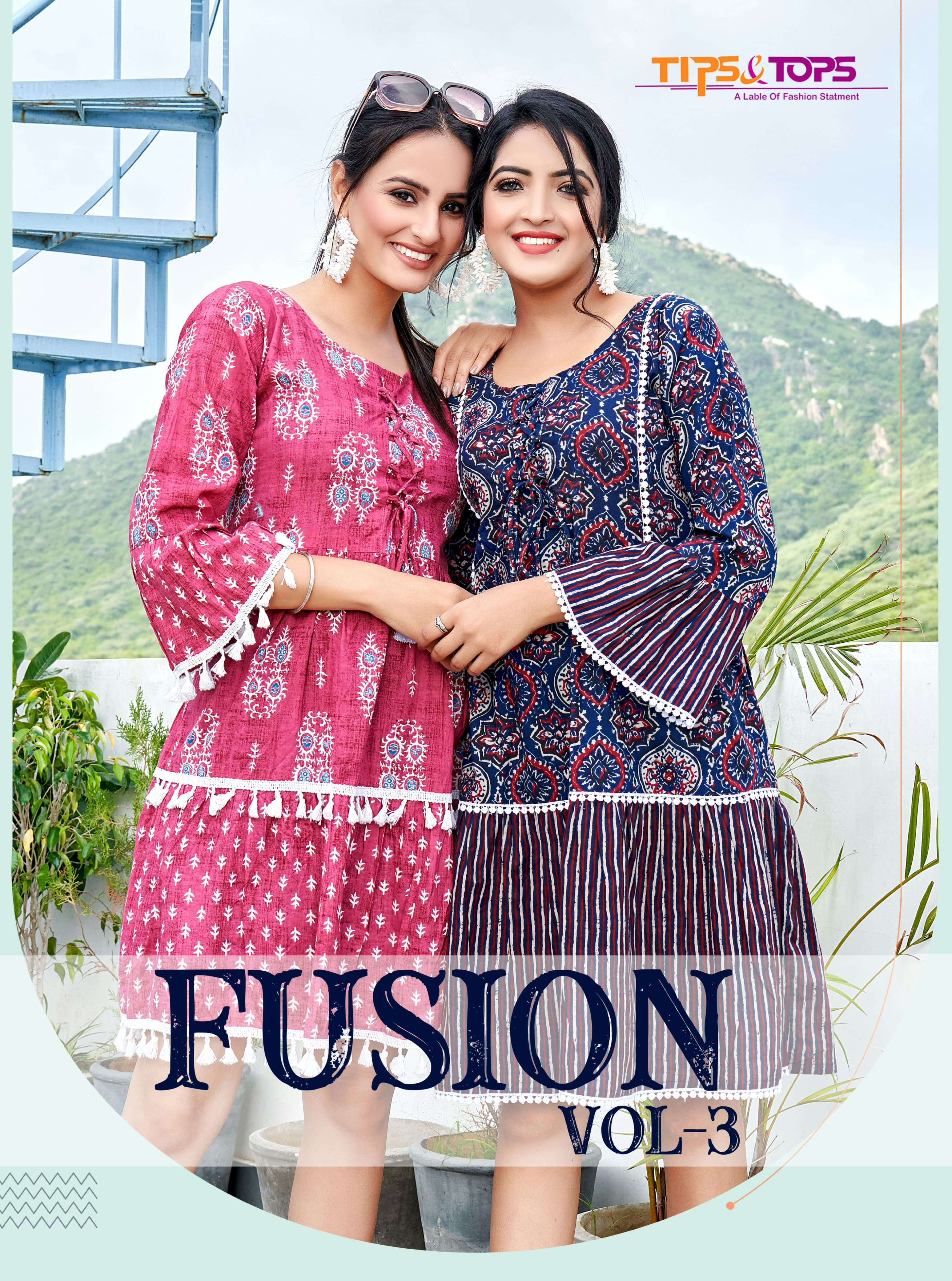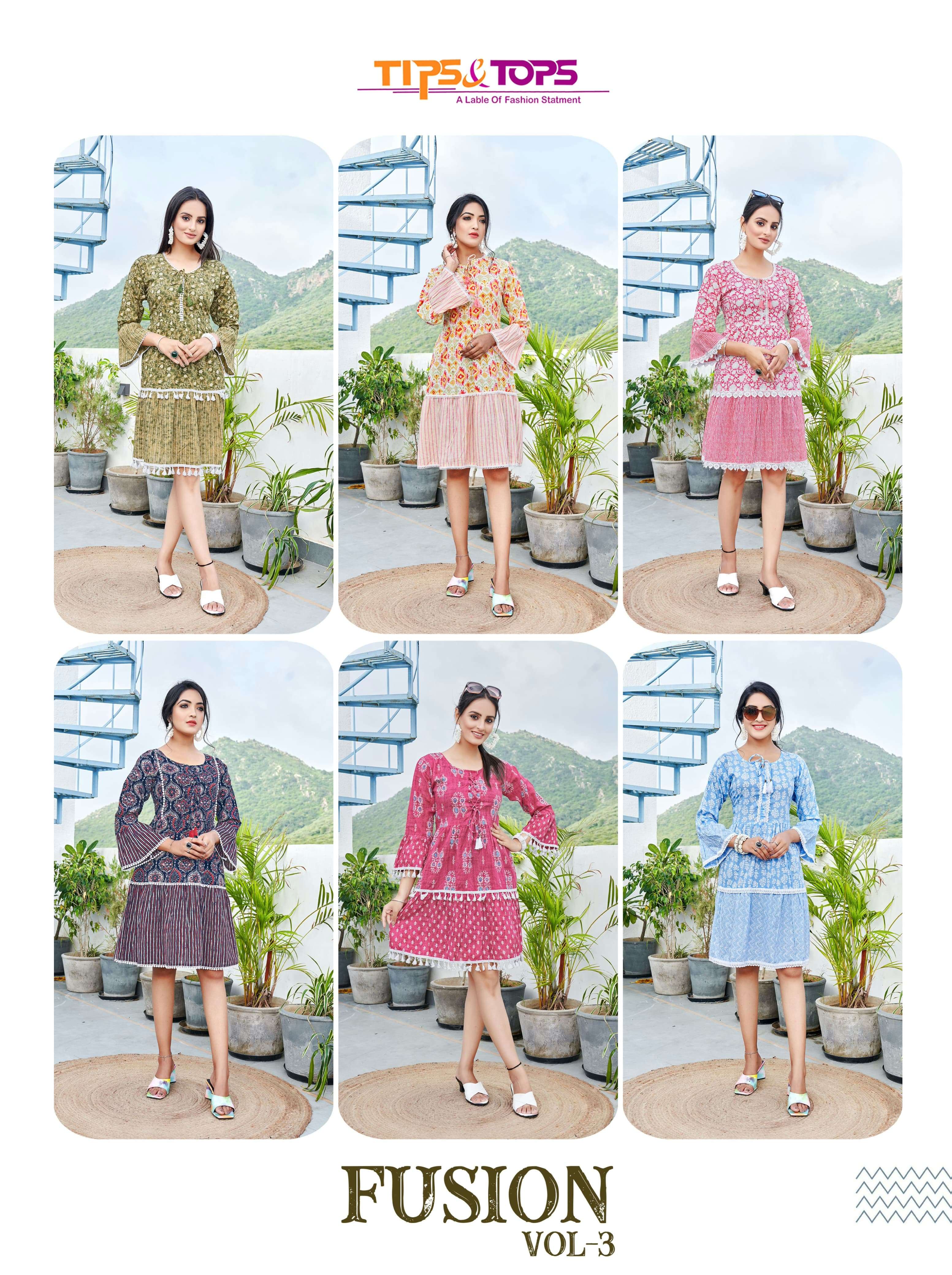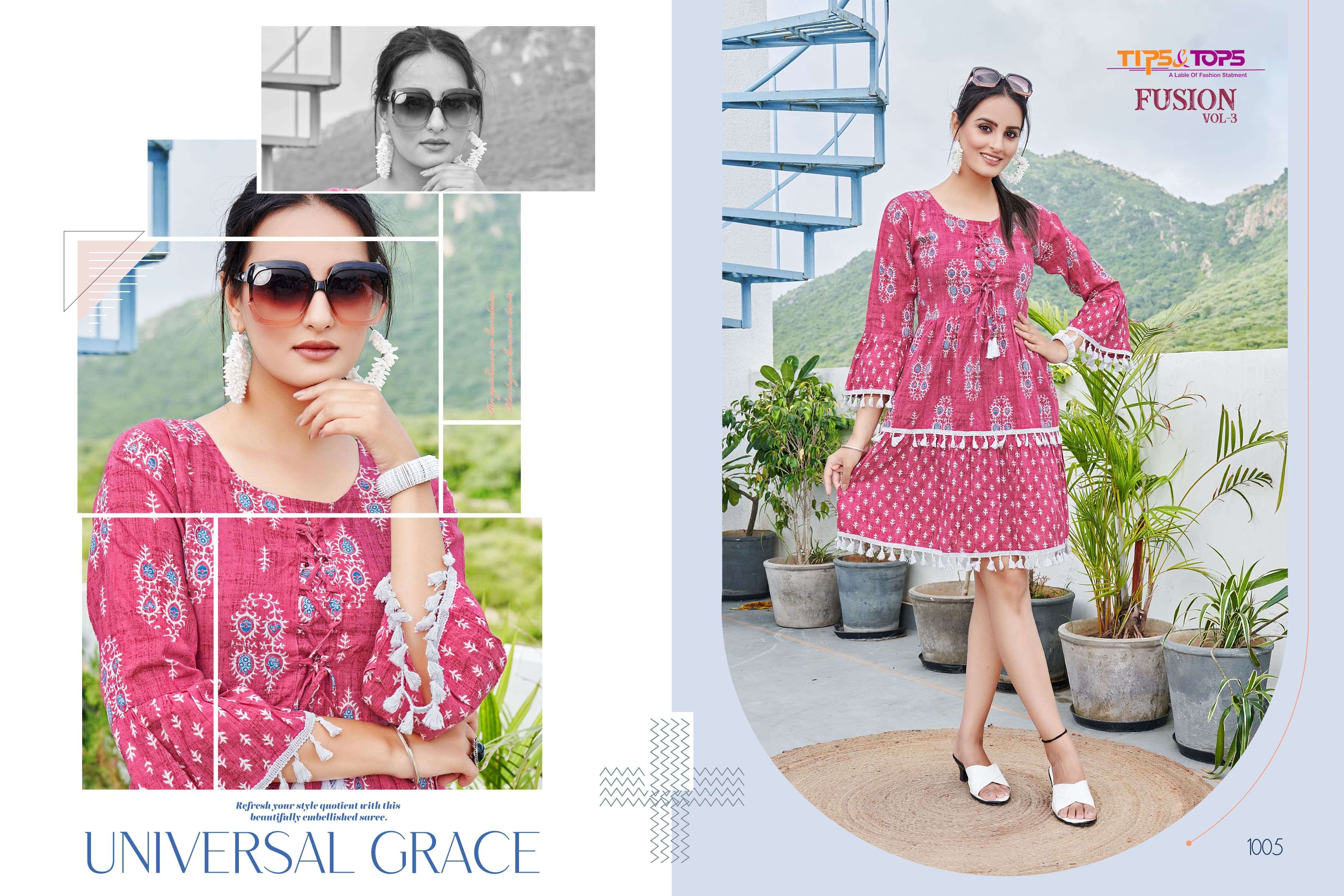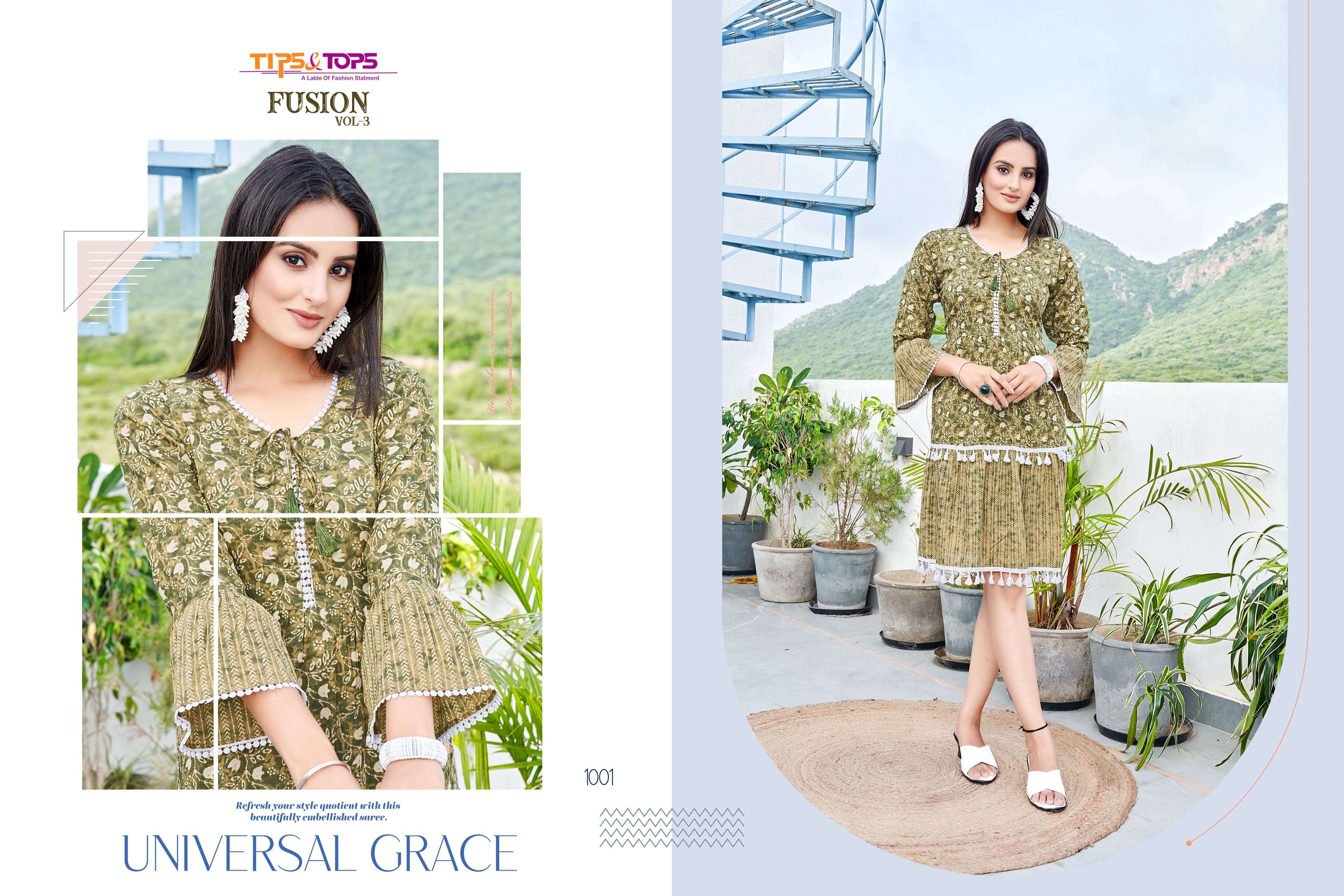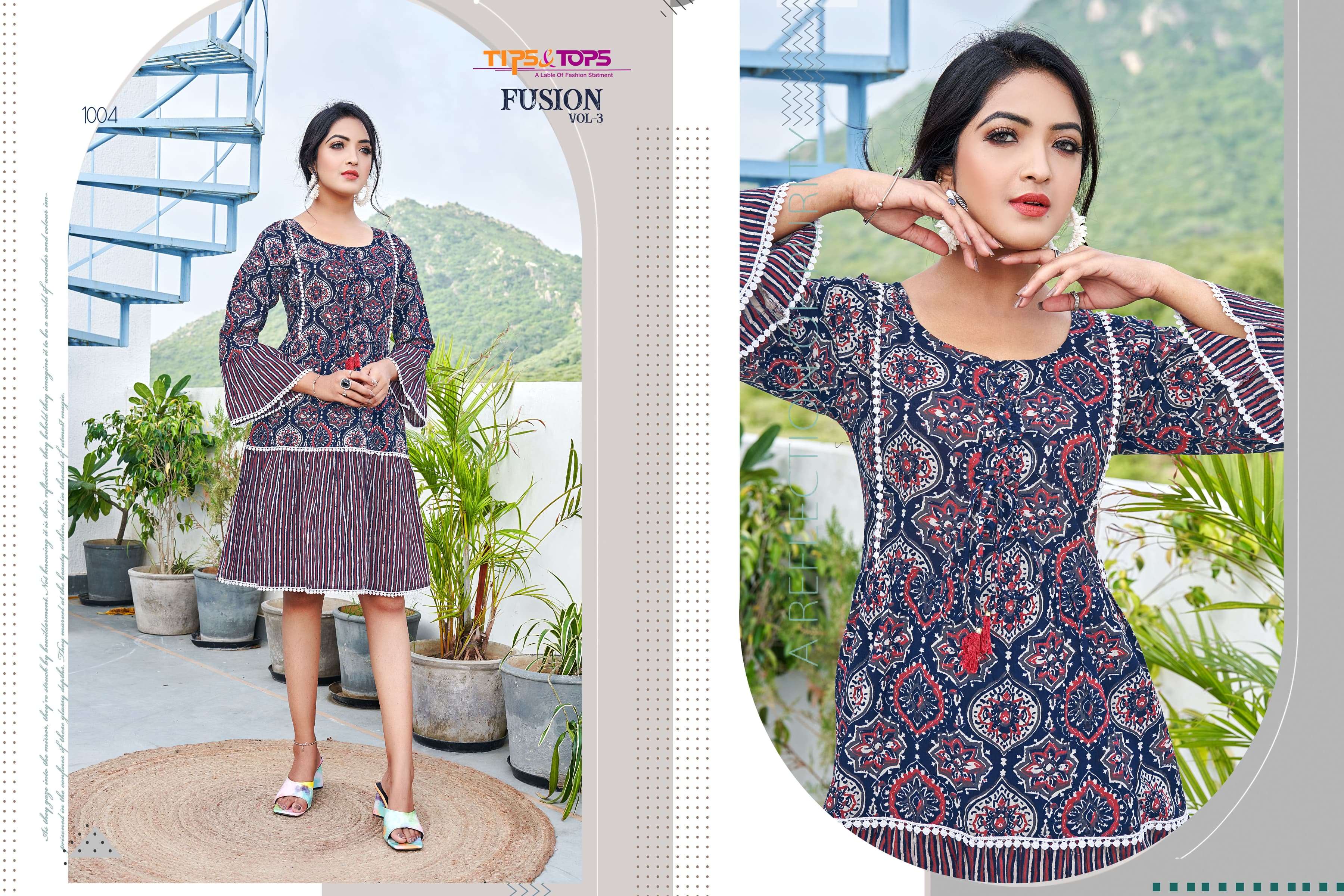 fusion vol 3 by tips & tops fancy stitching patterns cotton short kurtis