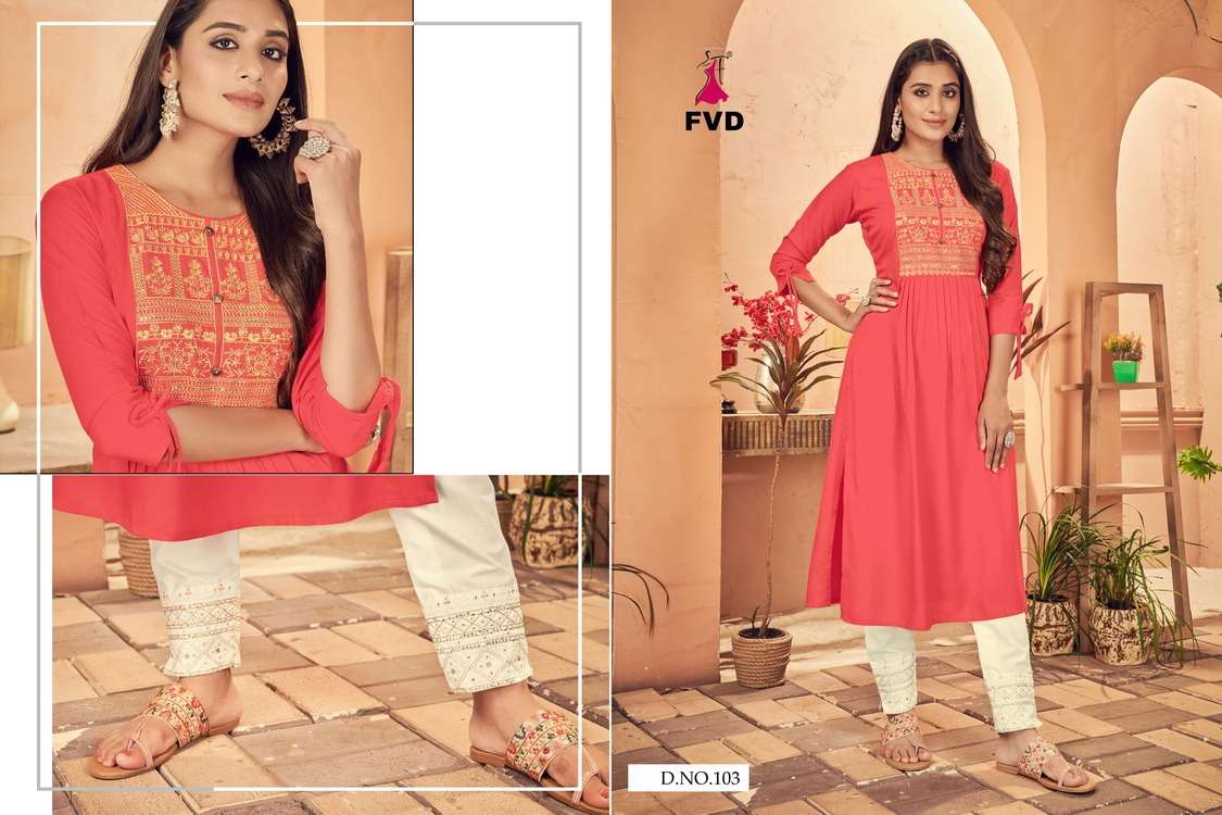Fvd Kesar Vol 1 Rayon Kurti With Cotton Pant Supplier