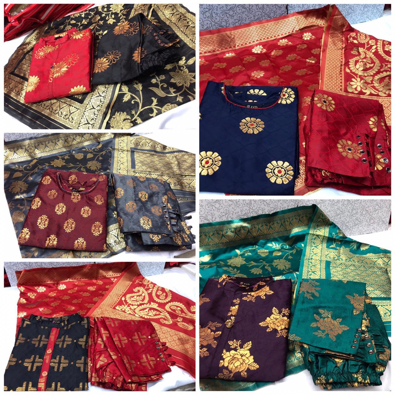 *Fashion valley dress presents new catalogue for kuti-pent-Duppatta collection * 📌 Brand Name : FVD (Fashionvalley Dresses) 📌 Catalog : Jannat Vol-1 📌 Design : 5 📌 Fabric : Banarasi jecard 📌 Top length- 42+ 📌Inner - Half inner santoon 📌 Pent fabric -Banarasi Jecard 📌pent length -38+ 📌Duppatta febric-Banarasi Jecard 📌 Size : L(40), XL(42), XXL(44) Rate : *750/- per pic * |