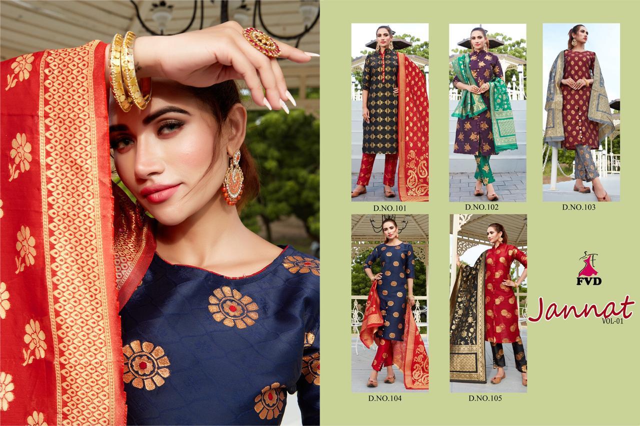 Fvd Launching Jannat Vol 1 Banarasi Jacquard Readymade Designer Festival Wear Suits