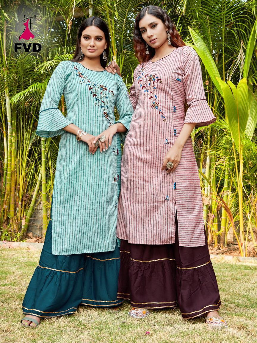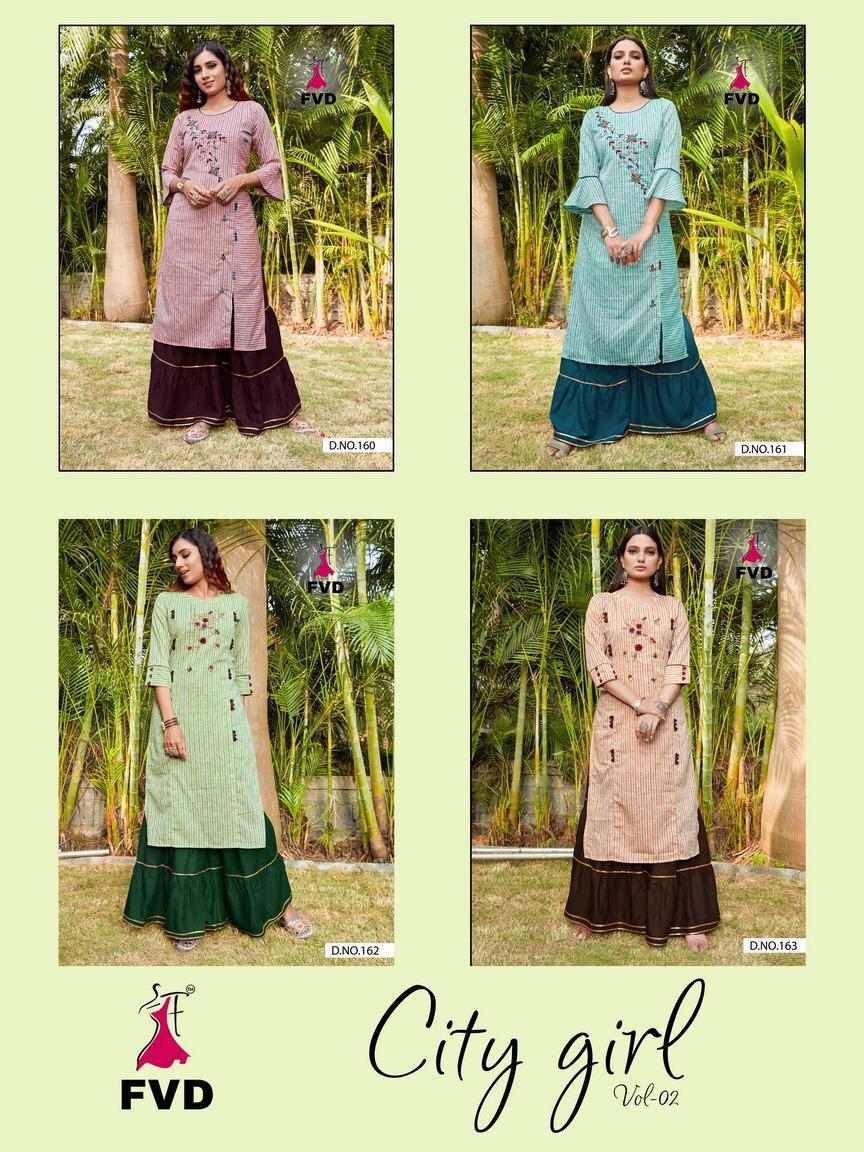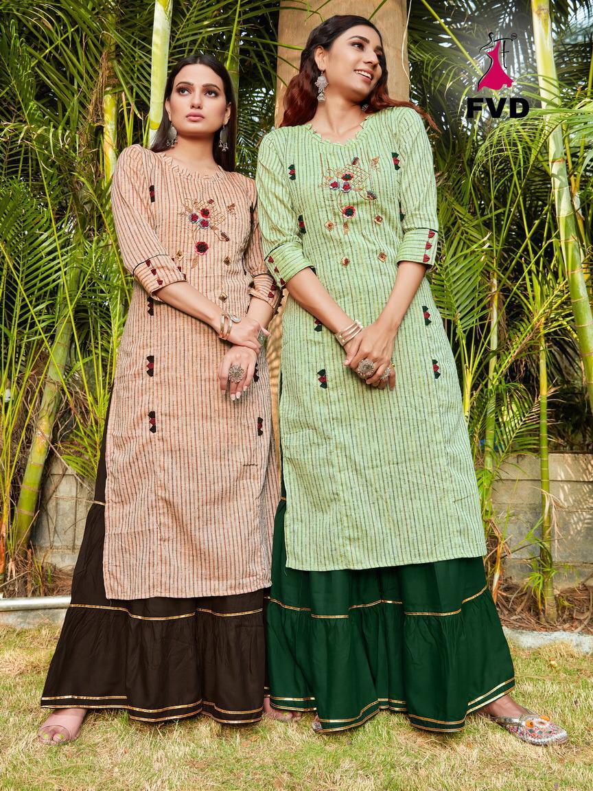Fvd Present City Girl Vol 2 Cotton Khatli Work Exclusive Party Wear Kurti With Sharara