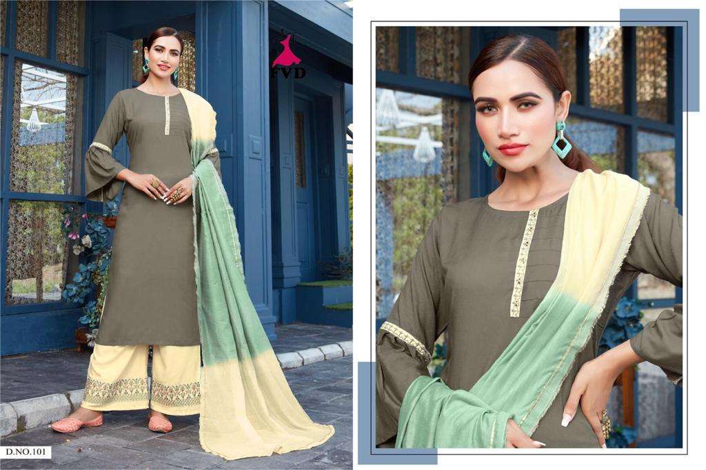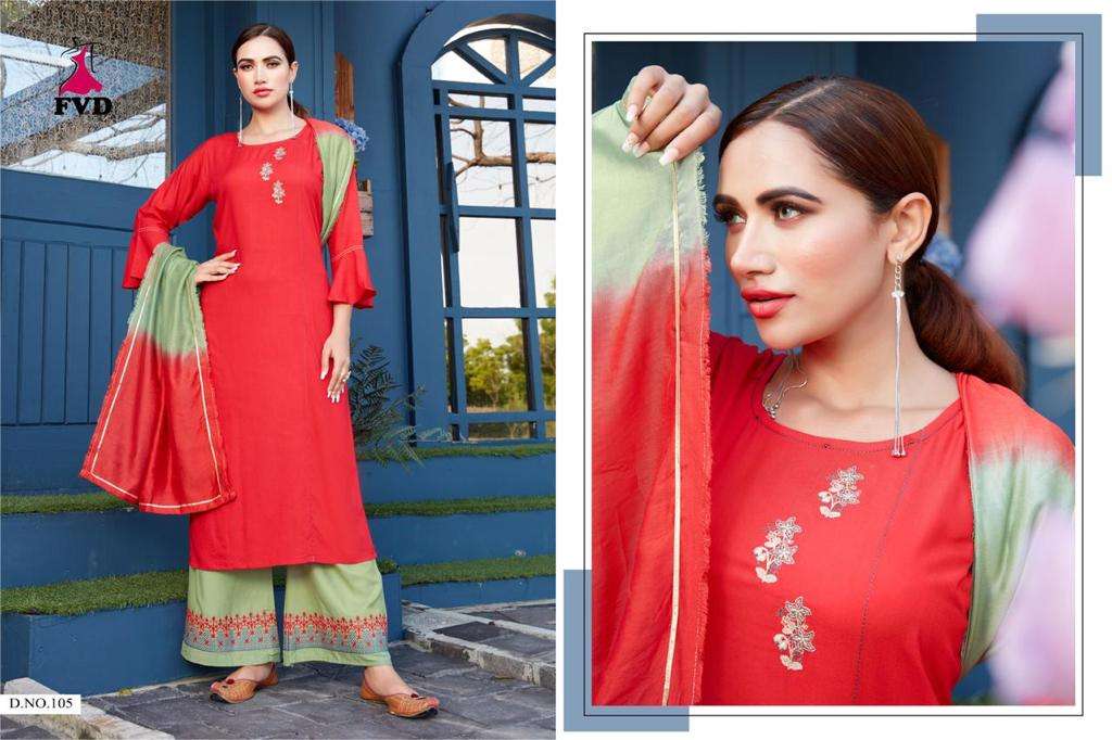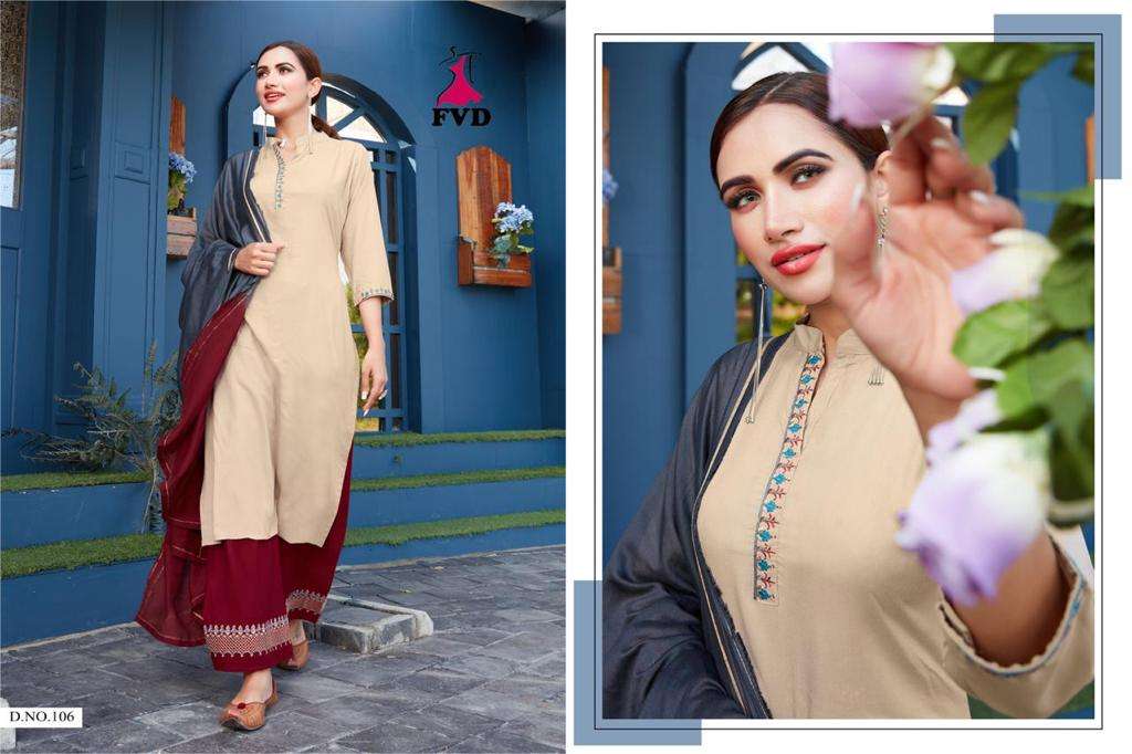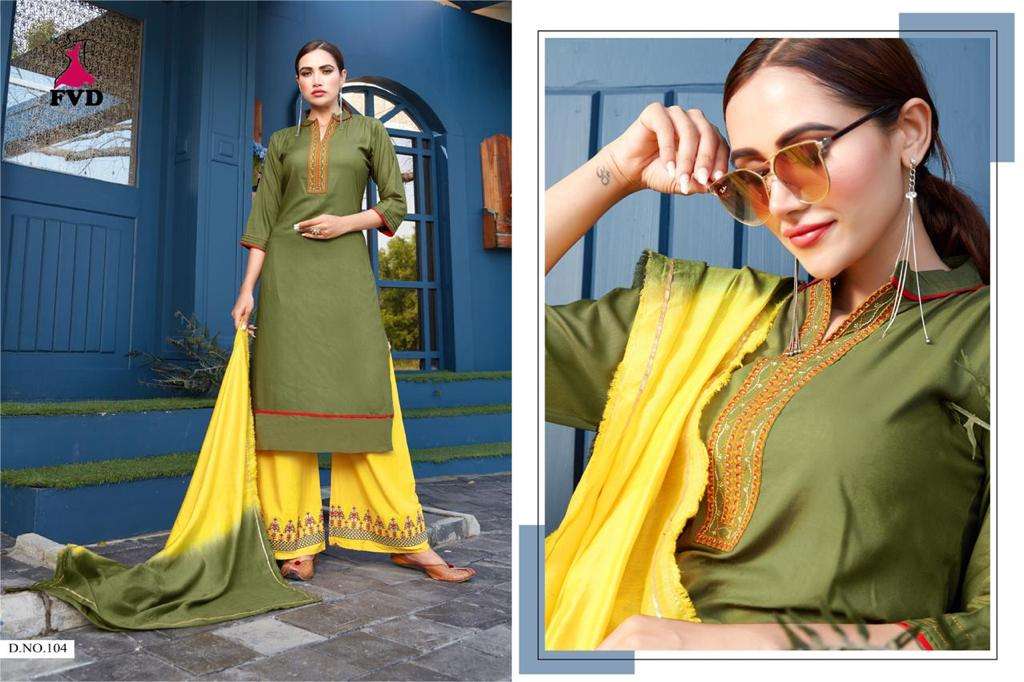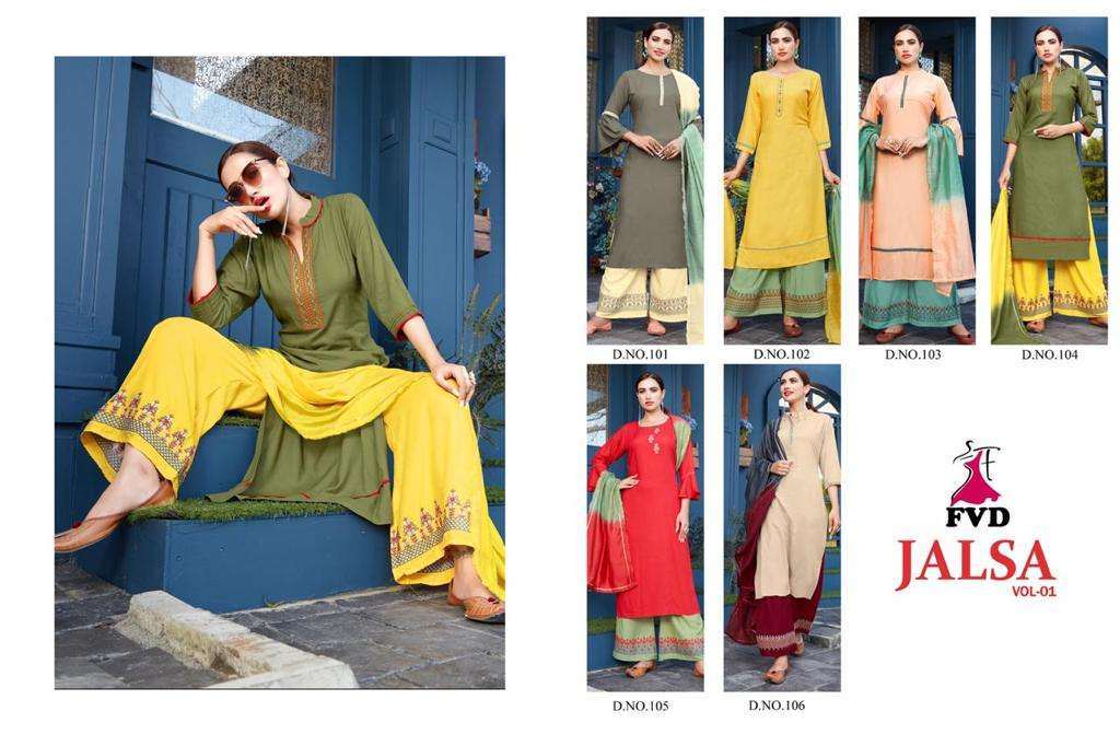 📌 Brand Name : FVD (Fashionvalley Dresses) 📌 Catalog : Jalsa Vol-1 📌 Design : 6 📌 Fabric : Reyon 14 kg (Fancy Embroidery work ) 📌 Pent fabric -Rayon 14 kg (Fancy embroidery work) 📌Duppatta febric-Repiyor gadhwal fancy duppatta Rate : 800 per PCs . |