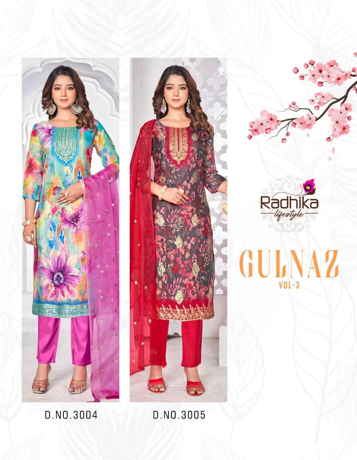 gülnaz vol 1 by radhika lifestyle new trendy organza silk full stitch salwar suit