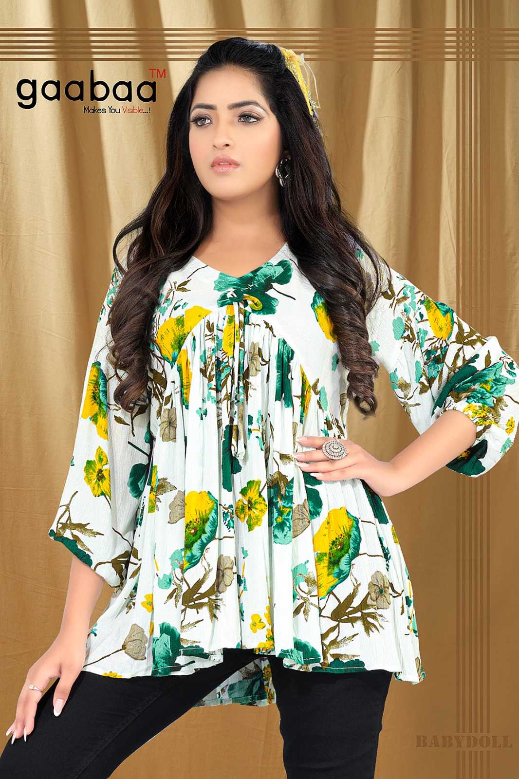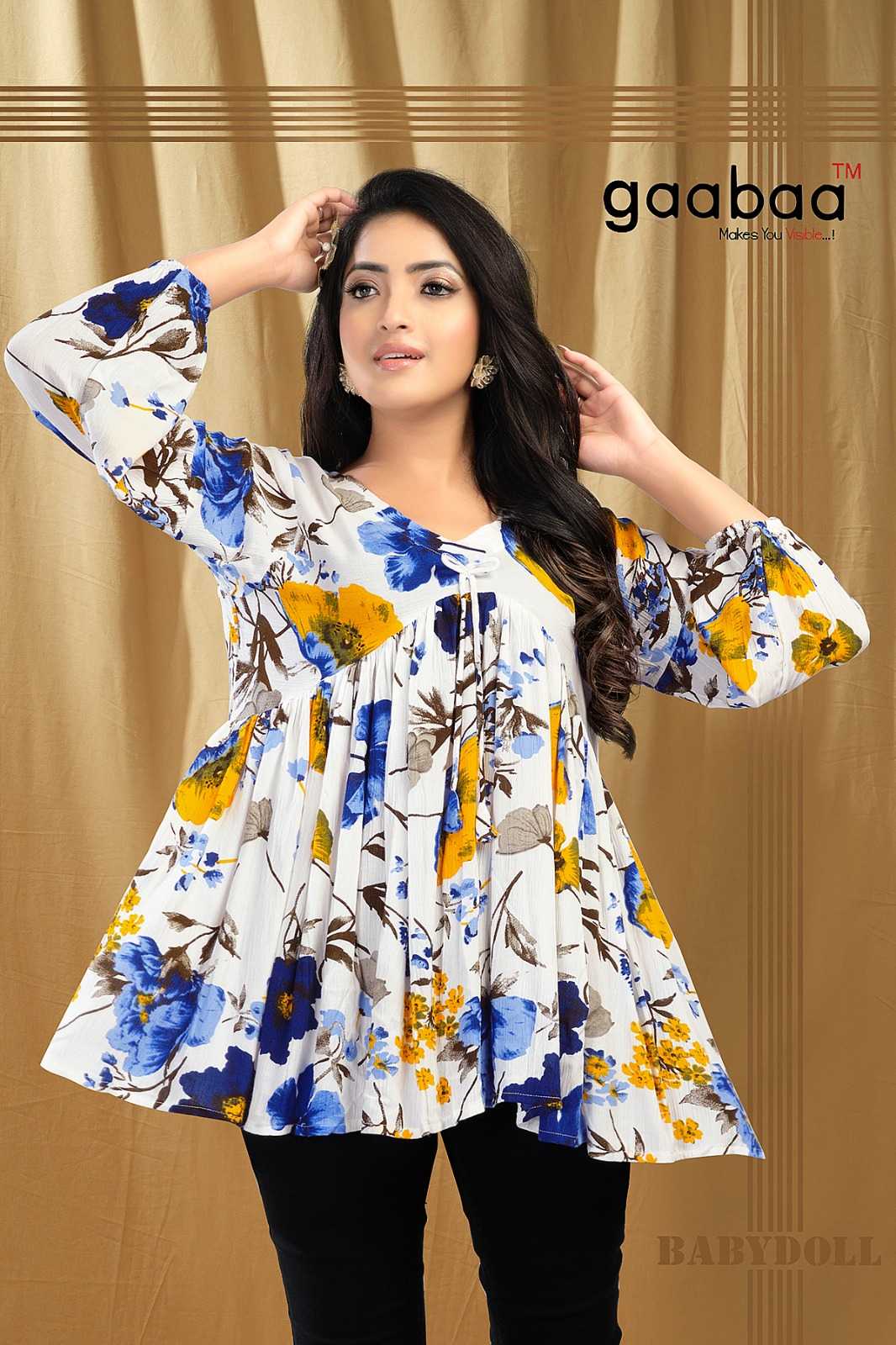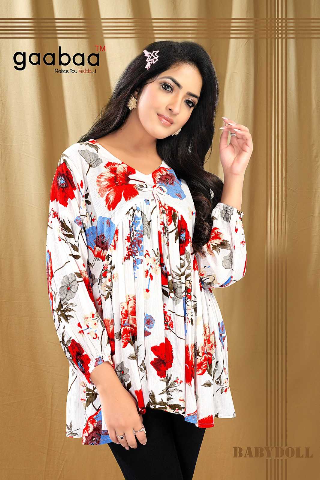 Name-: BABY DOLL Material-: Heavy Reyon Wrinkle Top With Aalia Cut Pattern Size-: M to XXL Rate-: 365 |
