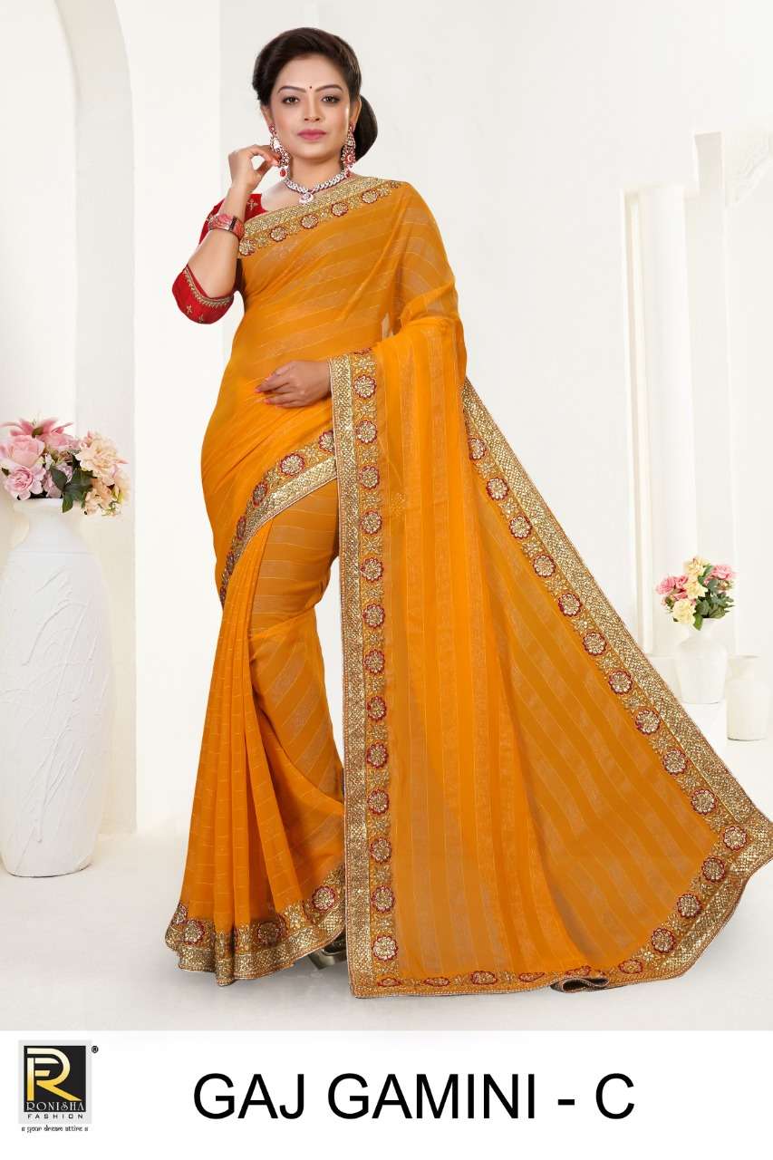 Dear Customer, We are launching our new Saree Catalog Brand – Ranjna Sarees Catalog Name : GAJ GAMINI Fabrics – CHIFFON Cut - 6.30 Mtr * Set to set * Rate 1485/- Pc – 04 GST 5 Percent Extra. Book your order now |