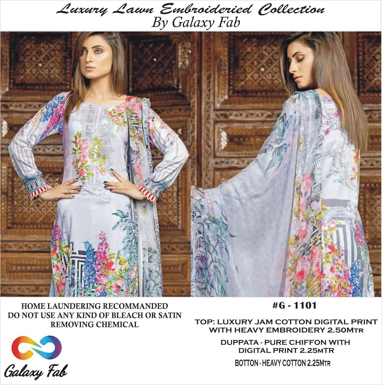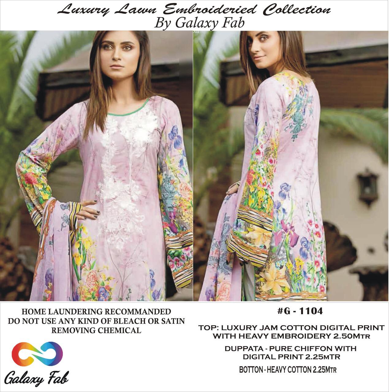 Sir/Madam... Thanks for your support. Today GALAXY FAB©️ hitting market again with exclusively trending series of pakistani catlogs SANA SAFINAZ lawn collection Premium collection Fabric details picture Top: Pure Jam cotton with heavy self embroidery Sleeve: pure jam cotton with digital print Bottom: semi lawn Dupatta: pure chiffon with digital print RATE : 800* ❤️ 4 pcs only |