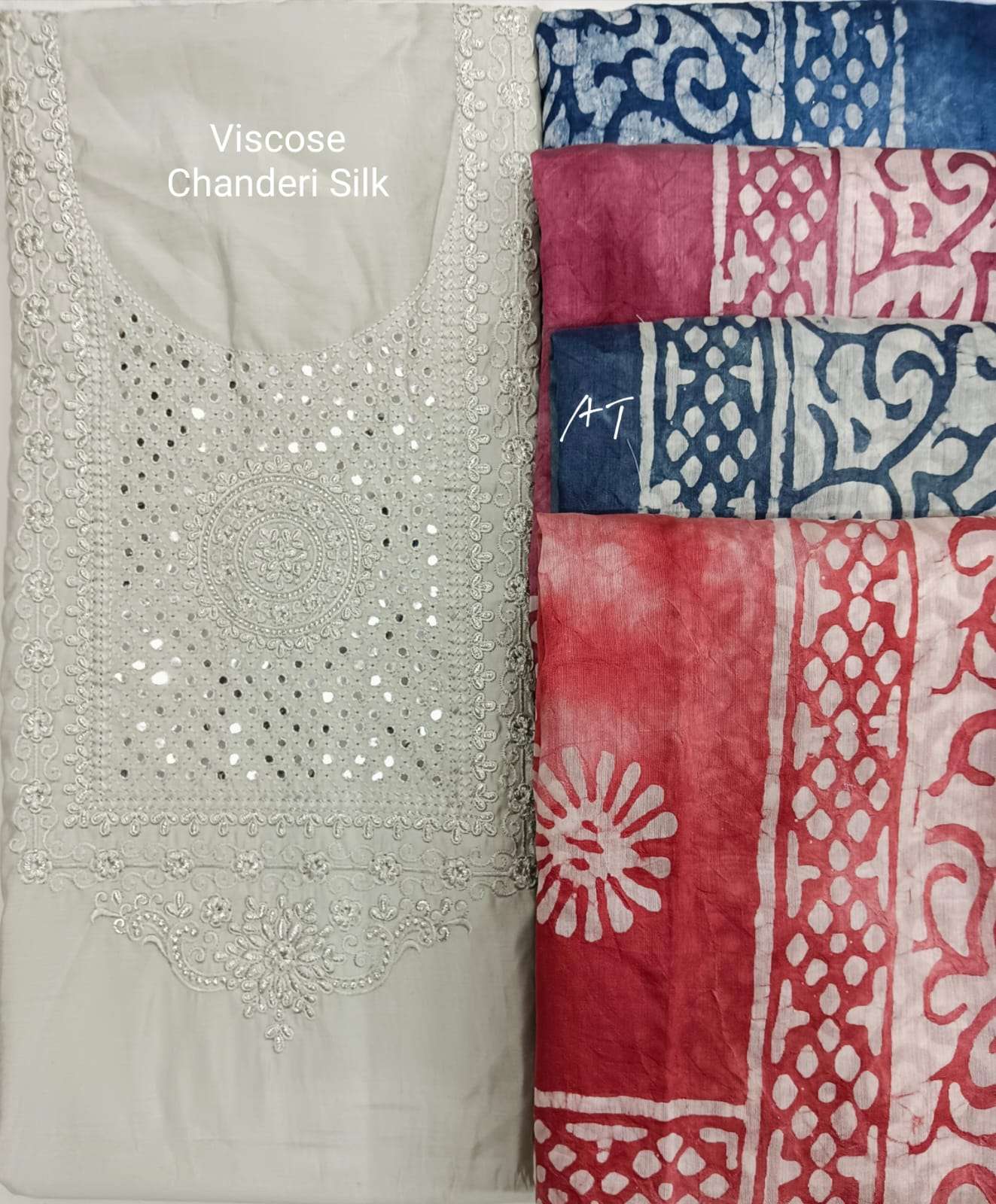 galaxy viscose chanderi silk unstitch ladies dress color matching sets