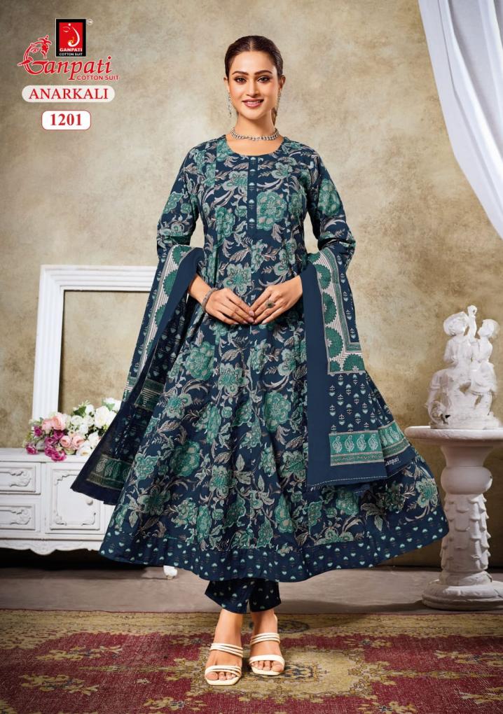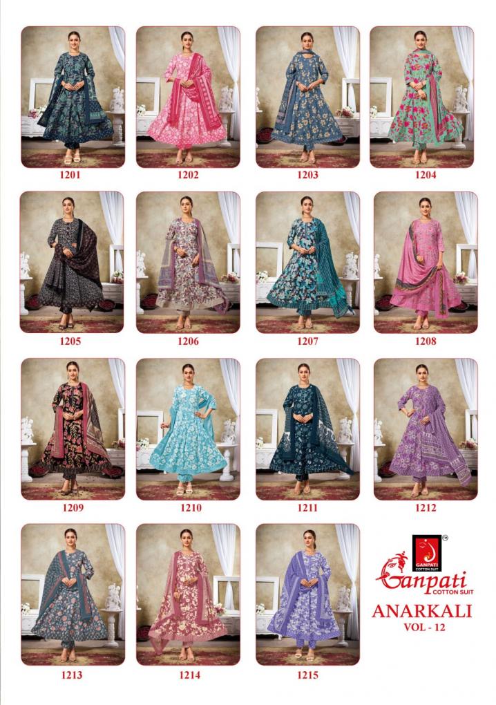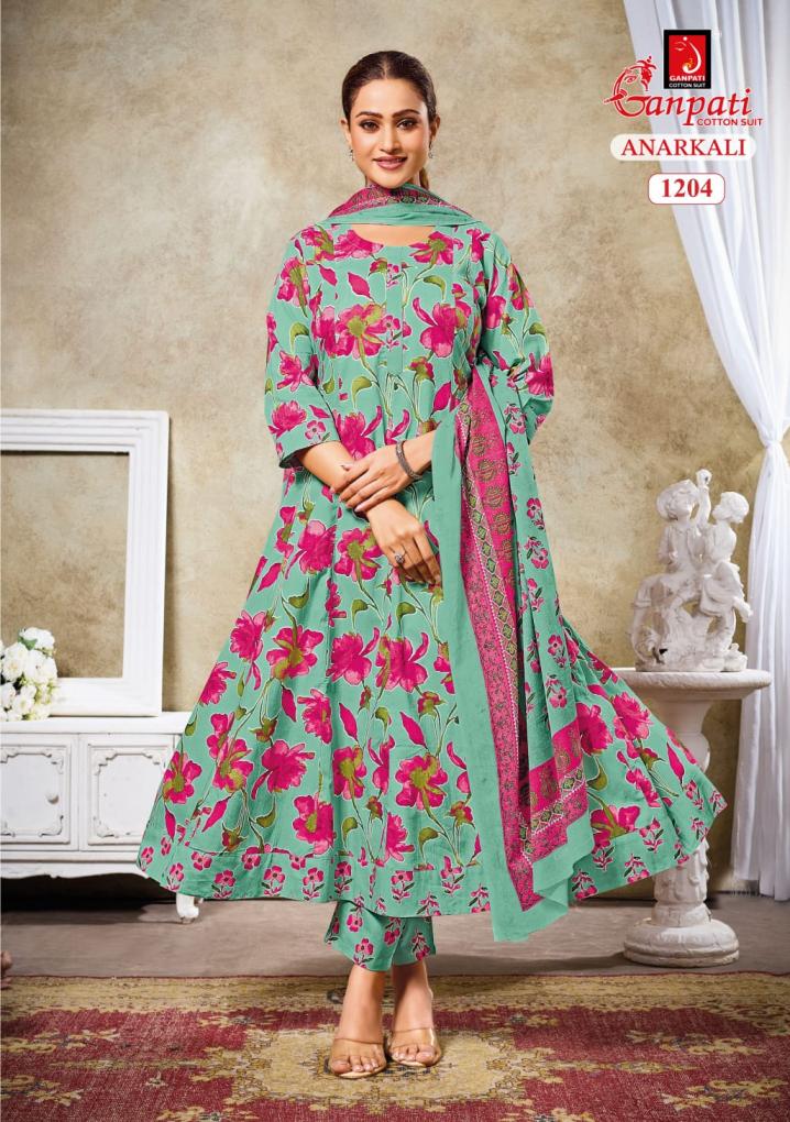 ganpati cotton anarkali vol 12 cotton pretty full stitch 3pcs dress