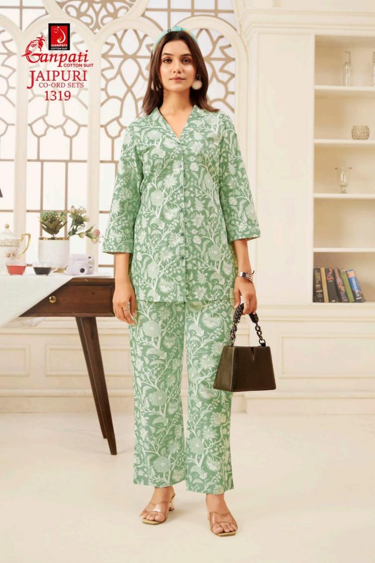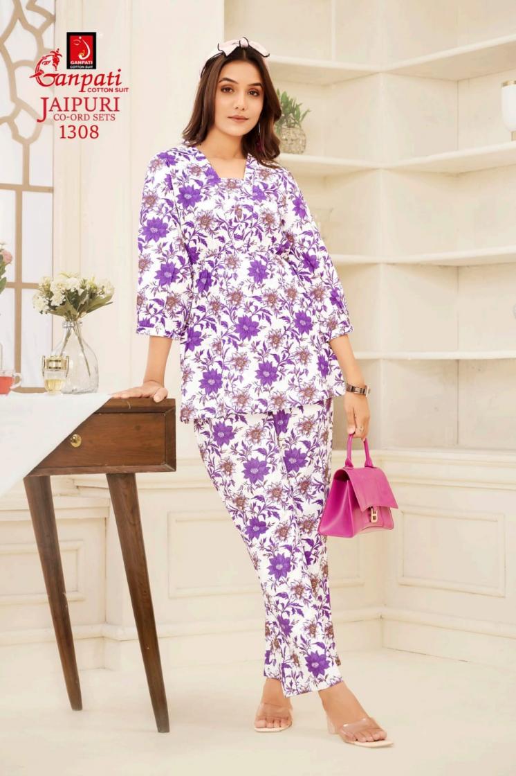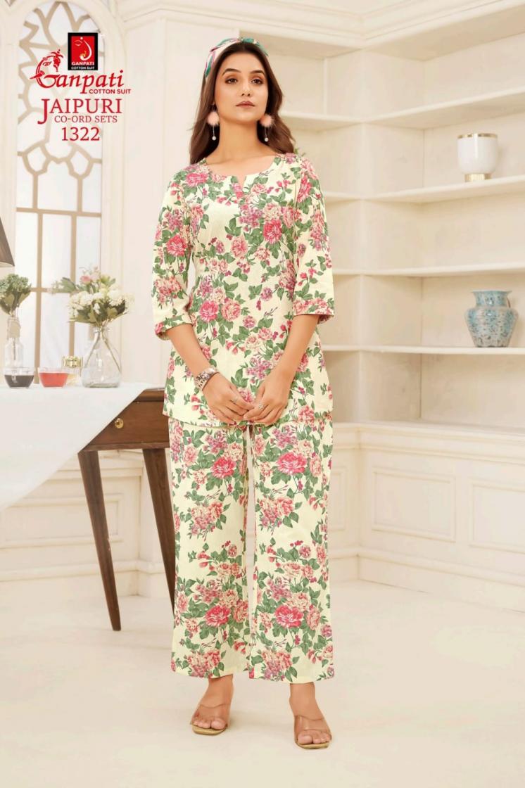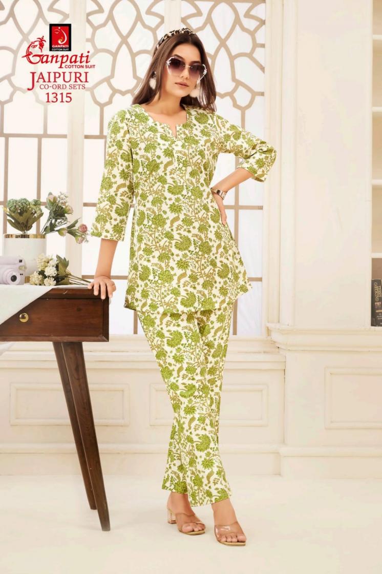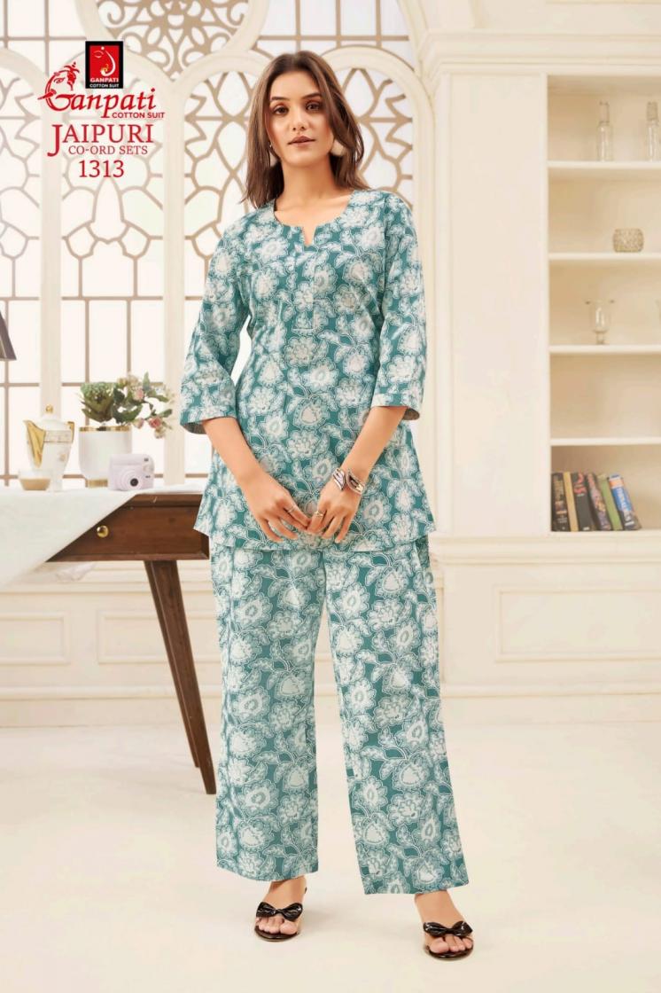 ganpati cotton jaipuri co-ord set vol 13 cotton stylish readymade kurti with pant