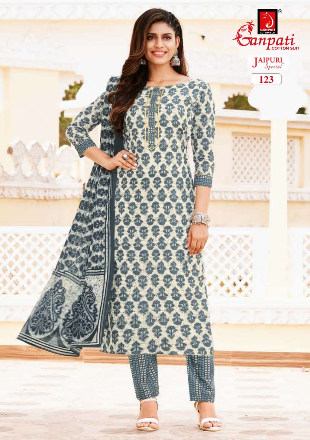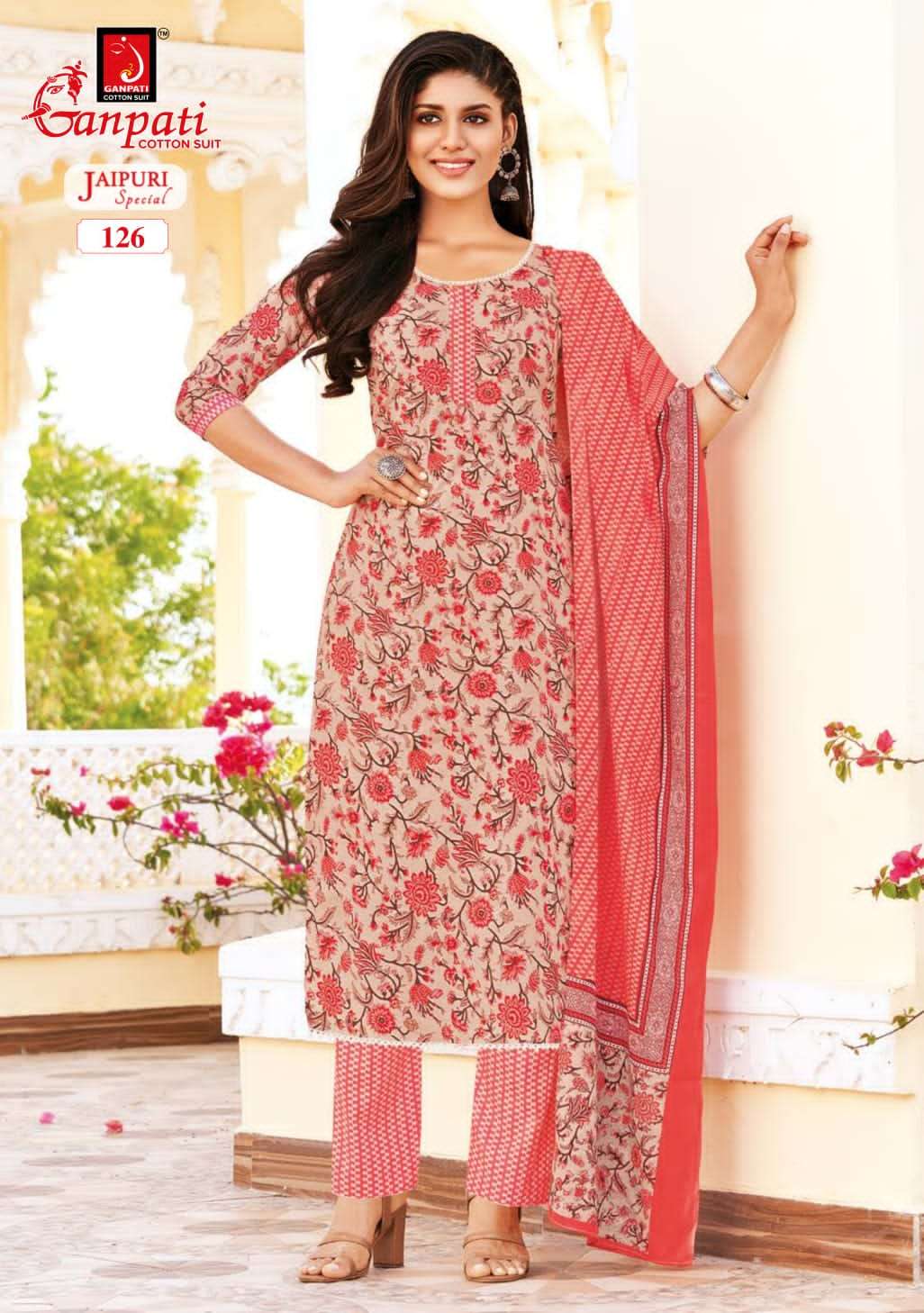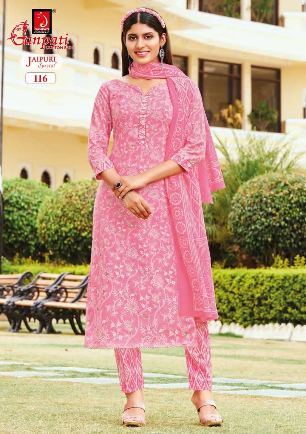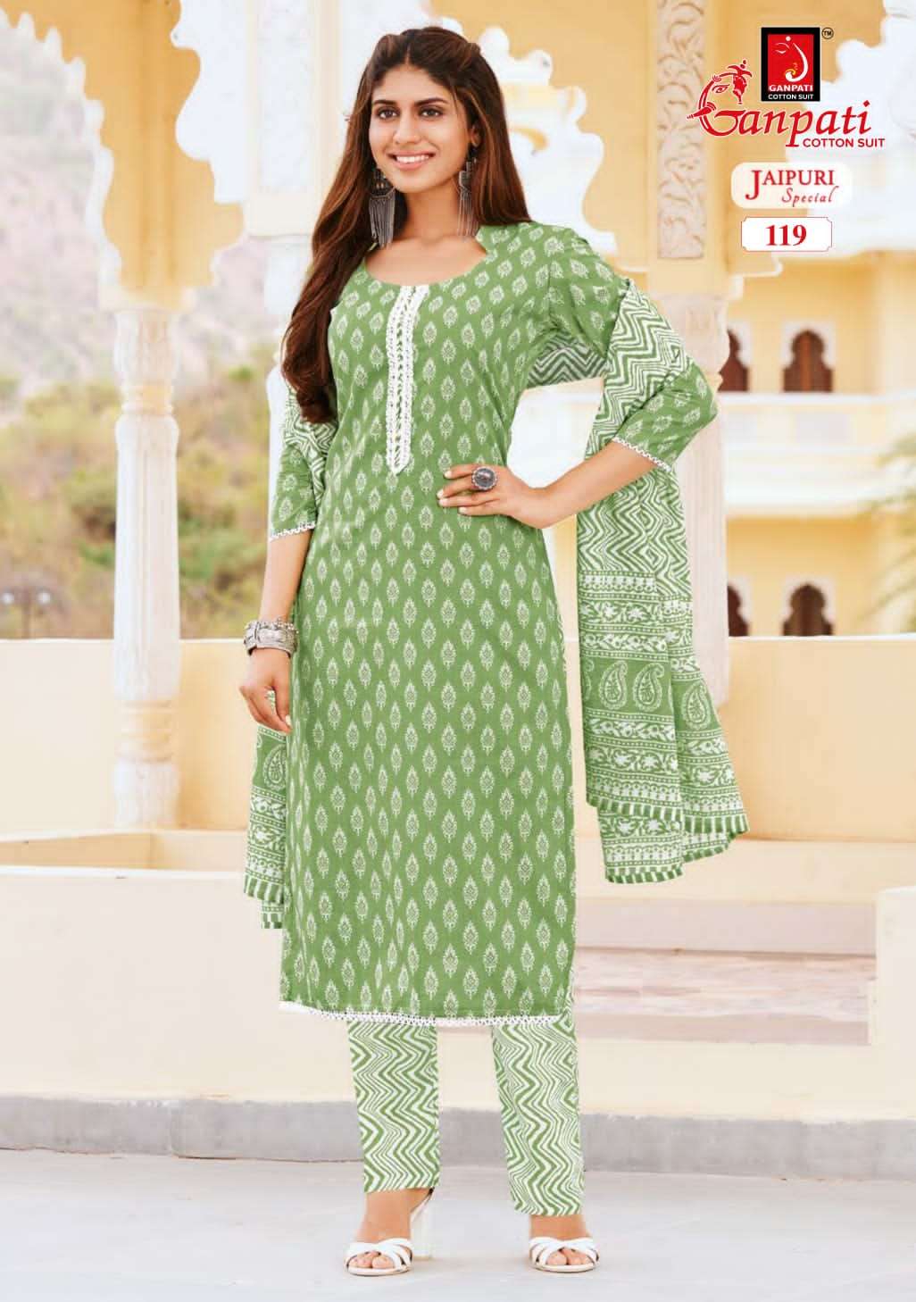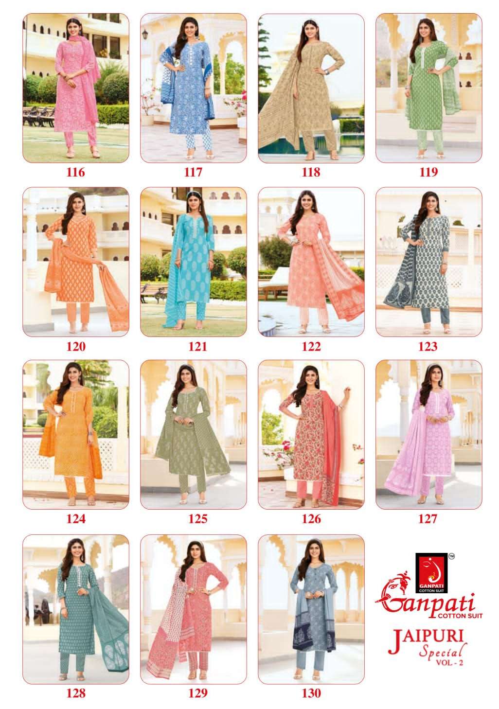 ganpati cotton jaipuri special vol 2 readymade churidar cotton suits