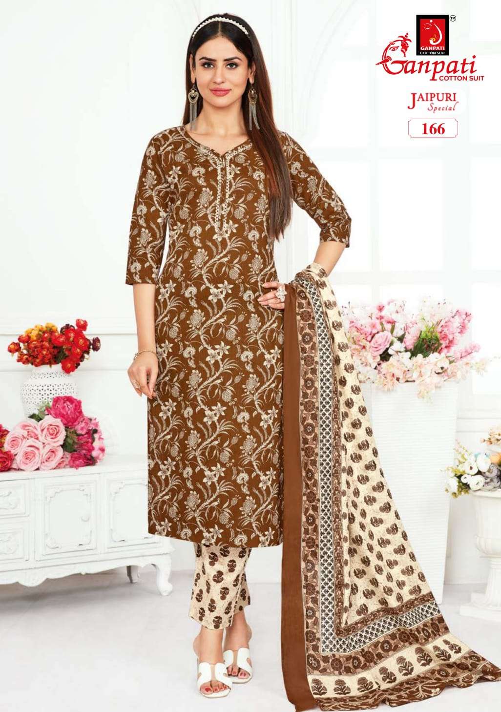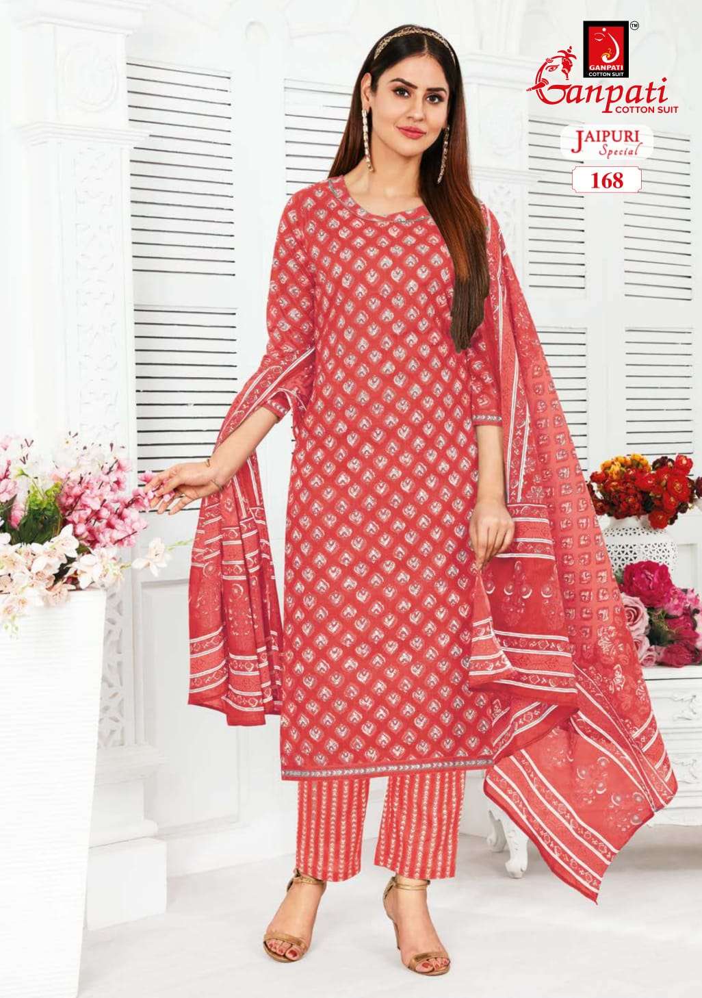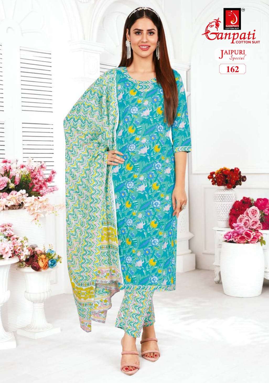 ganpati cotton jaipuri special vol 5 fancy 3pcs set readymade adorable cotton suits