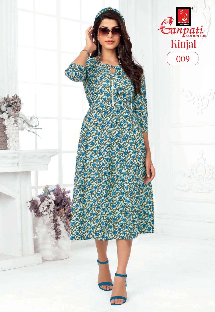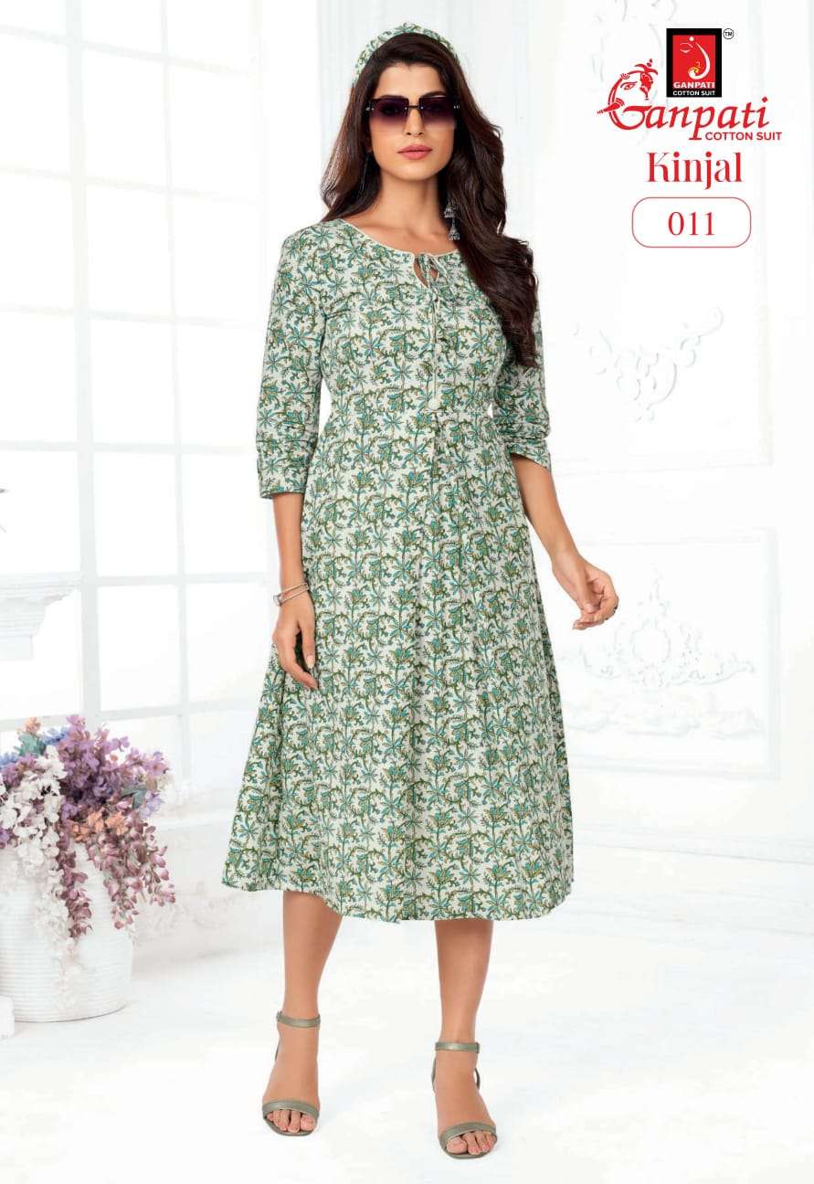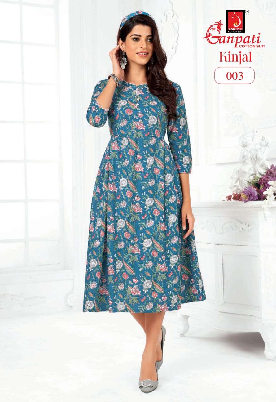 ganpati cotton kinjal frill style long cotton kurti design with price
