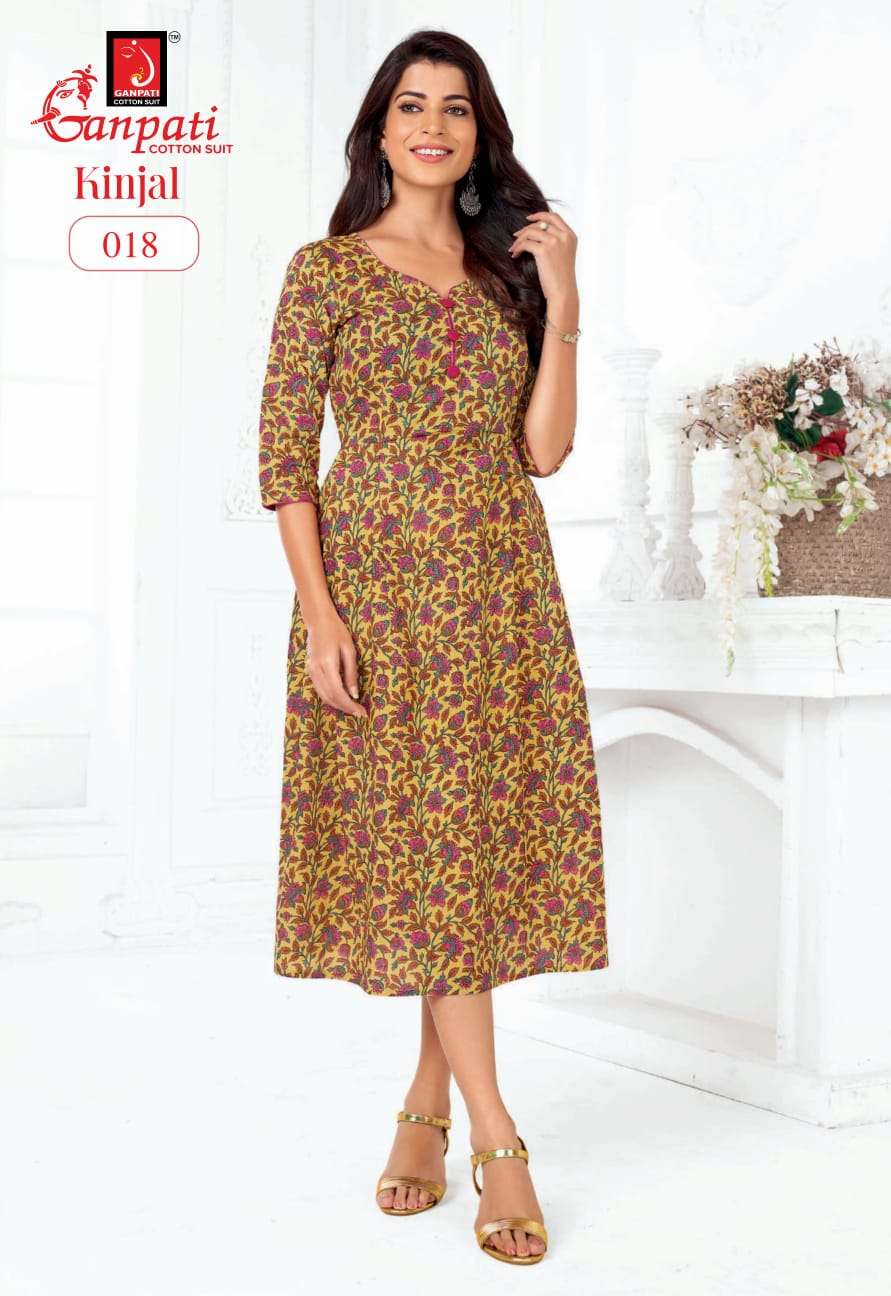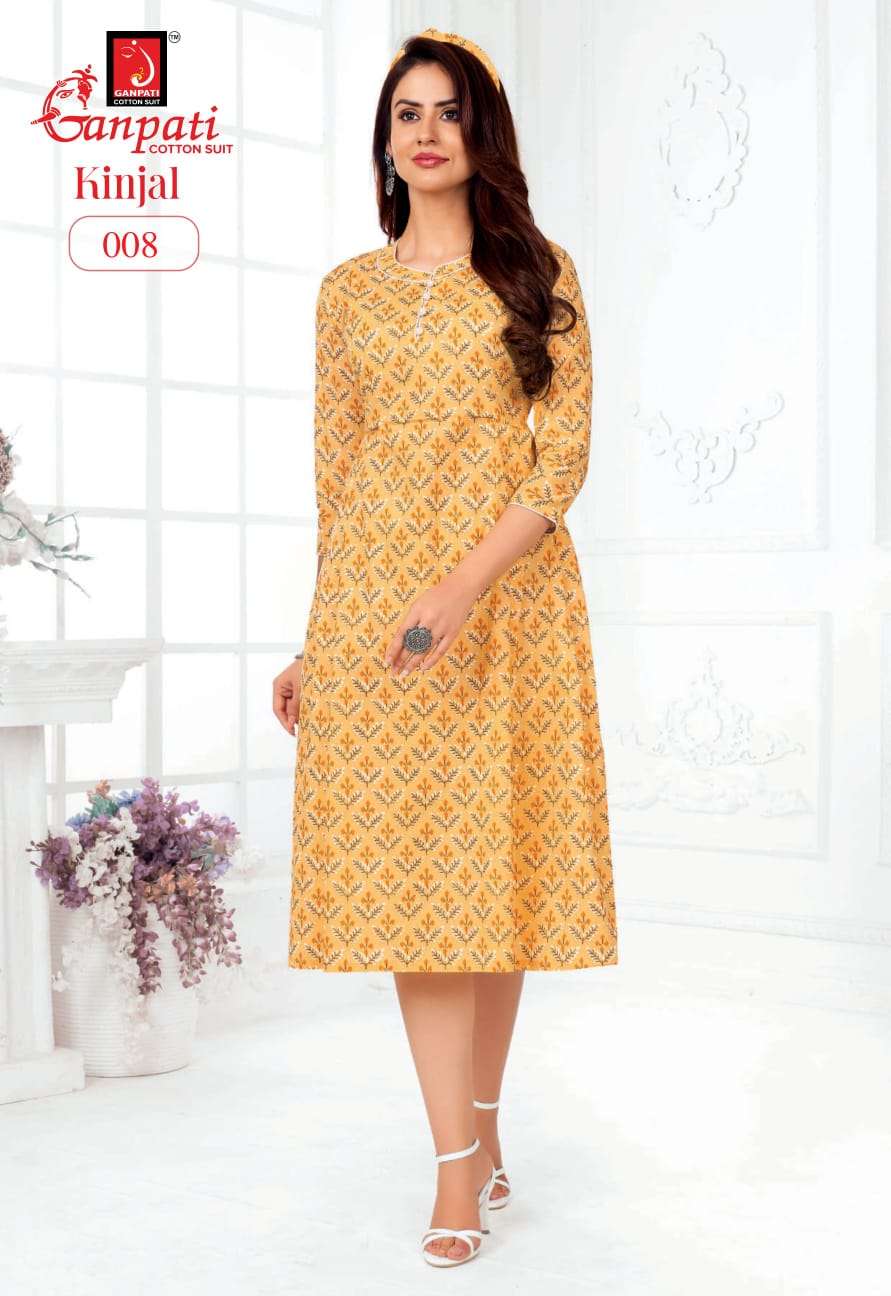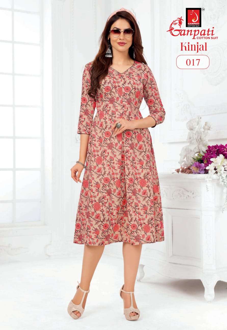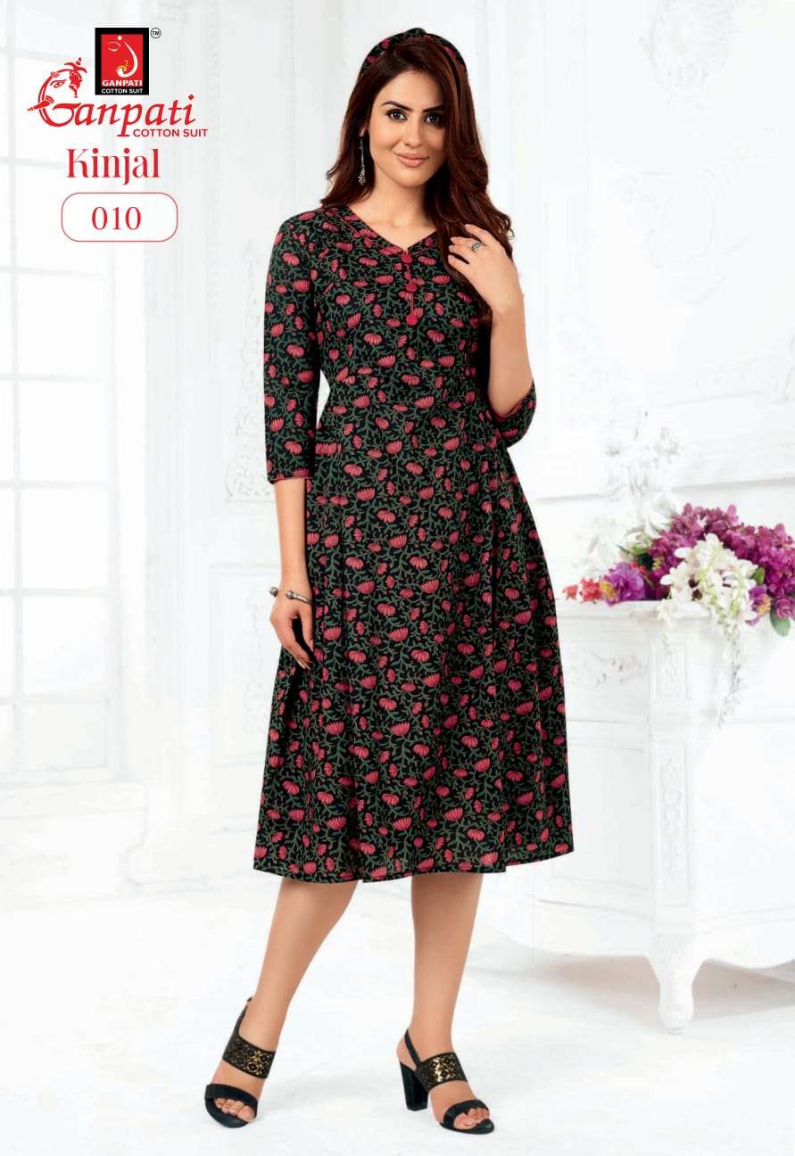 ganpati cotton kinjal frill style long cotton kurti design with price