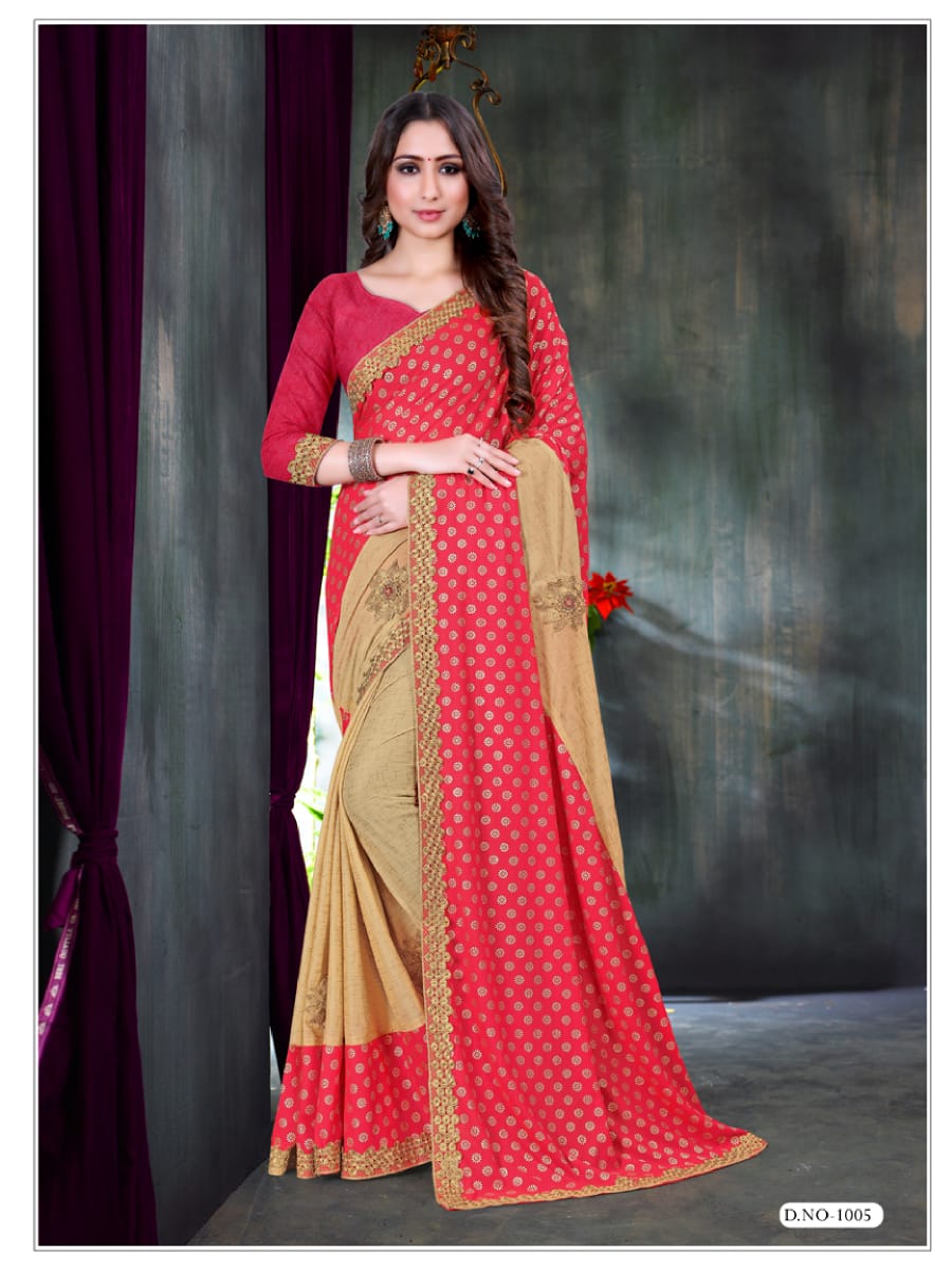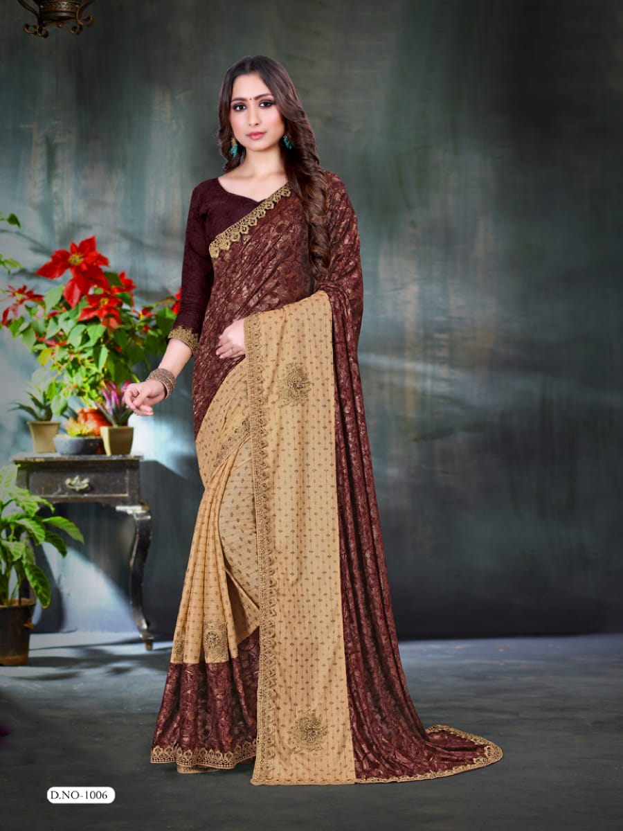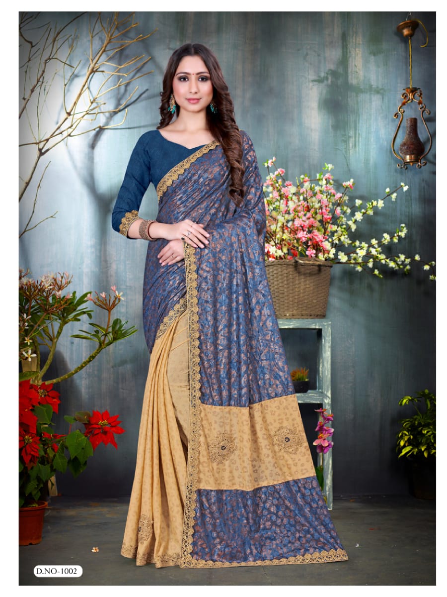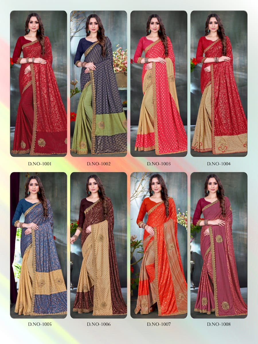 GARGI Brand:- MANSAROVER FASHION Rate:- 750/- _Fabric:- CROSIA CUT PATCH WORK WITH EXCLUSIVE CROSIA BODER Total Designs:- 08 _Packing pcs :- set to set Matching :- SINGLE COLOR Cut :- WITH BLOUSE Set to set . GST 5 Percent Extra. Delivery from today |