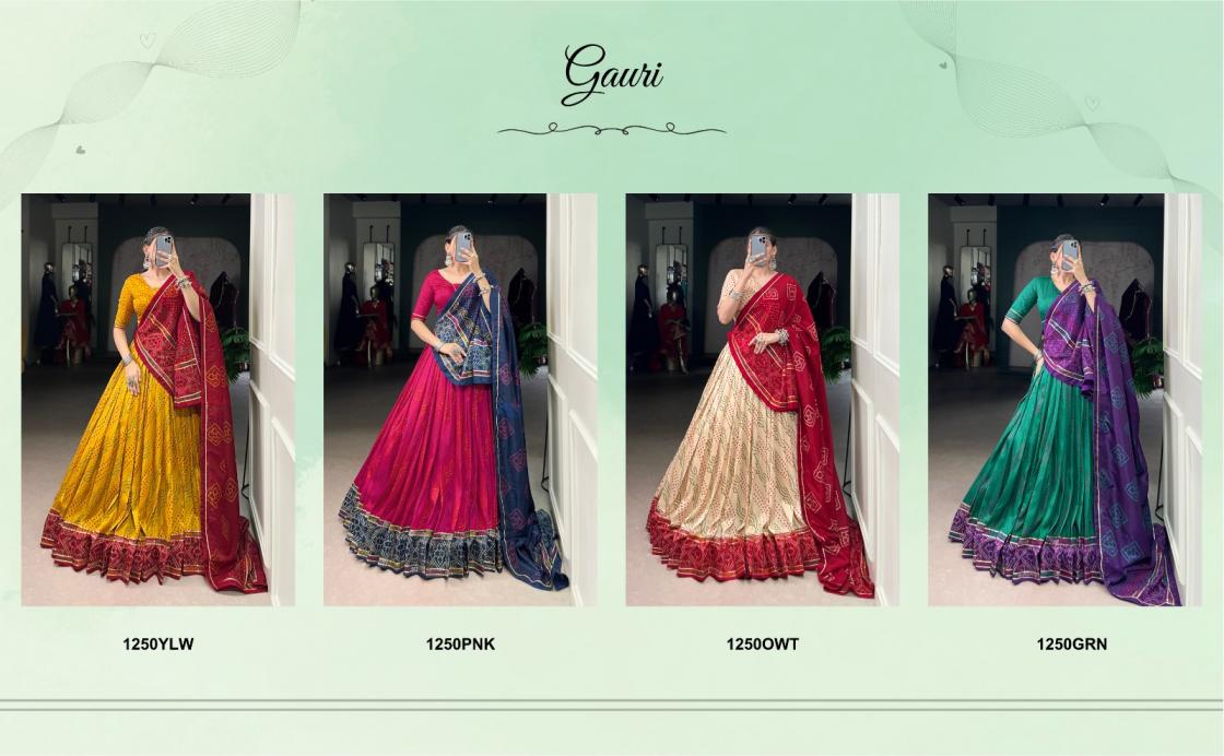 🌷Navratri Collection 2025🌷 A perfect fusion of bold Bandhani print and regal borders for that Navratri charm 🦚 Catalogue : GAURI (ગૌરી) LNB1250OWT Lehenga (Stitched) Blouse (Unstitched) Dupatta Package Contain : Lehenga, Blouse, Dupatta, Drawstring with Zip Weight : 1 kg Rate : 1300/- |