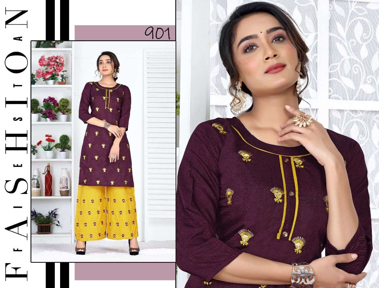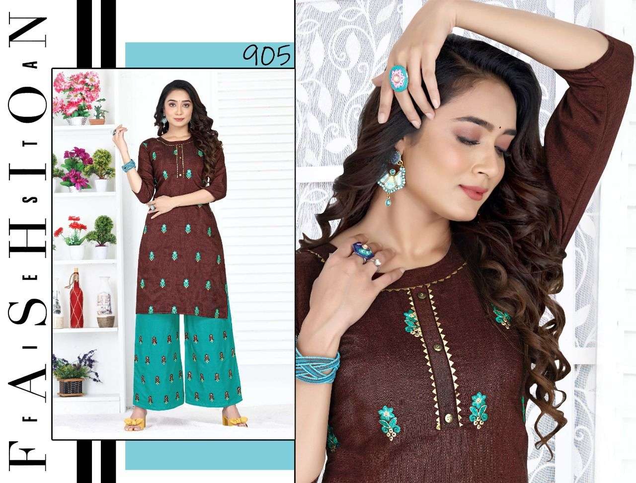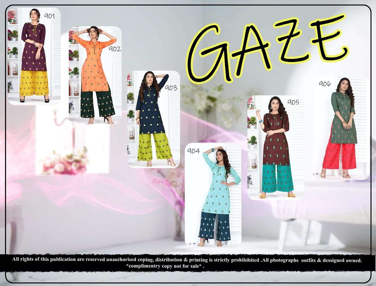 Gaze HEAVY RAYON Embroidered in both top and palazzo KURTI CATALOG WHOLESALER BEST RATE