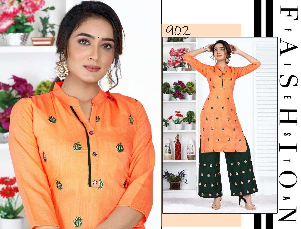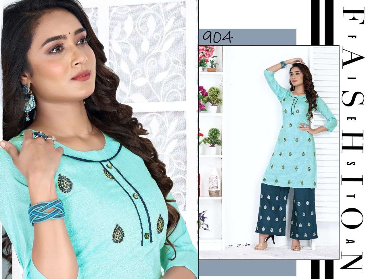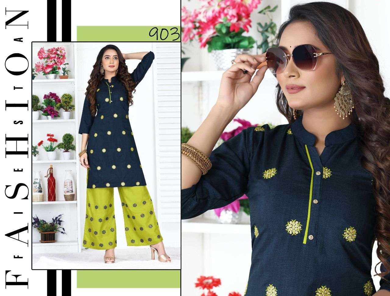 Gaze HEAVY RAYON Embroidered in both top and palazzo KURTI CATALOG WHOLESALER BEST RATE