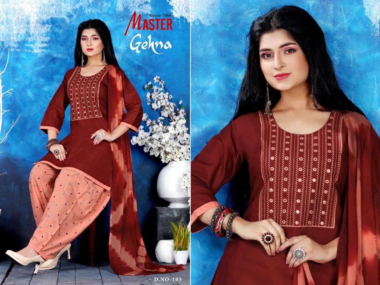 GEHNA PATIYALA BY MASTER HEAVY COTTON TO COTTON NAZMIN DUPATTA READYMADE SUIT CATALOG WHOLESALER BEST RATE