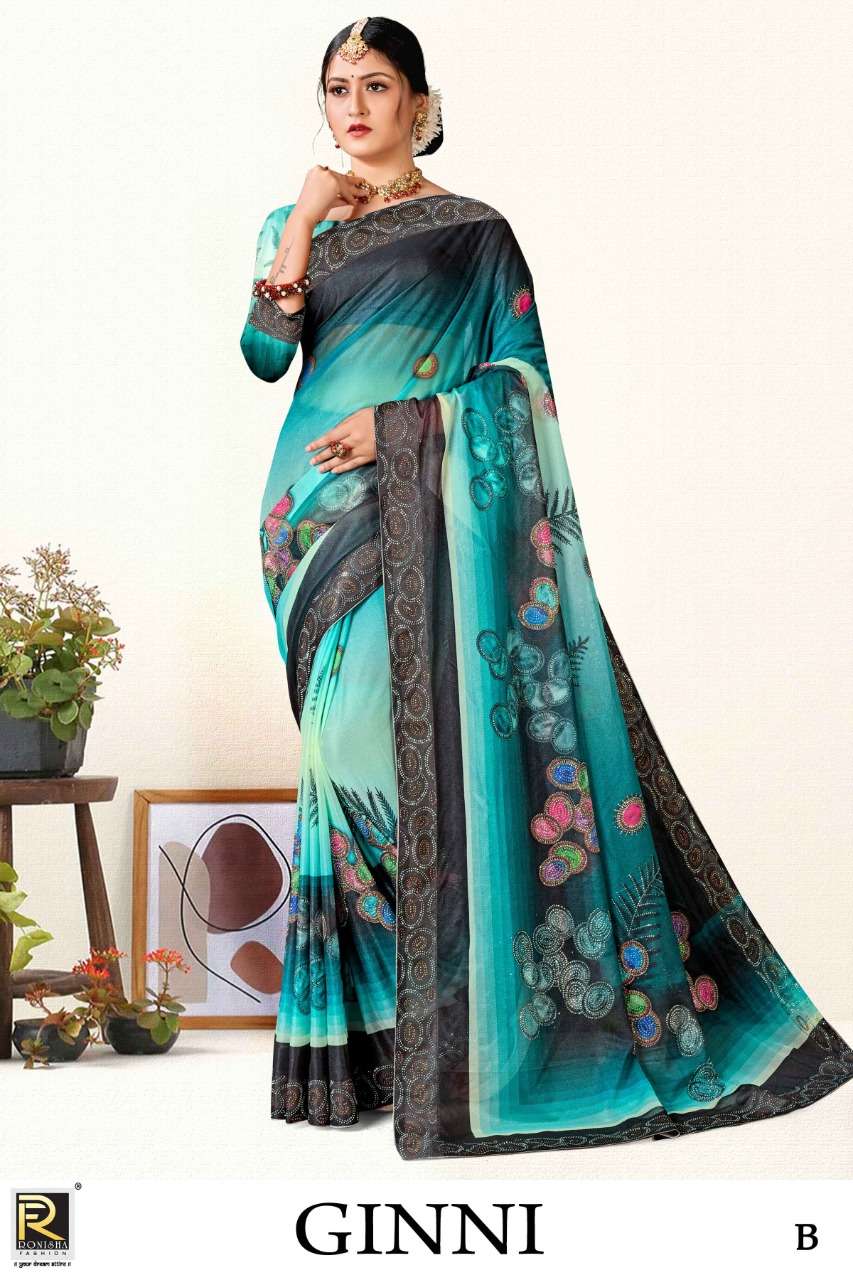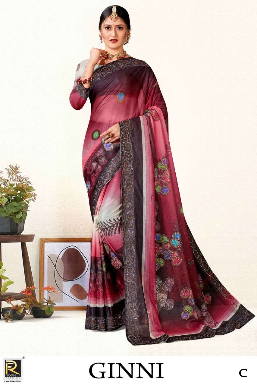 Ginni by ranjna saree siroski diamond digital prints designer saree beautiful collection