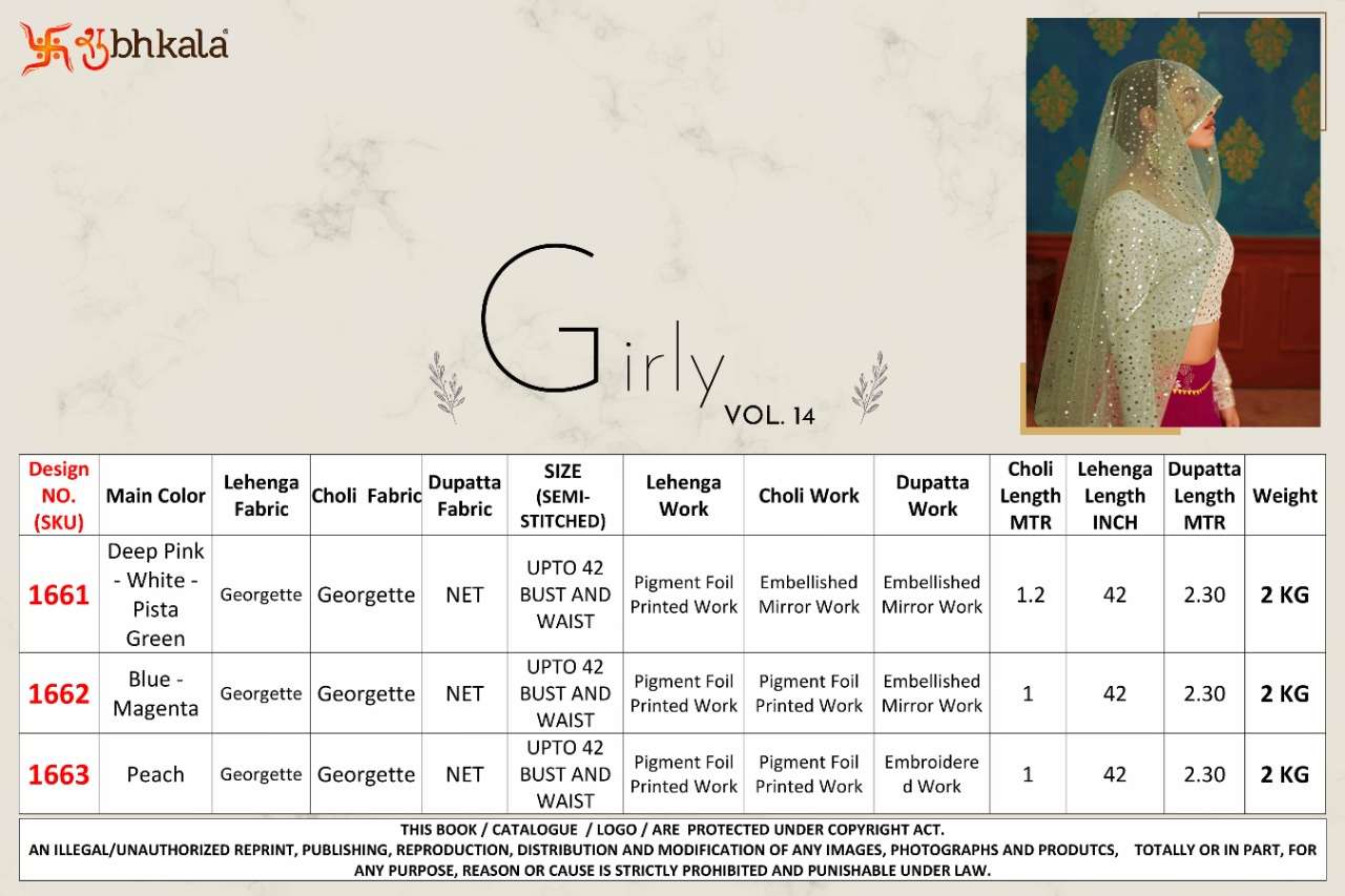 GIRLY VOL. 14 DESIGNER EXCLUSIVE GIRLY LOOK LEHENGA CHOLI COLLECTION RATE LIST 1661 - 2500/- CAN-CAN AVAILABLE. Real Pic Available. |