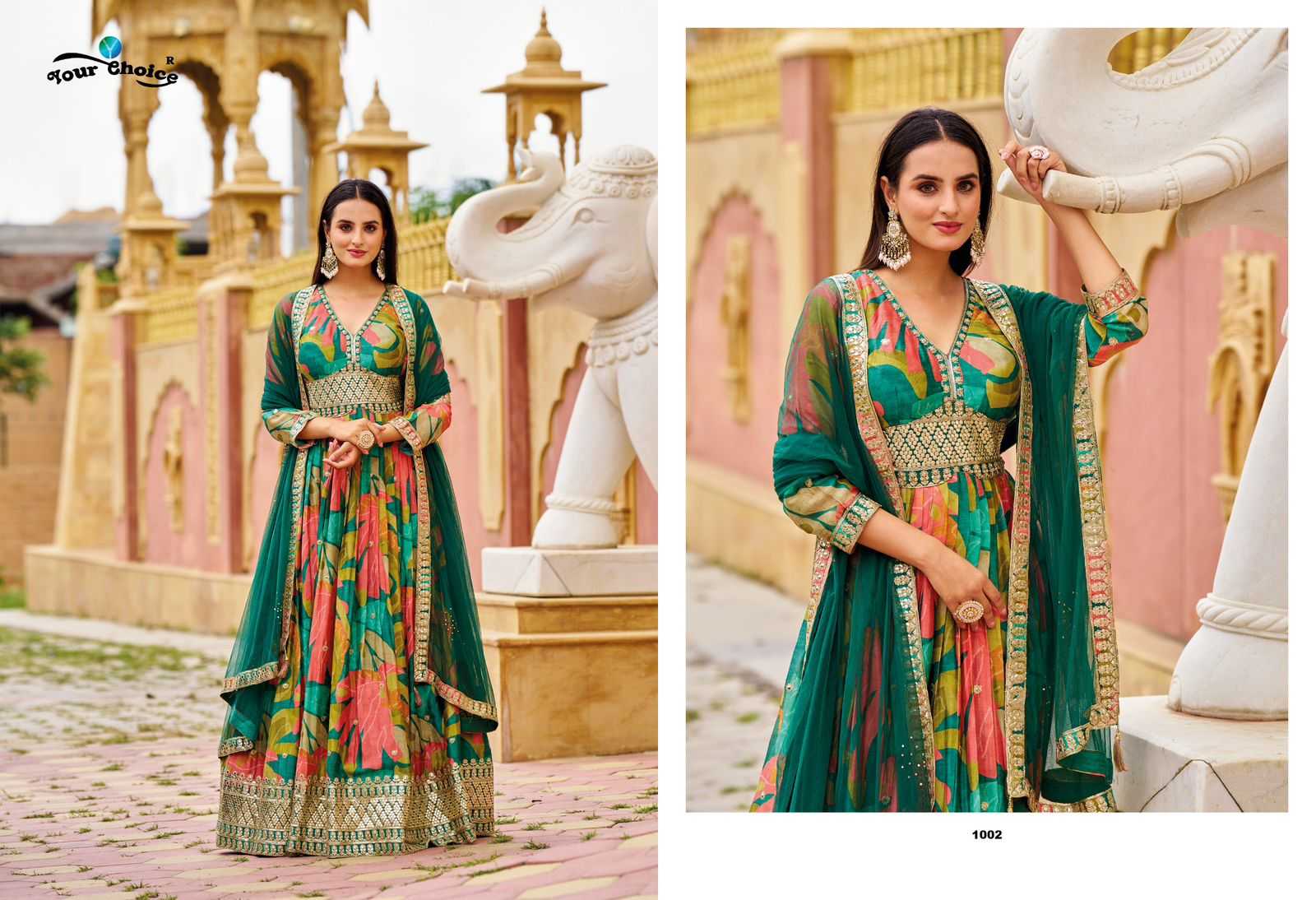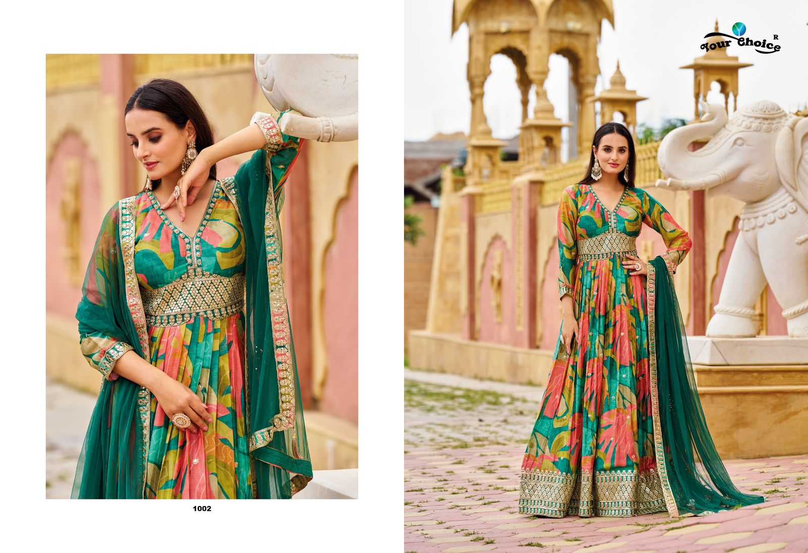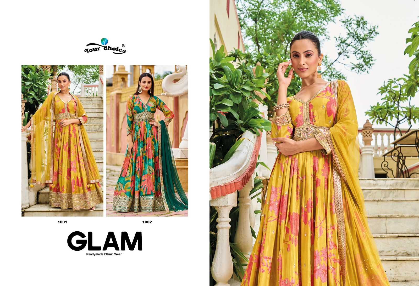 glam by your choice chinon elegant style fully stitch aliya cut gown set