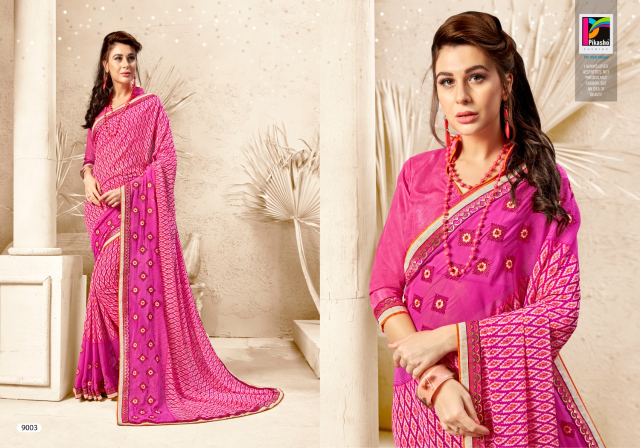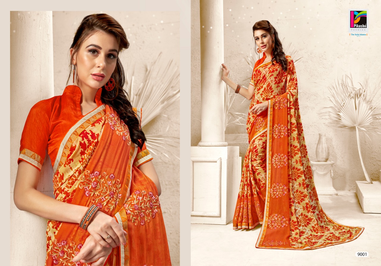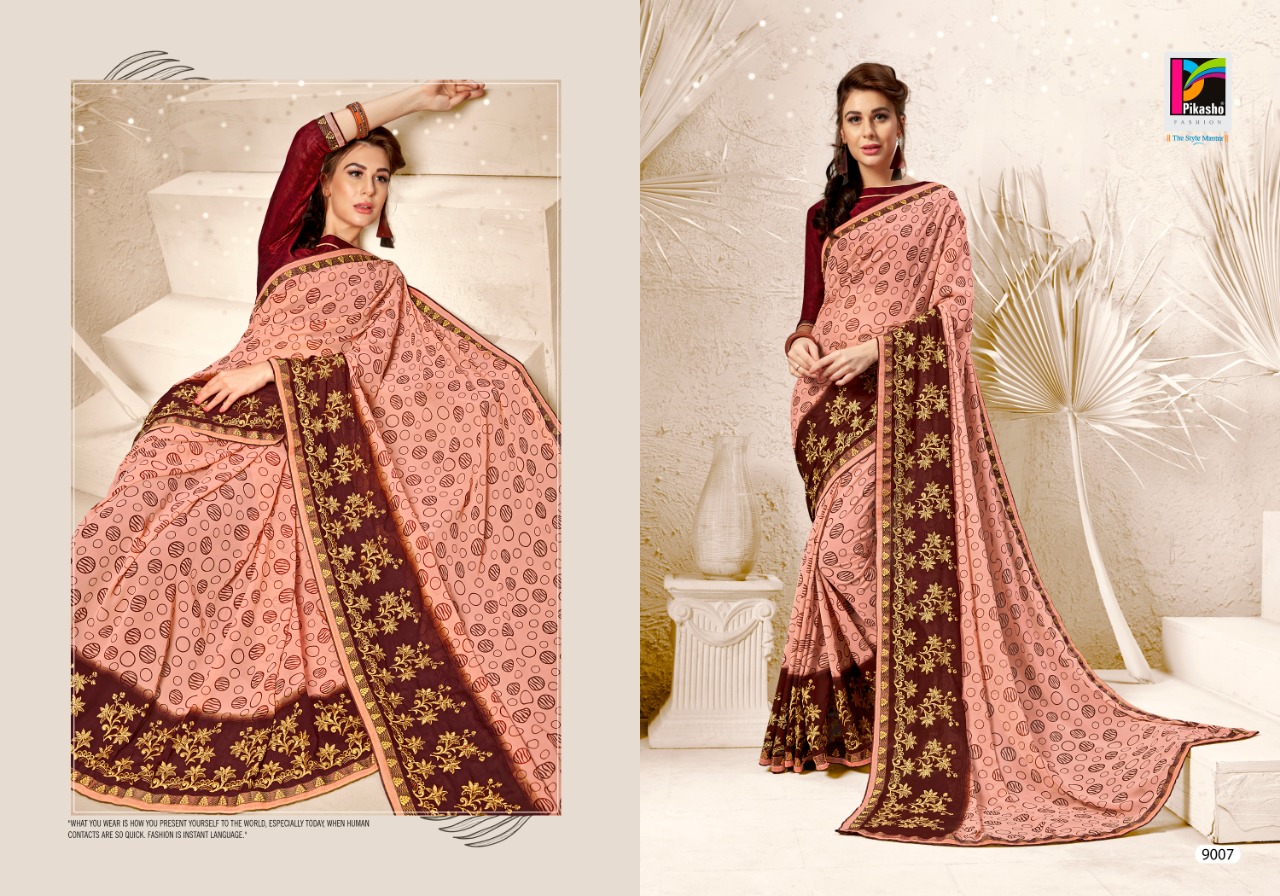 Glamour By Pikasho Weightless Print With Embroidery Work Saree Seller