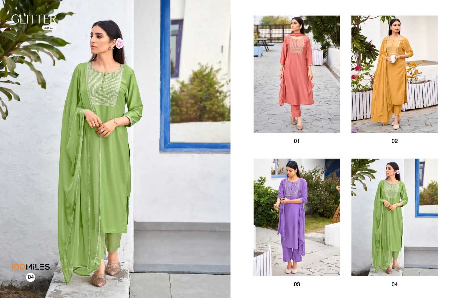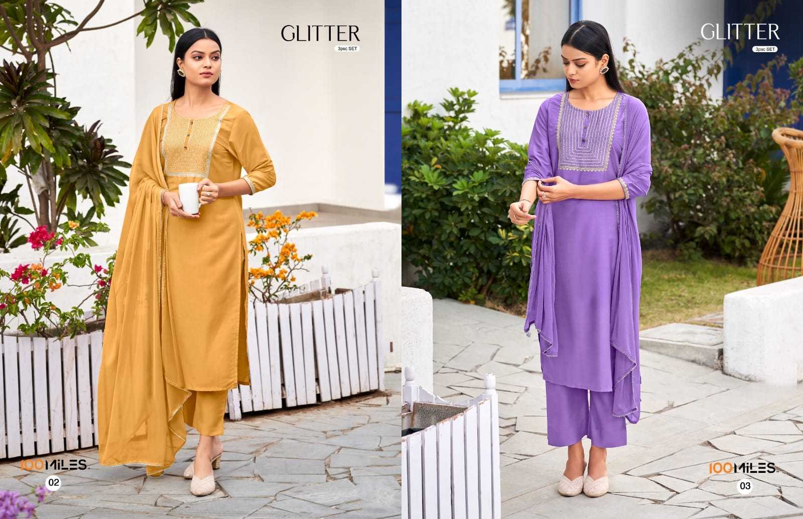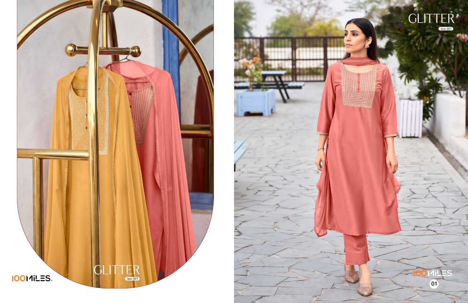 glitter by 100miles fully stitch amazing work kurti pant with dupatta